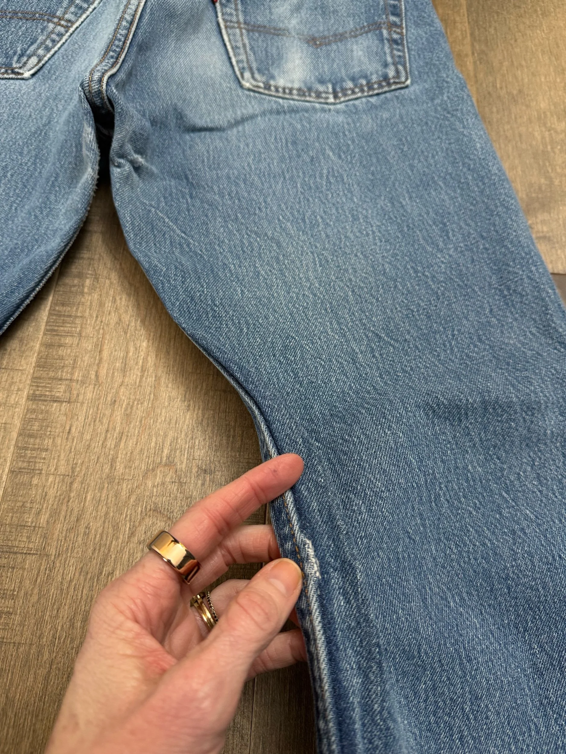 Sold as is. Keep in mind, vintage jeans are not new jeans. Every pair is at least 20 years old, most are older. This means they’ve been worn and likely have signs of wear - i.e. thinning areas, loose threads, signs of previous repair work, discolorations, faint (or not so faint stains), organic distressing, wear at the rivets, wear at the button holes. I do my best to describe these areas/signs of wear&tear, so please - before you buy - understand that you may receive your jeans and there will be signs of aging. Most buy vintage jeans wanting this, but if you want pristine new looking jeans, vintage likely isn’t for you. And that’s A-OK! Also note, the word “vintage” is not synonymous with super worn & faded. Vintage means over 20 years old. An item can be both vintage and still be new or like new condition.