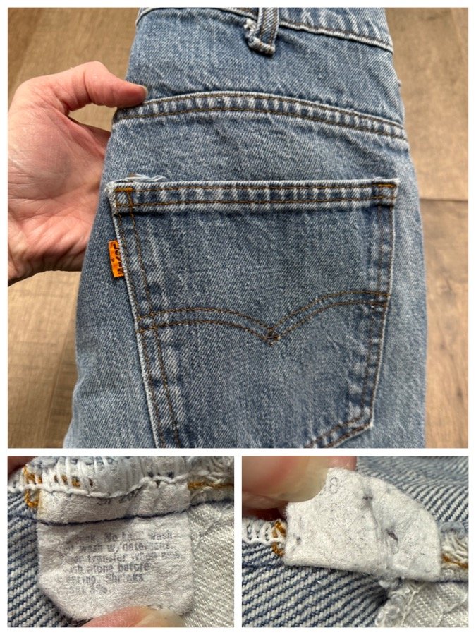 Keep in mind, vintage jeans are not new jeans. Every pair is at least 20 years old, most are older. This means they’ve been worn and likely have signs of wear - i.e. thinning areas, loose threads, signs of previous repair work, discolorations, faint (or not so faint stains), organic distressing, wear at the rivets, wear at the button holes. I do my best to describe these areas/signs of wear&tear, so please - before you buy - understand that you may receive your jeans and there will be signs of aging. Most buy vintage jeans wanting this, but if you want pristine new looking jeans, vintage likely isn’t for you. And that’s A-OK! Also note, the word “vintage” is not synonymous with super worn & faded. Vintage means over 20 years old. An item can be both vintage and still be new or like new condition.
