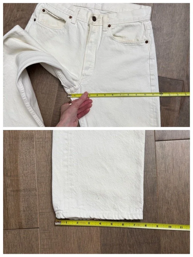 Sold as is. Keep in mind, vintage jeans are not new jeans. Every pair is at least 20 years old, most are older. This means they’ve been worn and likely have signs of wear - i.e. thinning areas, loose threads, signs of previous repair work, discolorations, faint (or not so faint stains), organic distressing, wear at the rivets, wear at the button holes. I do my best to describe these areas/signs of wear&tear, so please - before you buy - understand that you may receive your jeans and there will be signs of aging. Most buy vintage jeans wanting this, but if you want pristine new looking jeans, vintage likely isn’t for you. And that’s A-OK! Also note, the word “vintage” is not synonymous with super worn & faded. Vintage means over 20 years old. An item can be both vintage and still be new or like new condition.