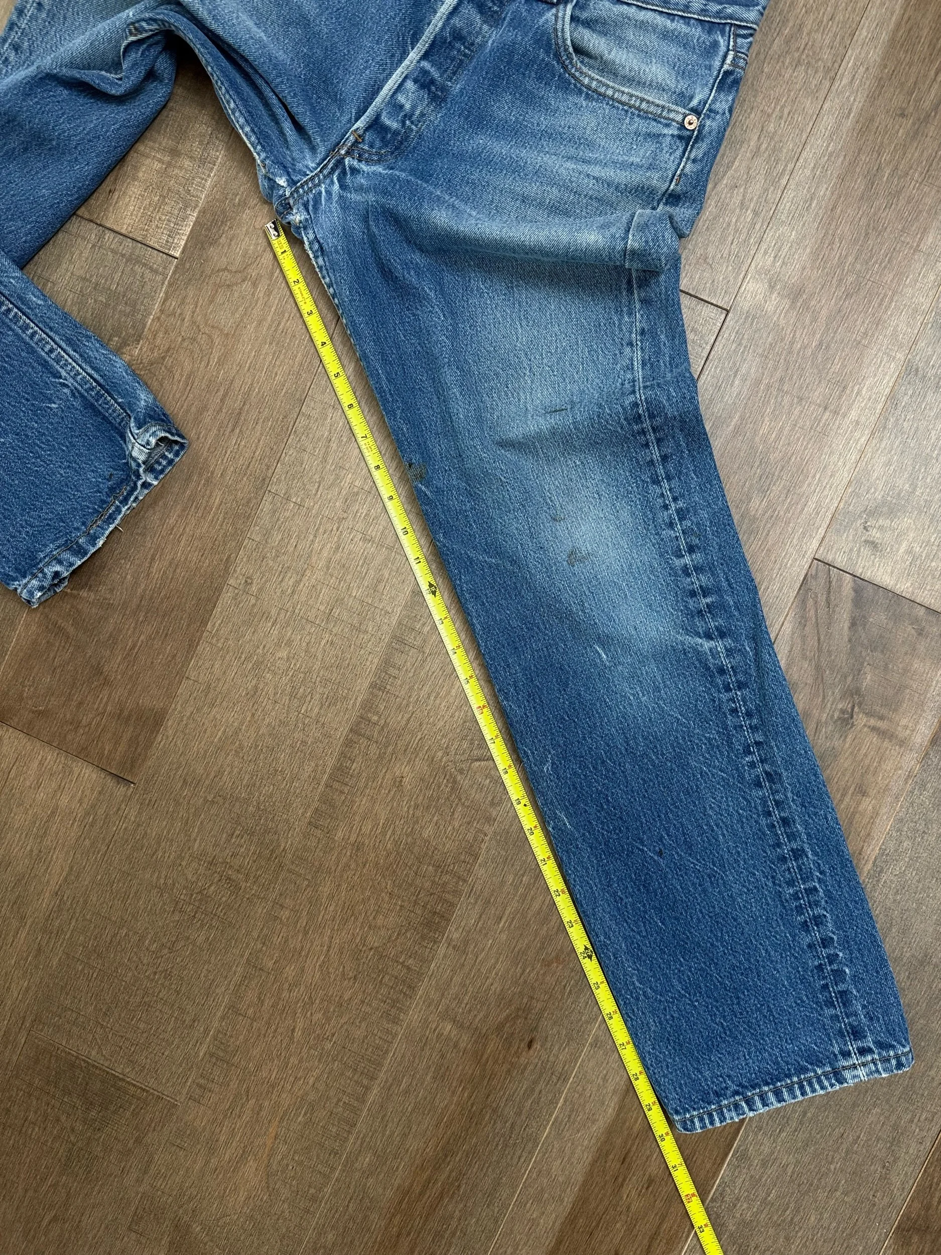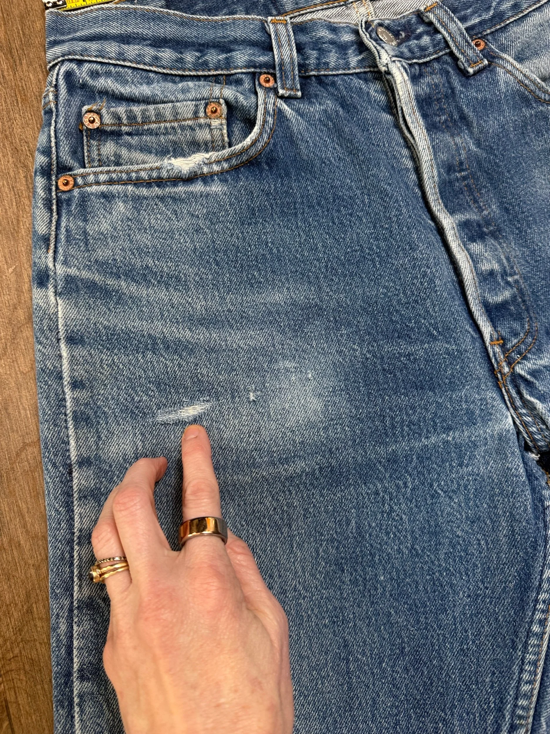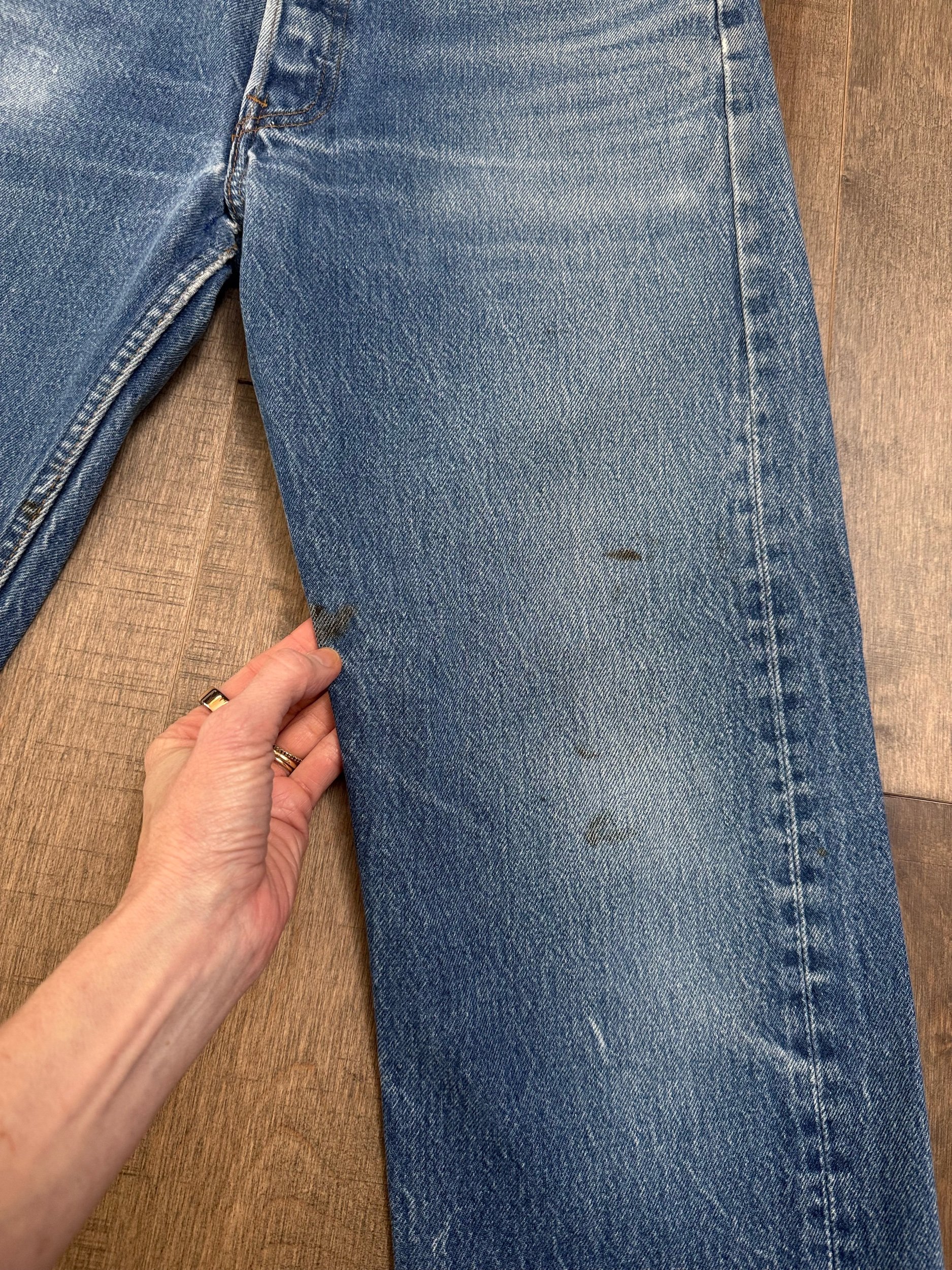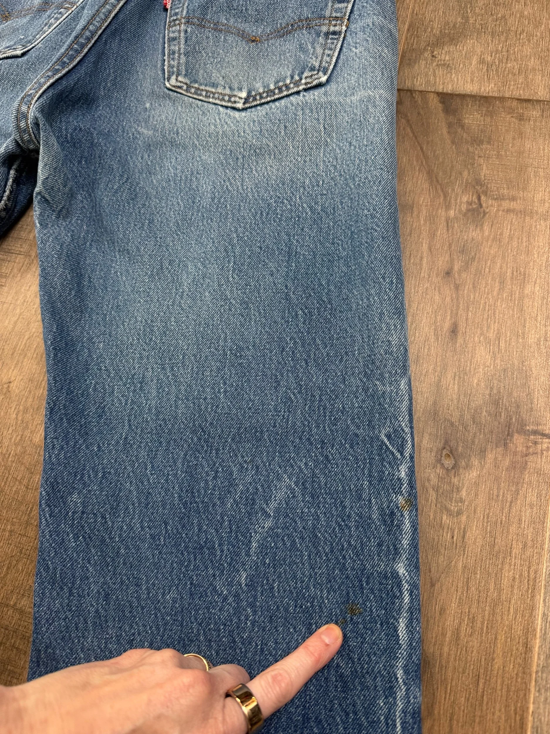 Sold as is. Keep in mind, vintage jeans are not new jeans. Every pair is at least 20 years old, most are older. This means they’ve been worn and likely have signs of wear - i.e. thinning areas, loose threads, signs of previous repair work, discolorations, faint (or not so faint stains), organic distressing, wear at the rivets, wear at the button holes. I do my best to describe these areas/signs of wear&tear, so please - before you buy - understand that you may receive your jeans and there will be signs of aging. Most buy vintage jeans wanting this, but if you want pristine new looking jeans, vintage likely isn’t for you. And that’s A-OK! Also note, the word “vintage” is not synonymous with super worn & faded. Vintage means over 20 years old. An item can be both vintage and still be new or like new condition.