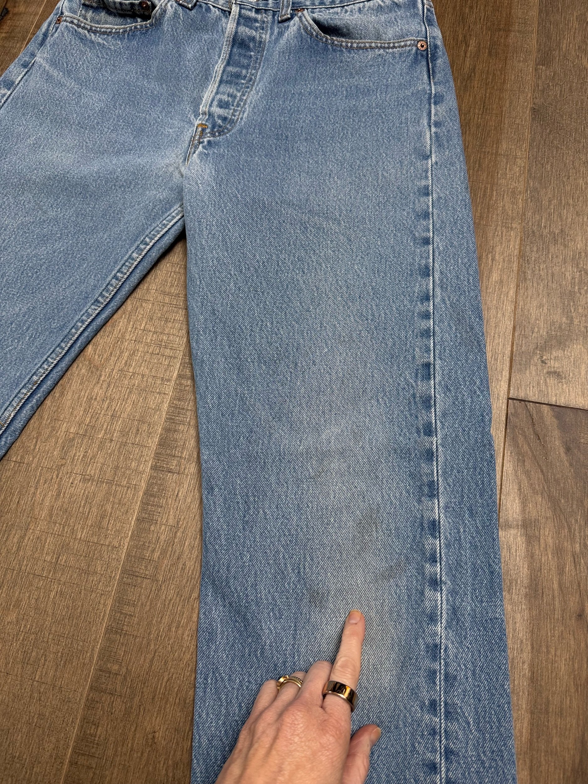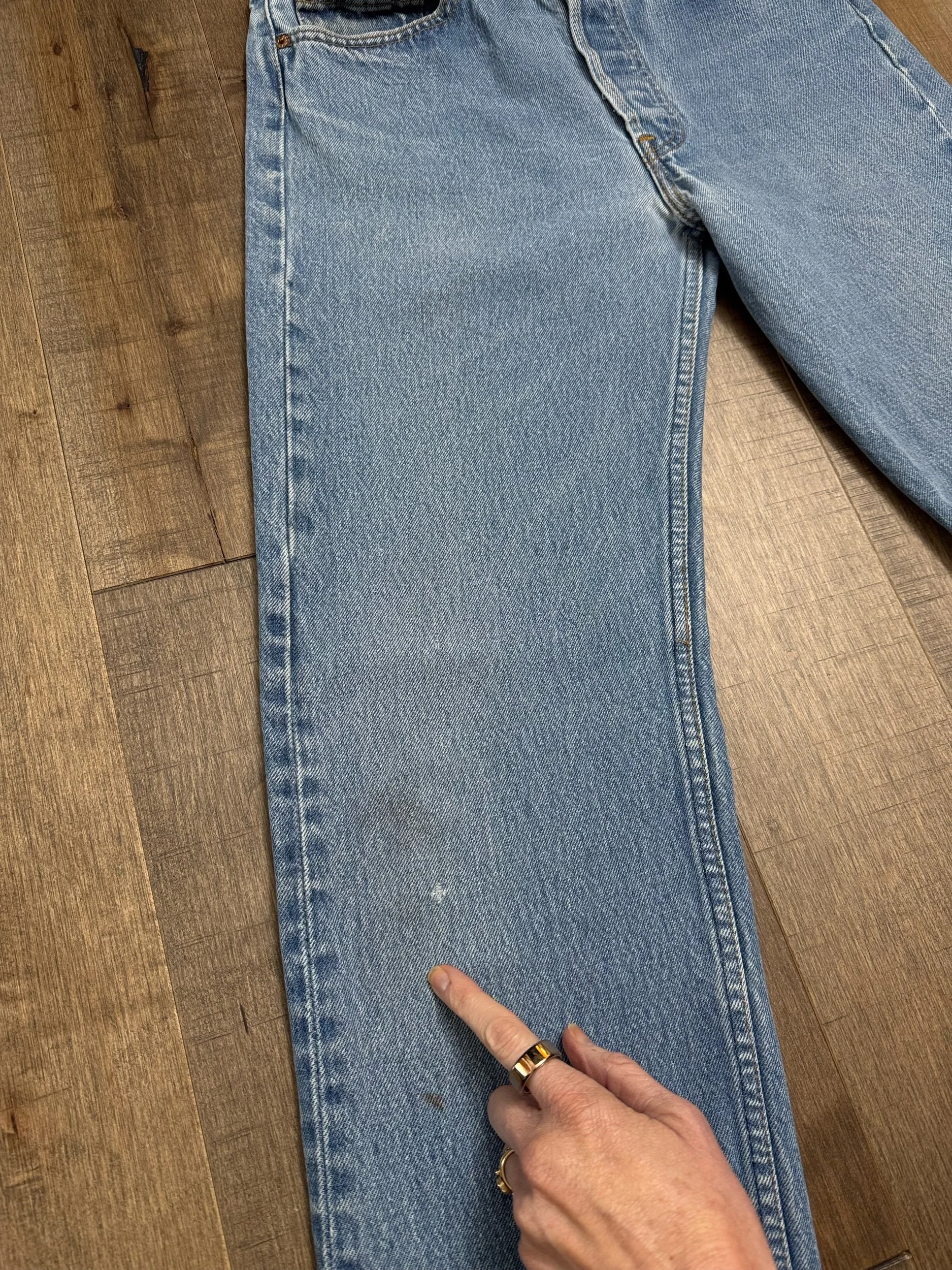 Sold as is. Keep in mind, vintage jeans are not new jeans. Every pair is at least 20 years old, most are older. This means they’ve been worn and likely have signs of wear - i.e. thinning areas, loose threads, signs of previous repair work, discolorations, faint (or not so faint stains), organic distressing, wear at the rivets, wear at the button holes. I do my best to describe these areas/signs of wear&tear, so please - before you buy - understand that you may receive your jeans and there will be signs of aging. Most buy vintage jeans wanting this, but if you want pristine new looking jeans, vintage likely isn’t for you. And that’s A-OK! Also note, the word “vintage” is not synonymous with super worn & faded. Vintage means over 20 years old. An item can be both vintage and still be new or like new condition.