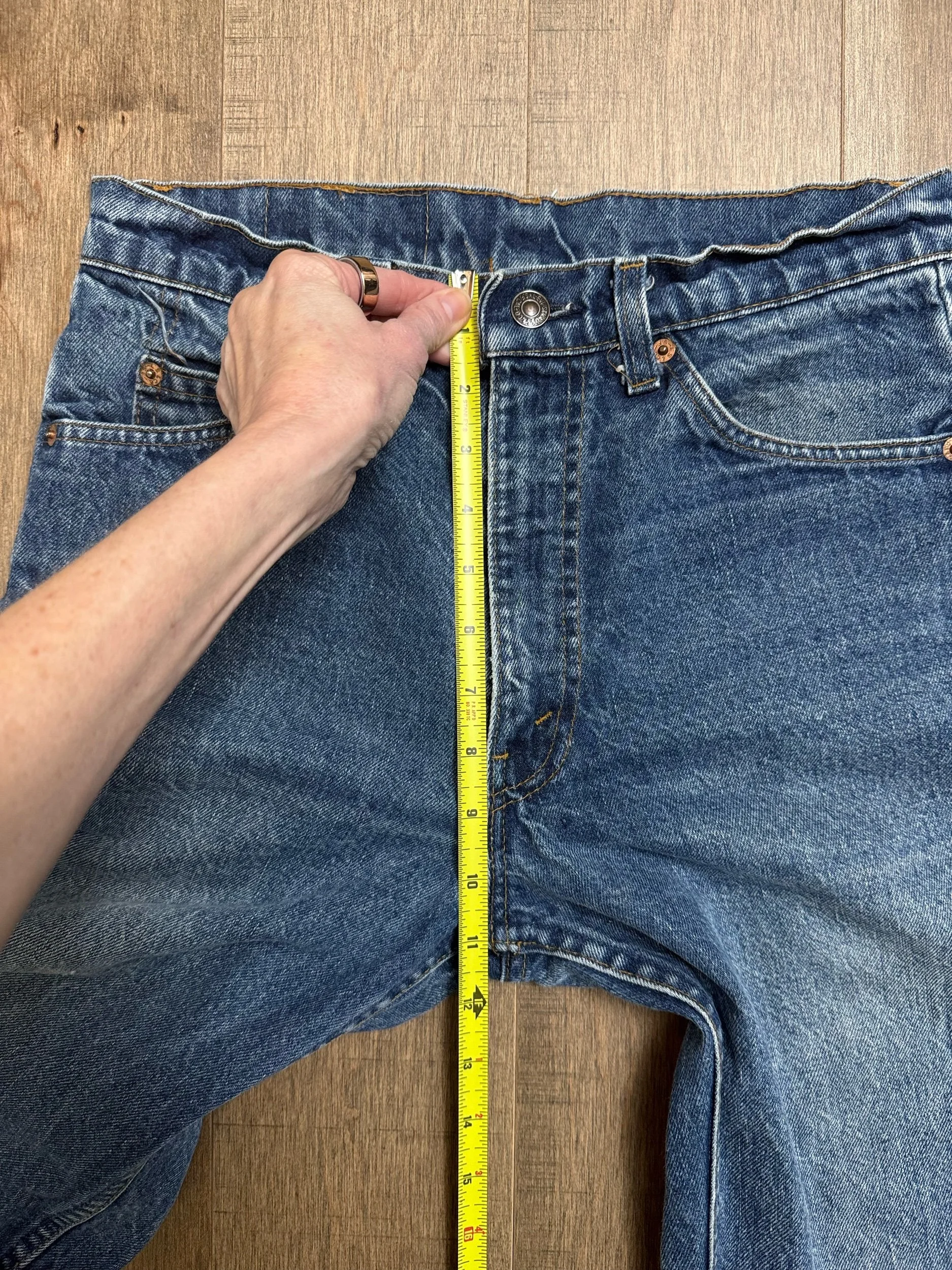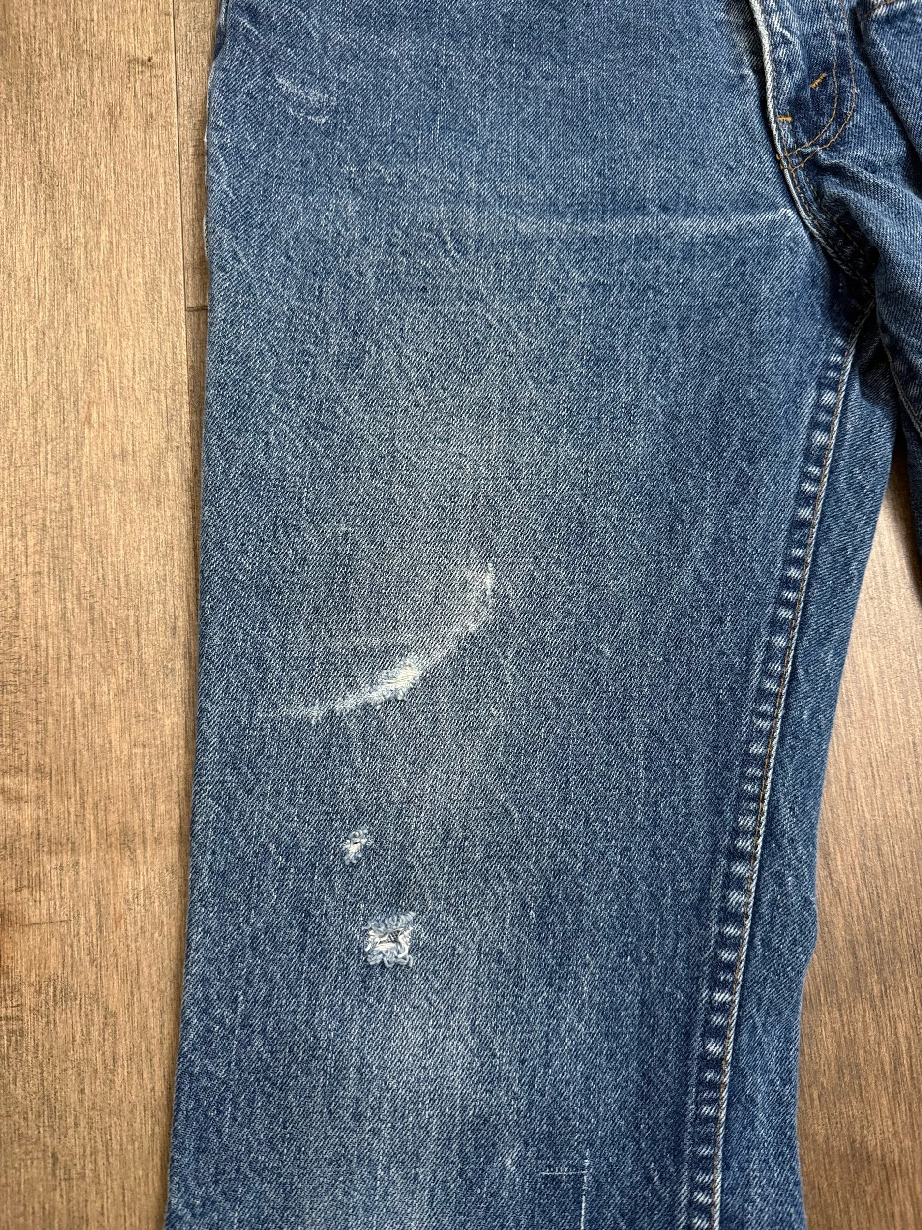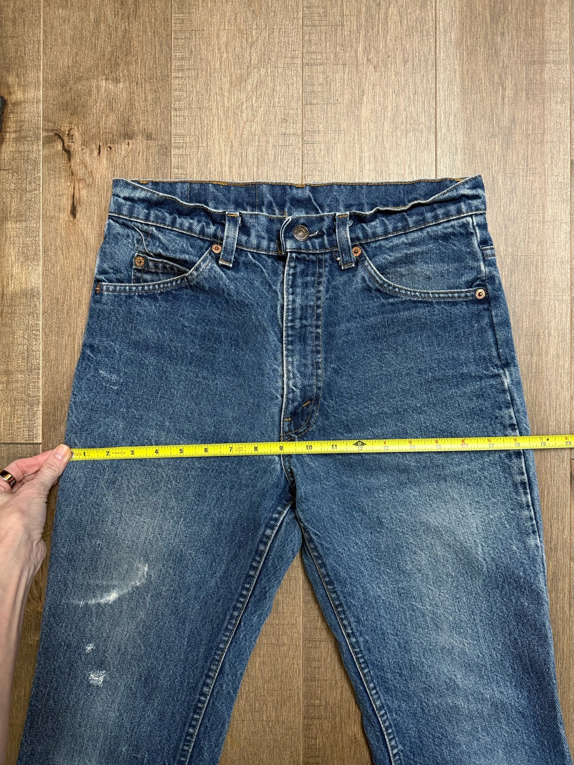Keep in mind, vintage jeans are not new jeans. Every pair is at least 20 years old, most are older. This means they’ve been worn and likely have signs of wear - i.e. thinning areas, loose threads, signs of previous repair work, discolorations, faint (or not so faint stains), organic distressing, wear at the rivets, wear at the button holes. I do my best to describe these areas/signs of wear&tear, so please - before you buy - understand that you may receive your jeans and there will be signs of aging. Most buy vintage jeans wanting this, but if you want pristine new looking jeans, vintage likely isn’t for you. And that’s A-OK! Also note, the word “vintage” is not synonymous with super worn & faded. Vintage means over 20 years old. An item can be both vintage and still be new or like new condition.