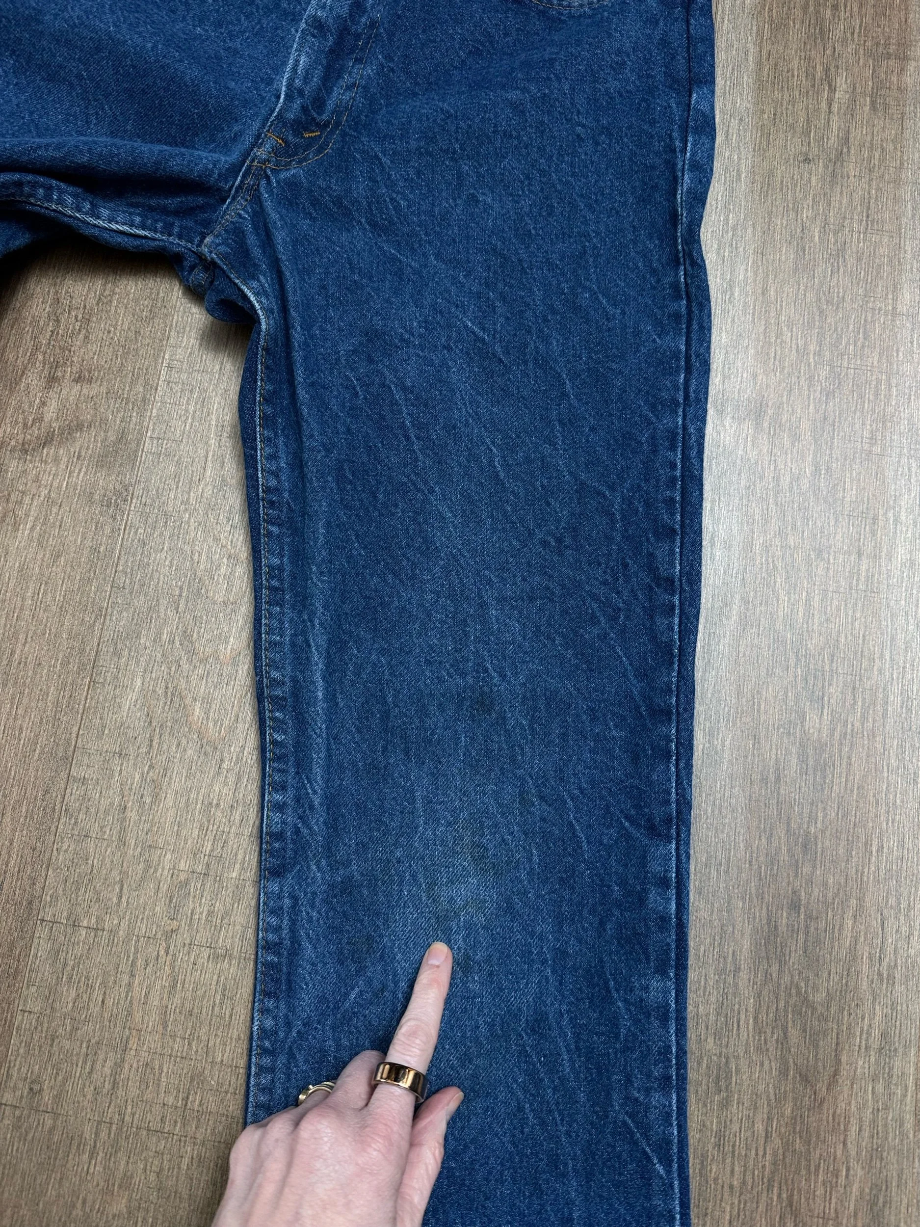 Keep in mind, vintage jeans are not new jeans. Every pair is at least 20 years old, most are older. This means they’ve been worn and likely have signs of wear - i.e. thinning areas, loose threads, signs of previous repair work, discolorations, faint (or not so faint stains), organic distressing, wear at the rivets, wear at the button holes. I do my best to describe these areas/signs of wear&tear, so please - before you buy - understand that you may receive your jeans and there will be signs of aging. Most buy vintage jeans wanting this, but if you want pristine new looking jeans, vintage likely isn’t for you. And that’s A-OK! Also note, the word “vintage” is not synonymous with super worn & faded. Vintage means over 20 years old. An item can be both vintage and still be new or like new condition.