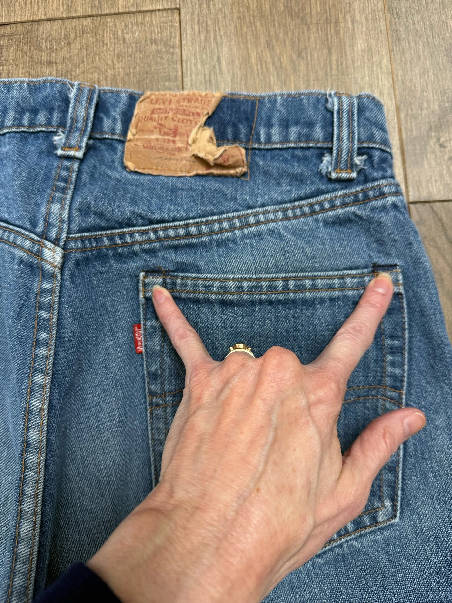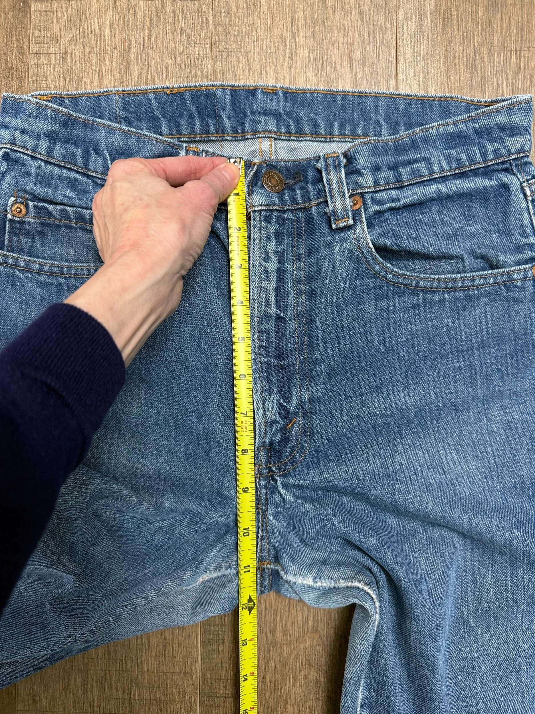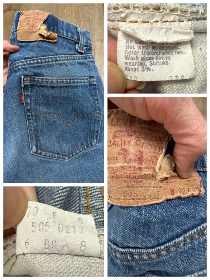 Keep in mind, vintage jeans are not new jeans. Every pair is at least 20 years old, most are older. This means they’ve been worn and likely have signs of wear - i.e. thinning areas, loose threads, signs of previous repair work, discolorations, faint (or not so faint stains), organic distressing, wear at the rivets, wear at the button holes. I do my best to describe these areas/signs of wear&tear, so please - before you buy - understand that you may receive your jeans and there will be signs of aging. Most buy vintage jeans wanting this, but if you want pristine new looking jeans, vintage likely isn’t for you. And that’s A-OK! Also note, the word “vintage” is not synonymous with super worn & faded. Vintage means over 20 years old. An item can be both vintage and still be new or like new condition.
