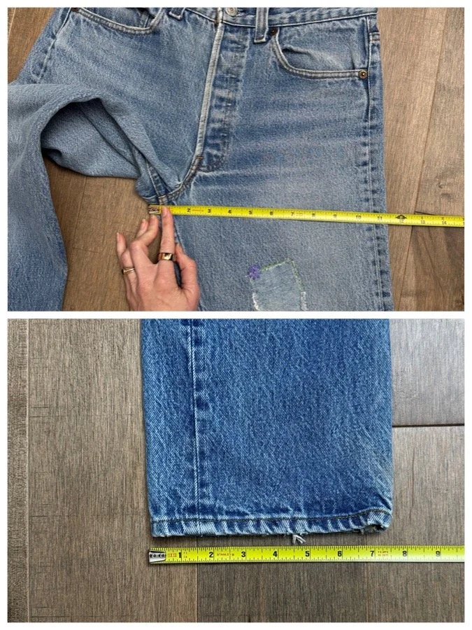 Sold as is. Keep in mind, vintage jeans are not new jeans. Every pair is at least 20 years old, most are older. This means they’ve been worn and likely have signs of wear - i.e. thinning areas, loose threads, signs of previous repair work, discolorations, faint (or not so faint stains), organic distressing, wear at the rivets, wear at the button holes. I do my best to describe these areas/signs of wear&tear, so please - before you buy - understand that you may receive your jeans and there will be signs of aging. Most buy vintage jeans wanting this, but if you want pristine new looking jeans, vintage likely isn’t for you. And that’s A-OK! Also note, the word “vintage” is not synonymous with super worn & faded. Vintage means over 20 years old. An item can be both vintage and still be new or like new condition.