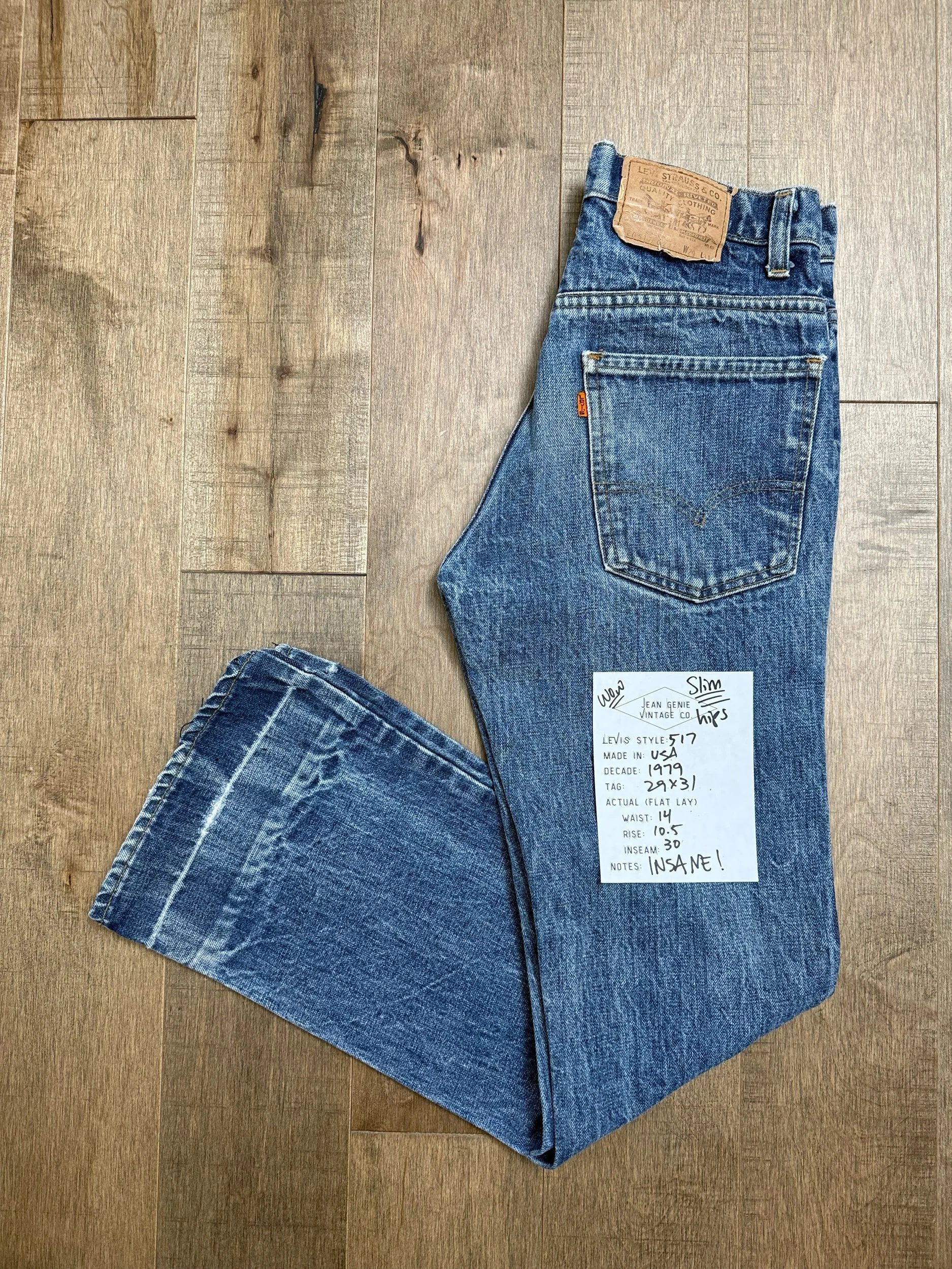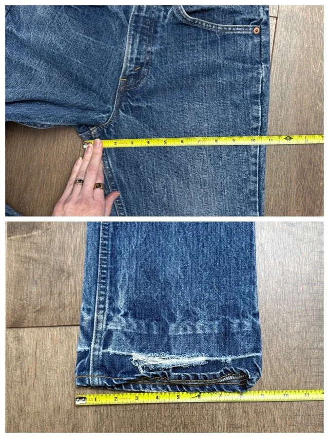 Keep in mind, vintage jeans are not new jeans. Every pair is at least 20 years old, most are older. This means they’ve been worn and likely have signs of wear - i.e. thinning areas, loose threads, signs of previous repair work, discolorations, faint (or not so faint stains), organic distressing, wear at the rivets, wear at the button holes. I do my best to describe these areas/signs of wear&tear, so please - before you buy - understand that you may receive your jeans and there will be signs of aging. Most buy vintage jeans wanting this, but if you want pristine new looking jeans, vintage likely isn’t for you. And that’s A-OK! Also note, the word “vintage” is not synonymous with super worn & faded. Vintage means over 20 years old. An item can be both vintage and still be new or like new condition.