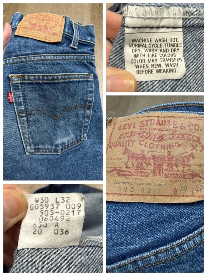 Keep in mind, vintage jeans are not new jeans. Every pair is at least 20 years old, most are older. This means they’ve been worn and likely have signs of wear - i.e. thinning areas, loose threads, signs of previous repair work, discolorations, faint (or not so faint stains), organic distressing, wear at the rivets, wear at the button holes. I do my best to describe these areas/signs of wear&tear, so please - before you buy - understand that you may receive your jeans and there will be signs of aging. Most buy vintage jeans wanting this, but if you want pristine new looking jeans, vintage likely isn’t for you. And that’s A-OK! Also note, the word “vintage” is not synonymous with super worn & faded. Vintage means over 20 years old. An item can be both vintage and still be new or like new condition.