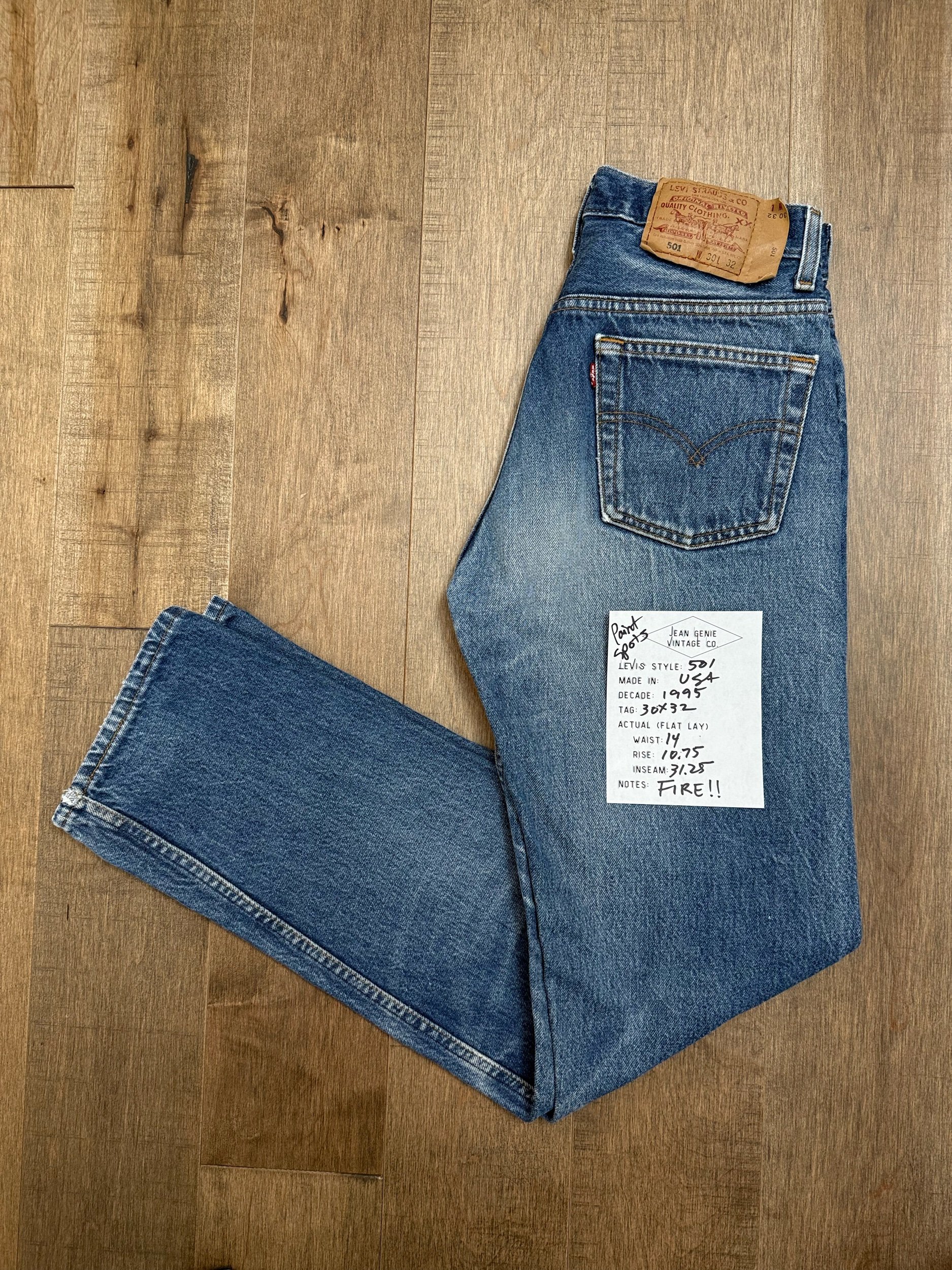 WASH: beautiful classic darker medium blue wash with FIRE organic sun fades & cool paint spots