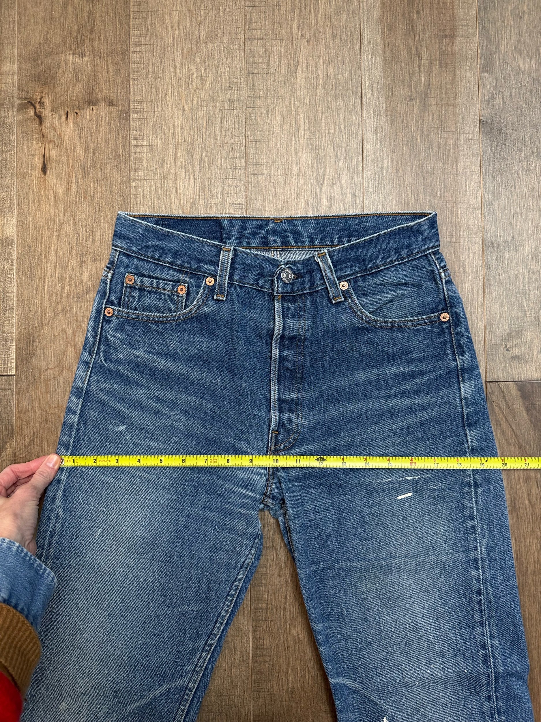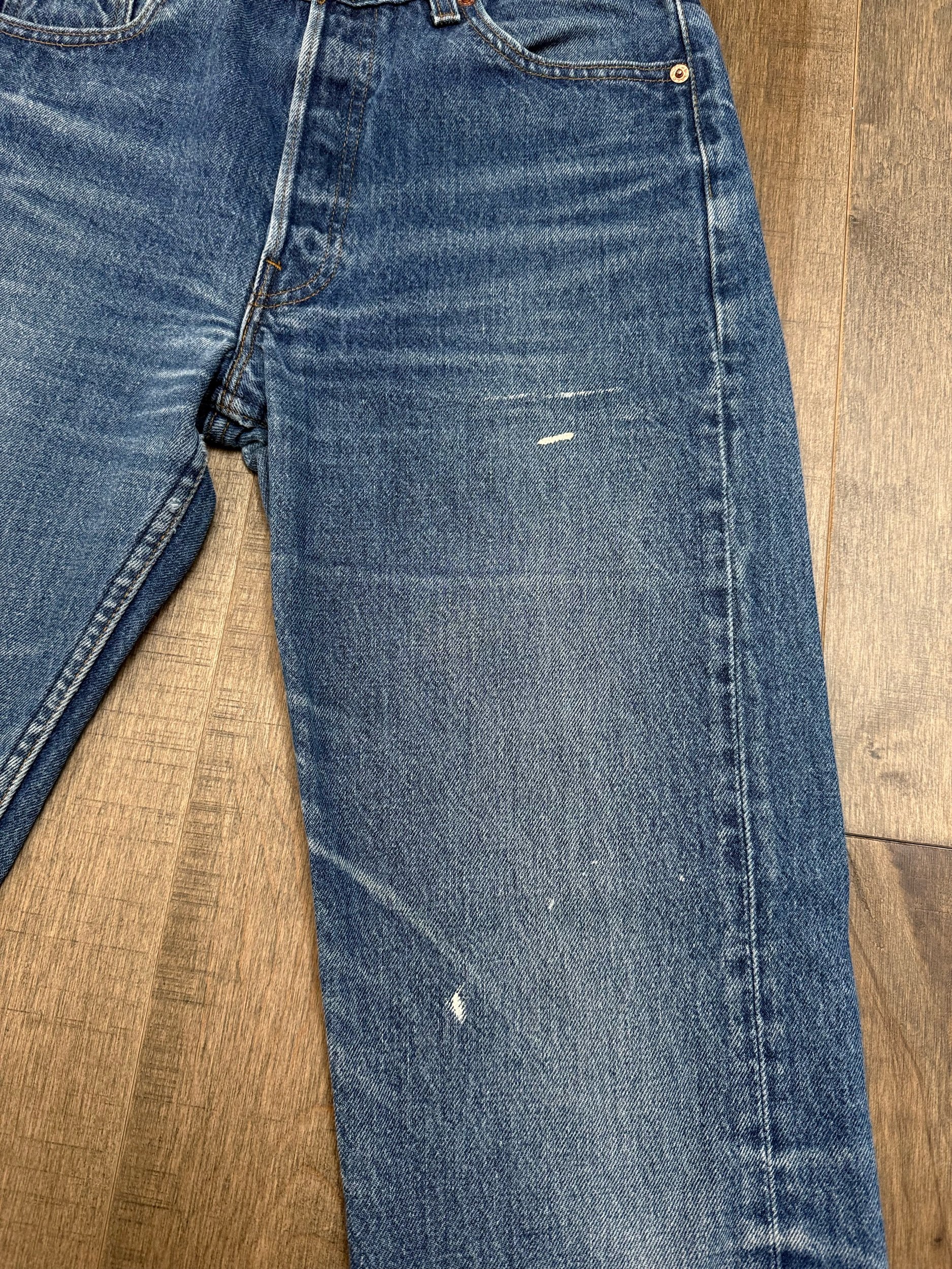 Sold as is. Keep in mind, vintage jeans are not new jeans. Every pair is at least 20 years old, most are older. This means they’ve been worn and likely have signs of wear - i.e. thinning areas, loose threads, signs of previous repair work, discolorations, faint (or not so faint stains), organic distressing, wear at the rivets, wear at the button holes. I do my best to describe these areas/signs of wear&tear, so please - before you buy - understand that you may receive your jeans and there will be signs of aging. Most buy vintage jeans wanting this, but if you want pristine new looking jeans, vintage likely isn’t for you. And that’s A-OK! Also note, the word “vintage” is not synonymous with super worn & faded. Vintage means over 20 years old. An item can be both vintage and still be new or like new condition.