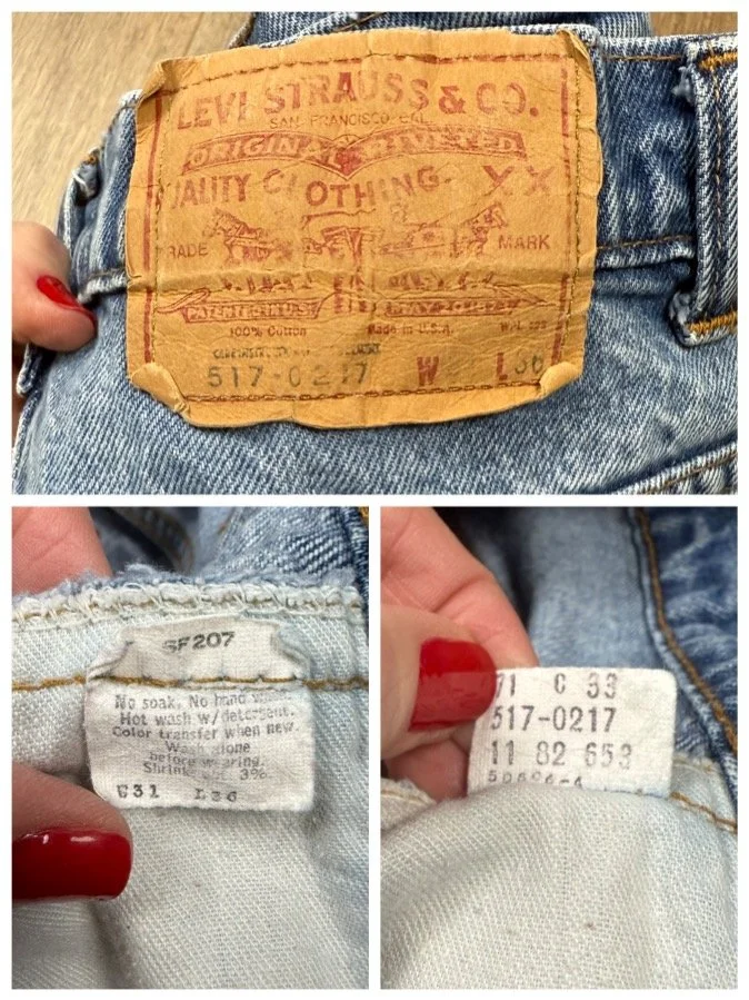 sizes 28-29 1976 Levi’s USA 646 Tag 32x32 Actual 29x30 $315.00 Sold Out 2002 Levi’s 501 Tag 30x34 Actual 29x32.5 $195.00 Sold Out 1986 Levi’s USA 501 Tag 30x34 Actual 28x29.75 $275.00 Sold Out 1987 Levi’s USA 501 Tag 31x36 Actual 28x32 $275.00 Sold Out 1984 Levi’s USA 501 Tag 31x32 Actual 28x28.75 $265.00 Sold Out 1970s Levi’s USA 505 Tag 30x30 actual 28/29x28.5 $275.00 Sold Out 1990 Levi’s USA 517 Tag 30x31 Actual 29x30.5 $255.00 Sold Out 1990 Levi’s USA 517 Tag 31x32 Actual 29x31 $245.00 Sold Out 1994 Levi’s USA 501 tag 31x31 Actual 28x27 $275.00 Sold Out 1992 Levi’s USA 501 Tag 34x32 Actual 29x28 $225.00 Sold Out 1986 Levi’s USA 501 Tag 31x36 Actual 28x31.5 $265.00 Sold Out 1986 Levi’s USA 501 Tag 30x32 Actual 28x28.5 $275.00 Sold Out 2000 Levi’s USA 501 Tag 32x30 Actual 29x29 $255.00 Sold Out 1970s Rustler USA Bootcut Tag 31x32 Actual 29x30 Sale Price: $165.00 Original Price: $185.00 Sale 1970s Rustler USA Bootcut/Flare Tag 32x32 Actual 29x29.5 Sale Price: $175.00 Original Price: $195.00 Sale 1970s 80s Lee Riders USA Tag 30x34 Actual 28x29 Sale Price: $175.00 Original Price: $195.00 Sold Out 1980s Levi’s USA 517 Tag n/a Actual 29x31.5 $255.00 Sold Out 1970s Levi’s USA 517 Tag 31x34 Actual 29x31 $255.00 Sold Out 1984 Levi’s USA 517 Tag 30x34 Actual 28x32 $255.00 Sold Out 1986 Levi’s USA 517 Tag 30x31 Actual 28x29 $255.00 Sold Out 1984 Levi’s USA 517 Tag n/a Actual 28x36.5 $255.00 Sold Out 1990 Levi’s USA 501 Tag 29x32 Actual 27/28x31 $225.00 Sold Out 1993 Levi’s USA 501 Tag 30x36 Actual 28x28.5 $265.00 Sold Out 1990 Levi’s USA 501 Tag 30x32 Actual 28x31.5 $265.00 Sold Out 1999 Levi’s USA 501 Tag 31x34 Actual 29x33 $255.00 Sold Out 1986 Levi’s USA 501 Tag 30x30 Actual 28x29 $265.00 Sold Out 1990 Levi’s USA 501 Tag 30x30 Actual 28x27 $275.00 Sold Out 1997 Levi’s USA 501 Tag 31x32 Actual 29x28.5 $275.00 Sold Out 1992/93 Levi’s USA 501 Tag 30x32 Actual 28x30 $235.00 Sold Out 1996 Levi’s USA 501 Tag 31x32 actual 29x32 $215.00 1970s Levi’s USA 505 Tag 30x36 Actual 29x35 $265.00 Sold Out 1979 Levi’s USA 505 Tag 29x30 Actual 27/28x29 $255.00 Sold Out 1990s Levi’s USA 505 Tag 31x32 Actual 29x31.75 $245.00 Sold Out 1979 Levi’s USA 505 Tag 30x33 Actual 29x33 $285.00 Sold Out 1980s Levi’s USA 505 Tag n/a Actual 28x29 $255.00 Sold Out 1996 Levi’s USA 501 Tag 31x32 Actual 29x26 $235.00 Sold Out 1998 Levi’s USA 501 Tag 30x32 Actual 28x31.5 $245.00 Sold Out 1985 Levi’s USA 501 Tag 32x30 Actual 29x26.5 $245.00 Sold Out 80s/90s Levi’s USA 501 Tag n/a Actual 29x31 $255.00 Sold Out 1993 Levi’s USA 501 Tag 32x36 Actual 29x31 $250.00 Sold Out 1970s Levi’s USA 646 Tag n/a Actual 29x30 $305.00 Sold Out Early 70s Levi’s USA 646 Tag n/a Actual 27/28x26.5 $325.00 Sold Out 1970s Levi’s USA 684 Tag n/a Actual 28x31 $315.00 Sold Out 1983 Levi’s USA 646 Tag 31x33 Actual 29x31 $295.00 Sold Out 1980 Levi’s USA 646 Tag n/a Actual 28x32 $315.00 Sold Out 1979 Levi’s USA 646 Tag 31x34 Actual 29x32 $315.00 Sold Out 1970s Levi’s USA 646 Tag n/a Actual 27/28x28 $295.00 Sold Out 1983 Levi’s USA 517 Tag 30x38 Actual 28x37 $265.00 Sold Out 1986 Levi’s USA 517 Tag 30x38 Actual 28x36 $265.00 Sold Out 1996 Levi’s USA 517 Tag 30x30 Actual 29x29 $245.00 Sold Out 1984 Levi’s USA 517 Tag 31x32 Actual 29x30.75 $245.00 Sold Out 1998 Levi’s USA 501 Tag 30x32 W Actual 28x31.5 $235.00 Sold Out 1992 Levi’s USA 501 Tag 31x34 Actual 28x30 $265.00 Sold Out 1992 Levi’s USA 501 Tag 32x36 Actual 29x31.5 $245.00 Sold Out 2001 Levi’s USA 501 Tag 31x30 Actual 29x27 $265.00 Sold Out 1990s Levi’s USA 501 Tag 31x31 Actual 28x27 $255.00 Sold Out 1994 Levi’s USA 501 Tag 31x38 Actual 28x28.5 $265.00 Sold Out 1978 Levi’s USA 719 Tag 29x34 Actual 27/28x32 $245.00 Sold Out 1984 Levi’s USA 517 Tag 31x33 Actual 29x31.5 $265.00 Sold Out 1985 Levi’s USA 509 Tag 32x32 Actual 29x29 $245.00 Sold Out 1981 Levi’s USA 517 Tag n/a Actual 29x30 $245.00 Sold Out 1989 Levi’s USA 517 Tag 30x34 Actual 28x31.75 $245.00 Sold Out 1984 Levi’s USA 517 tag 31x36 Actual 29x34 $265.00 Sold Out 1984 Levi’s USA 505 Tag 31x31 Actual 29x29 $235.00 Sold Out 1989 Levi’s USA 505 Tag 31x34 Actual 29x32 $245.00 Sold Out 1984 Levi’s USA 501 Tag 30x32 Actual 28x32 $255.00 1985 Levi’s USA 517 Tag 31x34 Actual 29x30 $235.00 Sold Out 1970s Levi’s USA 517 Tag 30x31 Tag 28x30 $255.00 Sold Out 1995 Levi’s USA 501 Tag 32x32 Actual 29x31 $265.00 Sold Out 2000 Levi’s USA 501 Tag 32x34 W Actual 29x33 $255.00 Sold Out 1985 Levi’s USA 701 Tag 31x30 Actual 28x29.5 $275.00 Sold Out 1993 Levi’s USA 501 Tag 30x36 Actual 28x34.5 $255.00 Sold Out 1985 Levi’s USA 501 Tag 32x36 Actual 29x29.5 $255.00 Sold Out 1997 Levi’s USA 501 Tag 31x30 Actual 29x29 $255.00 Sold Out 1993 Levi’s USA 501 Tag 32x30 Actual 29x29 $265.00 Sold Out 1998 Levi’s USA 501 Tag 31x33 Actual 29x28 $275.00 Sold Out 1977 Levi’s USA 646 Tag n/a Actual 28x31.5 $305.00 Sold Out 1991 Levi’s USA 517 Tag 31x31 Actual 29x30 $245.00 Sold Out 1982 Levi’s USA 517 Tag 31x36 Actual 28/29x34 $265.00 Sold Out 2000 Levi’s USA 517 Tag 30x30 Actual 28x29 $245.00 Sold Out 1984 Levi’s USA 517 Tag 31x33 Actual 29x29.5 $255.00 Sold Out 1984 Levi’s USA 517 Tag 30x33 Actual 28x31 $255.00 Sold Out 1992 Levi’s USA 517 Tag 31x32 Actual 29x30.25 $265.00 Sold Out 1980s Levi’s USA 517 Tag 31x32 Actual 28x29.75 $255.00 Sold Out 1980s Levi’s USA 517 tag n/a Actual 29x29 $255.00 Sold Out 1991 Levi’s USA 501 Tag 31x32 Actual 28x28.5 $205.00 Sold Out 1997 Levi’s USA 501 Tag 30x30 Actual 28x27.5 $215.00 Sold Out 2001 Levi’s USA 501 Tag 31x32 W Actual 29x30.75 $245.00 Sold Out 1995 Levi’s USA 501 Tag 31x36 Actual 28x32 $245.00 Sold Out 1990s Levi’s USA 501 Tag 32x34 Actual 28x30 $255.00 Sold Out 1999 Levi’s USA 501 Tag 32x32 Actual 29x31 $245.00 Sold Out 1995 Levi’s USA 501 Tag 31x36 Actual 28x31.5 $255.00 Sold Out 1990 Levi’s USA 501 Tag 31x32 Actual 28x31 $255.00 Sold Out 1970s Levi’s USA 517 Tag