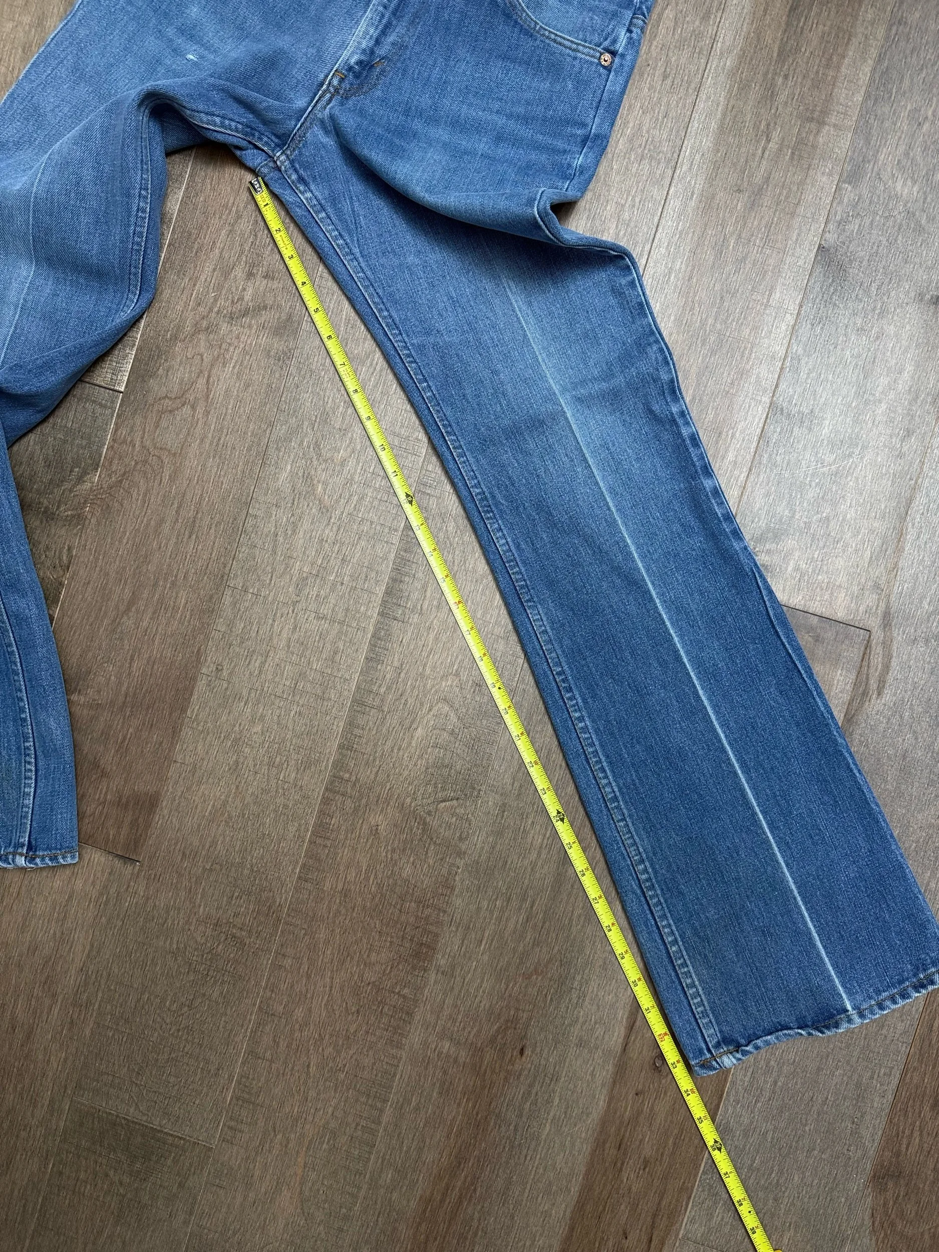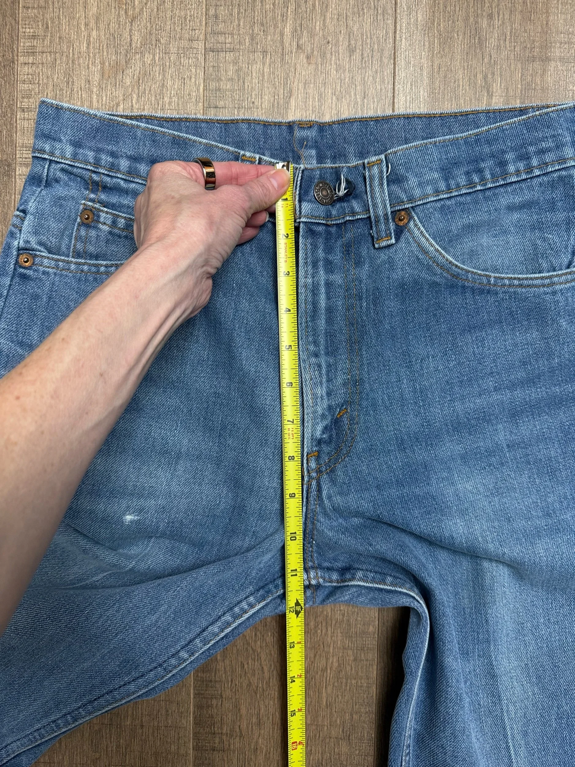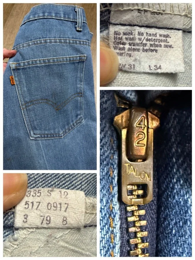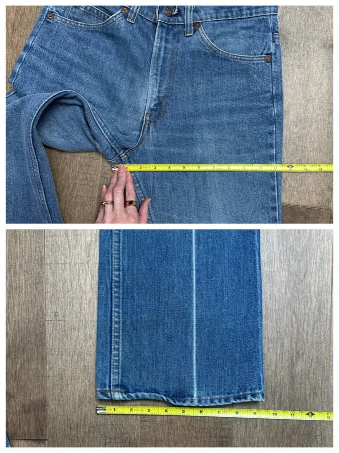 Keep in mind, vintage jeans are not new jeans. Every pair is at least 20 years old, most are older. This means they’ve been worn and likely have signs of wear - i.e. thinning areas, loose threads, signs of previous repair work, discolorations, faint (or not so faint stains), organic distressing, wear at the rivets, wear at the button holes. I do my best to describe these areas/signs of wear&tear, so please - before you buy - understand that you may receive your jeans and there will be signs of aging. Most buy vintage jeans wanting this, but if you want pristine new looking jeans, vintage likely isn’t for you. And that’s A-OK! Also note, the word “vintage” is not synonymous with super worn & faded. Vintage means over 20 years old. An item can be both vintage and still be new or like new condition.