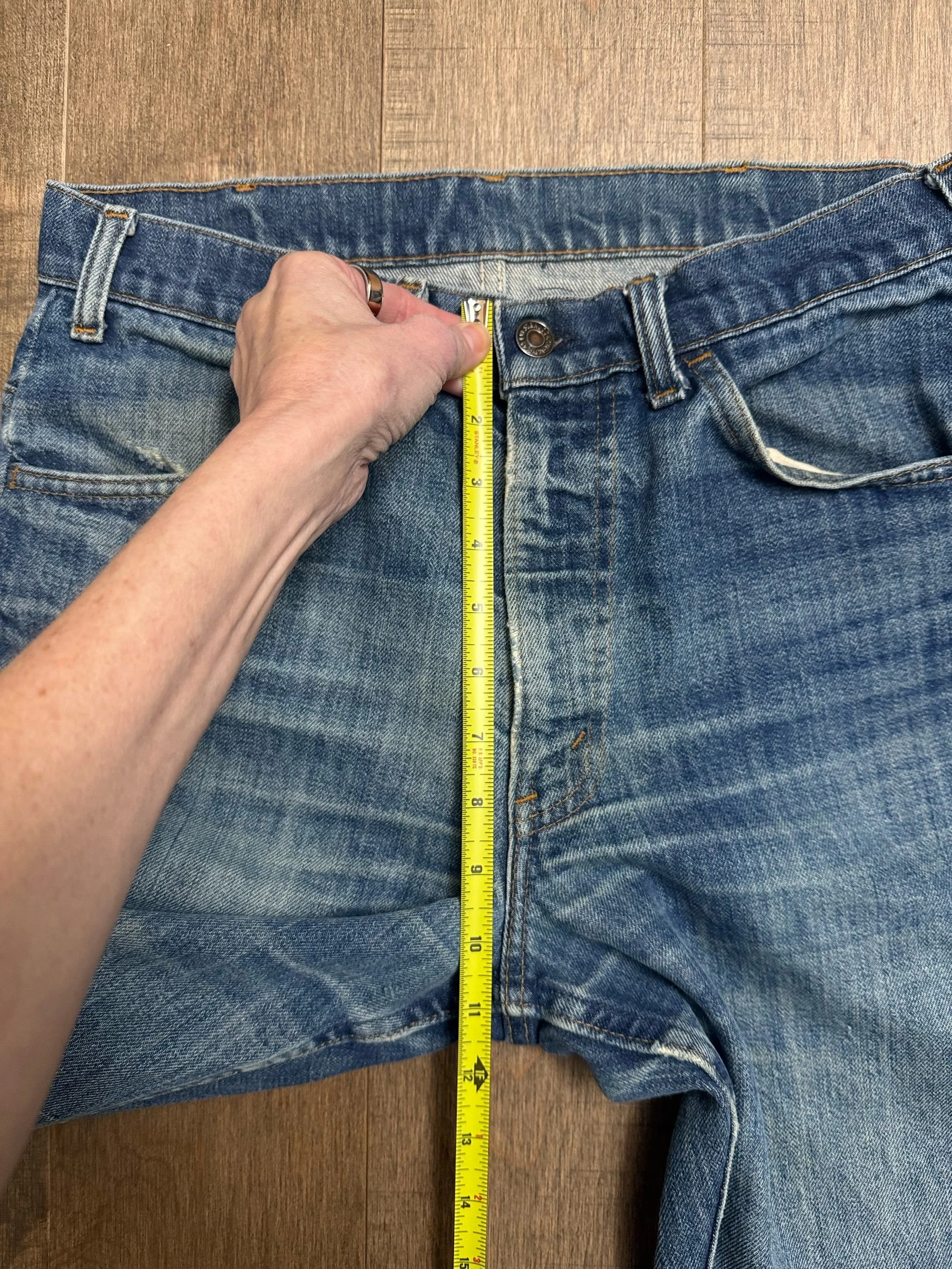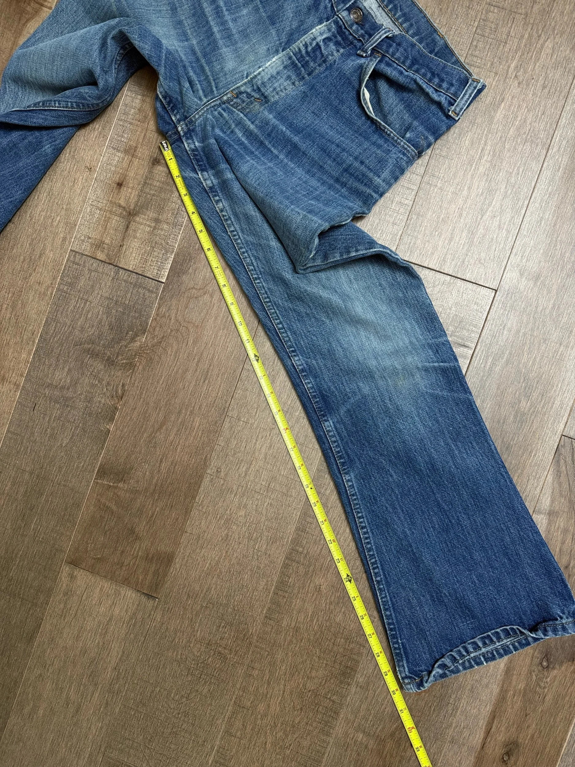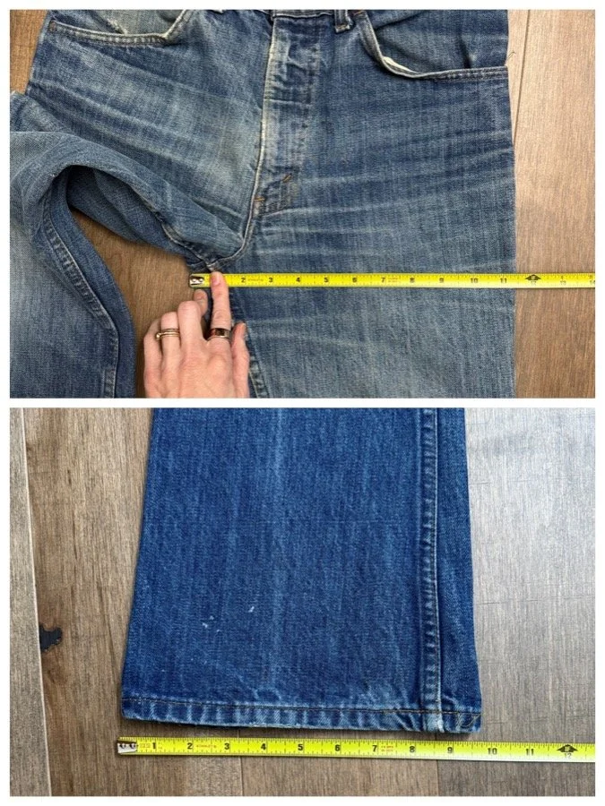 Keep in mind, vintage jeans are not new jeans. Every pair is at least 20 years old, most are older. This means they’ve been worn and likely have signs of wear - i.e. thinning areas, loose threads, signs of previous repair work, discolorations, faint (or not so faint stains), organic distressing, wear at the rivets, wear at the button holes. I do my best to describe these areas/signs of wear&tear, so please - before you buy - understand that you may receive your jeans and there will be signs of aging. Most buy vintage jeans wanting this, but if you want pristine new looking jeans, vintage likely isn’t for you. And that’s A-OK! Also note, the word “vintage” is not synonymous with super worn & faded. Vintage means over 20 years old. An item can be both vintage and still be new or like new condition.