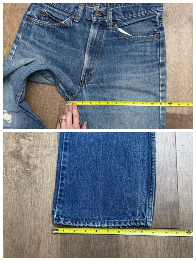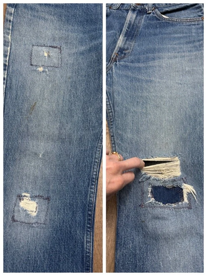 Keep in mind, vintage jeans are not new jeans. Every pair is at least 20 years old, most are older. This means they’ve been worn and likely have signs of wear - i.e. thinning areas, loose threads, signs of previous repair work, discolorations, faint (or not so faint stains), organic distressing, wear at the rivets, wear at the button holes. I do my best to describe these areas/signs of wear&tear, so please - before you buy - understand that you may receive your jeans and there will be signs of aging. Most buy vintage jeans wanting this, but if you want pristine new looking jeans, vintage likely isn’t for you. And that’s A-OK! Also note, the word “vintage” is not synonymous with super worn & faded. Vintage means over 20 years old. An item can be both vintage and still be new or like new condition.