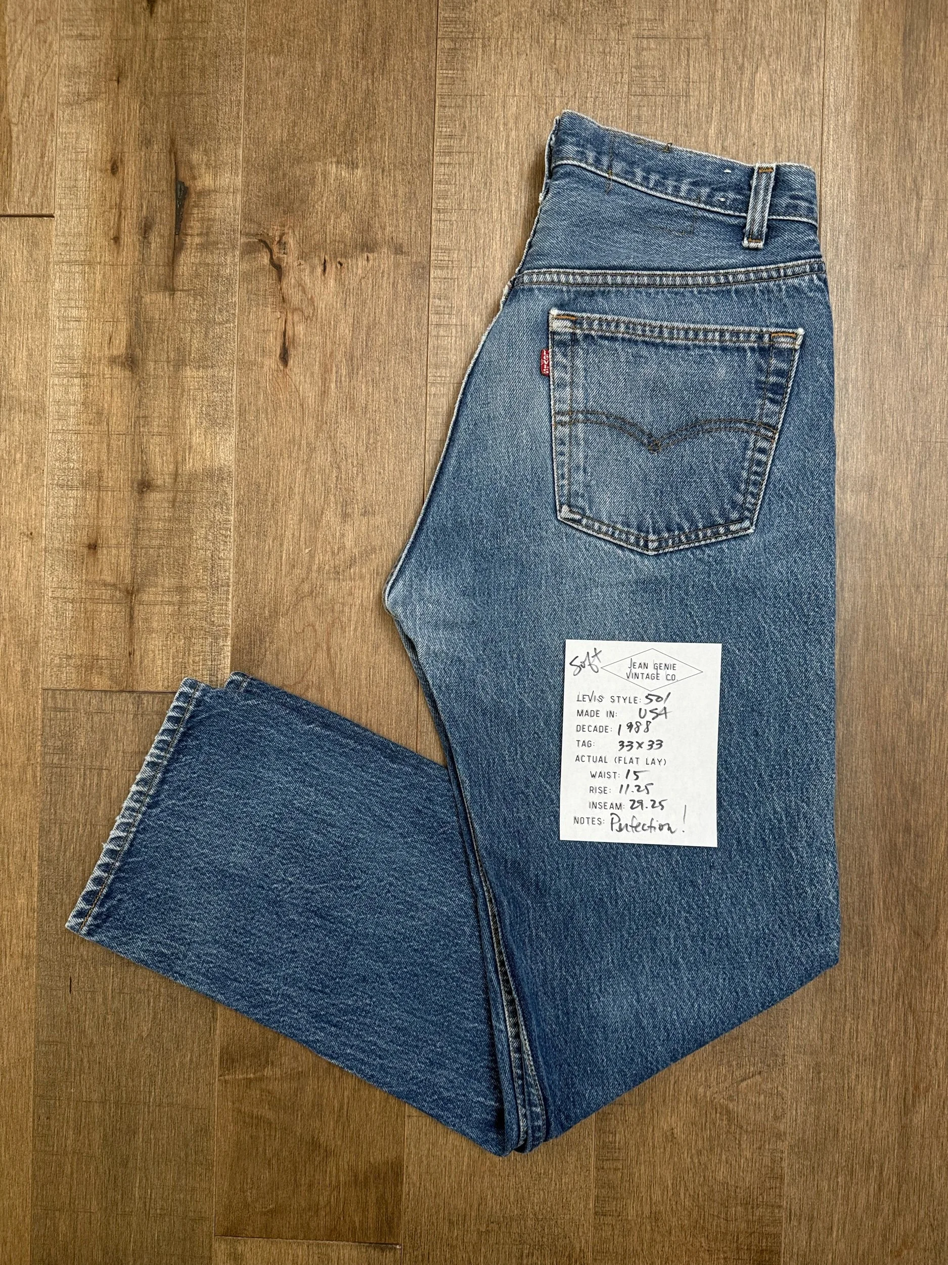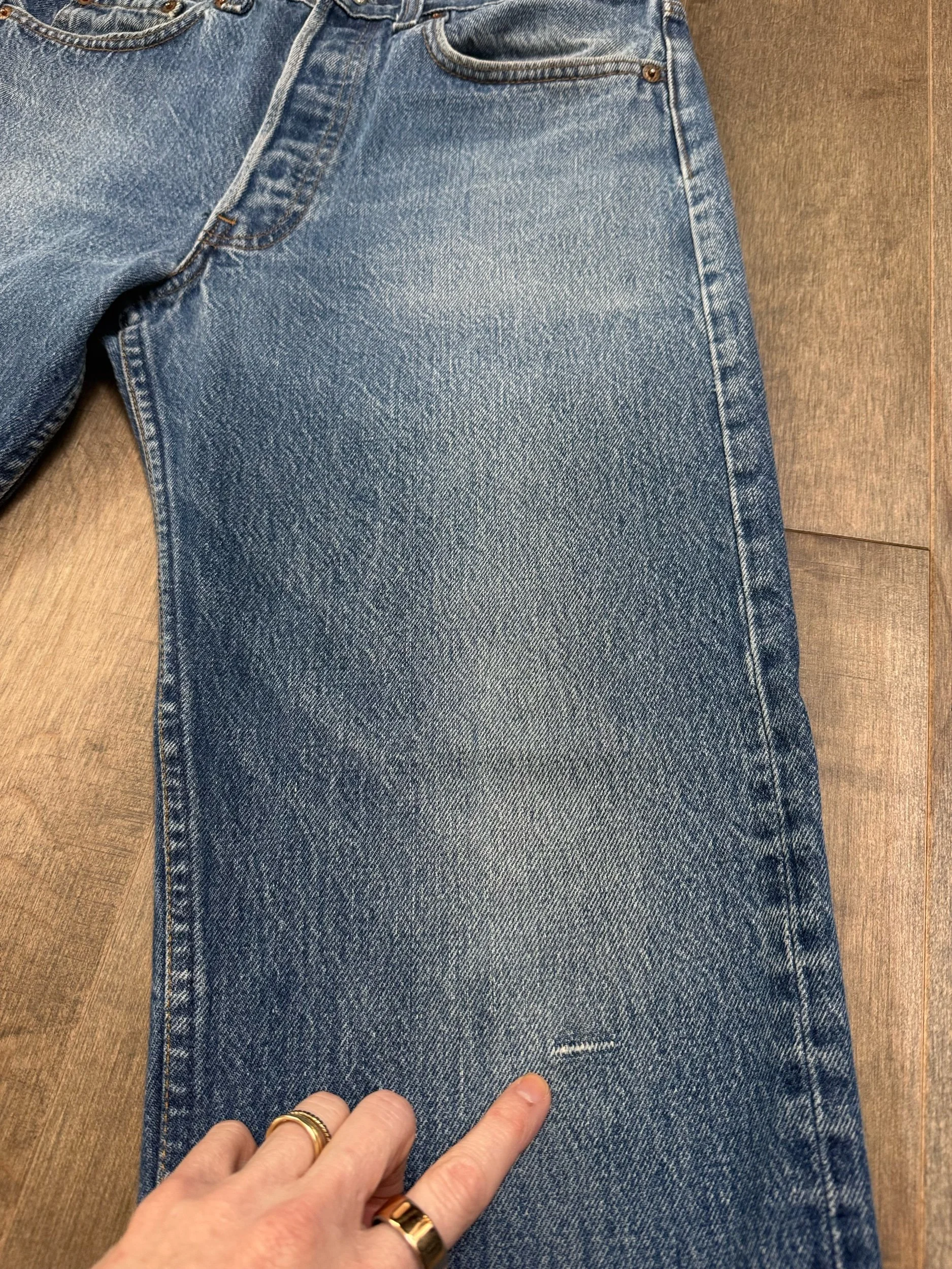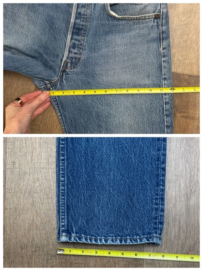 Sold as is. Keep in mind, vintage jeans are not new jeans. Every pair is at least 20 years old, most are older. This means they’ve been worn and likely have signs of wear - i.e. thinning areas, loose threads, signs of previous repair work, discolorations, faint (or not so faint stains), organic distressing, wear at the rivets, wear at the button holes. I do my best to describe these areas/signs of wear&tear, so please - before you buy - understand that you may receive your jeans and there will be signs of aging. Most buy vintage jeans wanting this, but if you want pristine new looking jeans, vintage likely isn’t for you. And that’s A-OK! Also note, the word “vintage” is not synonymous with super worn & faded. Vintage means over 20 years old. An item can be both vintage and still be new or like new condition.