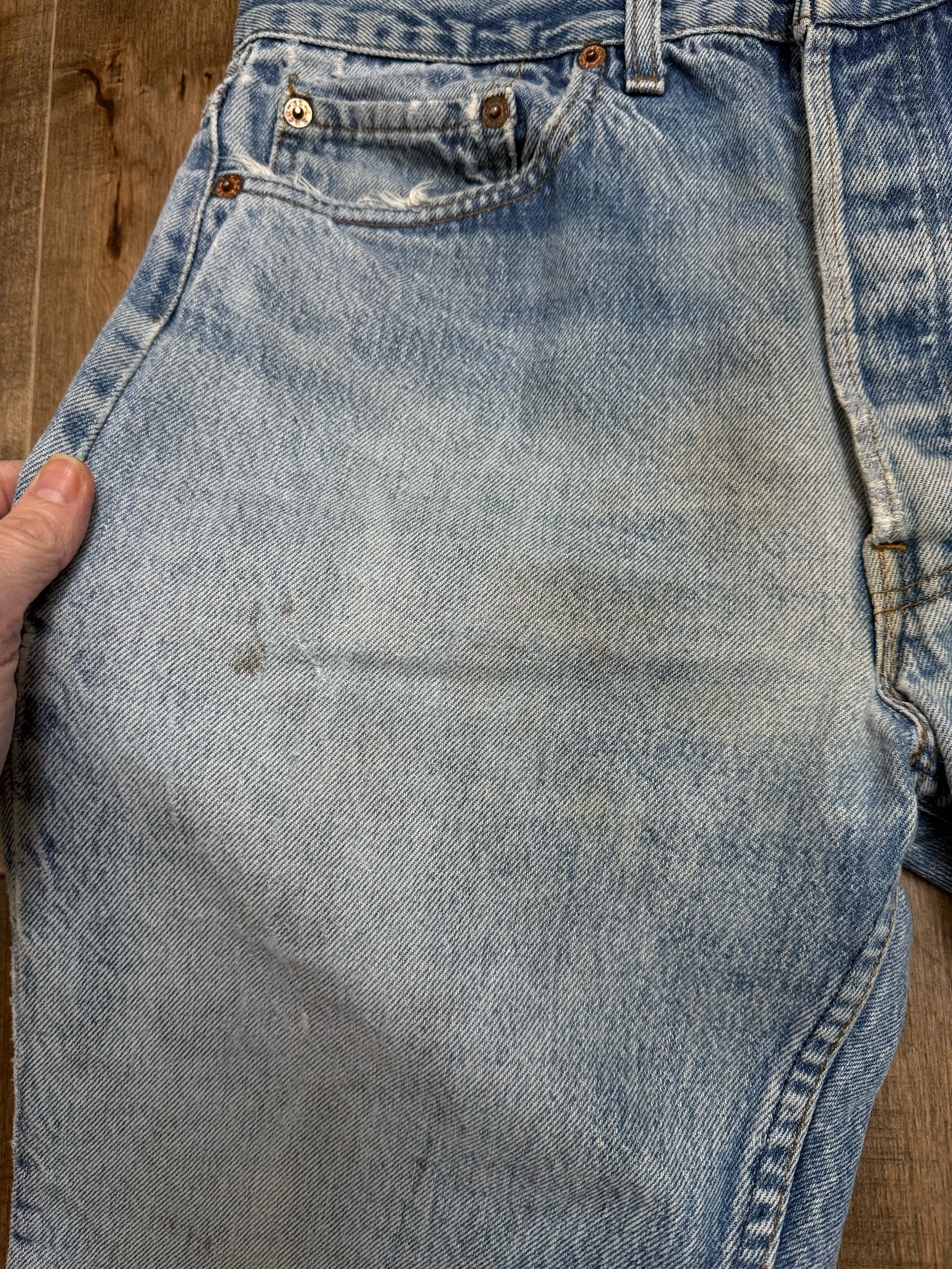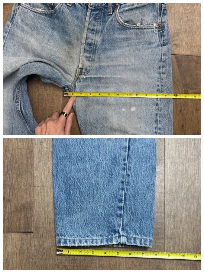 Sold as is. Keep in mind, vintage jeans are not new jeans. Every pair is at least 20 years old, most are older. This means they’ve been worn and likely have signs of wear - i.e. thinning areas, loose threads, signs of previous repair work, discolorations, faint (or not so faint stains), organic distressing, wear at the rivets, wear at the button holes. I do my best to describe these areas/signs of wear&tear, so please - before you buy - understand that you may receive your jeans and there will be signs of aging. Most buy vintage jeans wanting this, but if you want pristine new looking jeans, vintage likely isn’t for you. And that’s A-OK! Also note, the word “vintage” is not synonymous with super worn & faded. Vintage means over 20 years old. An item can be both vintage and still be new or like new condition.