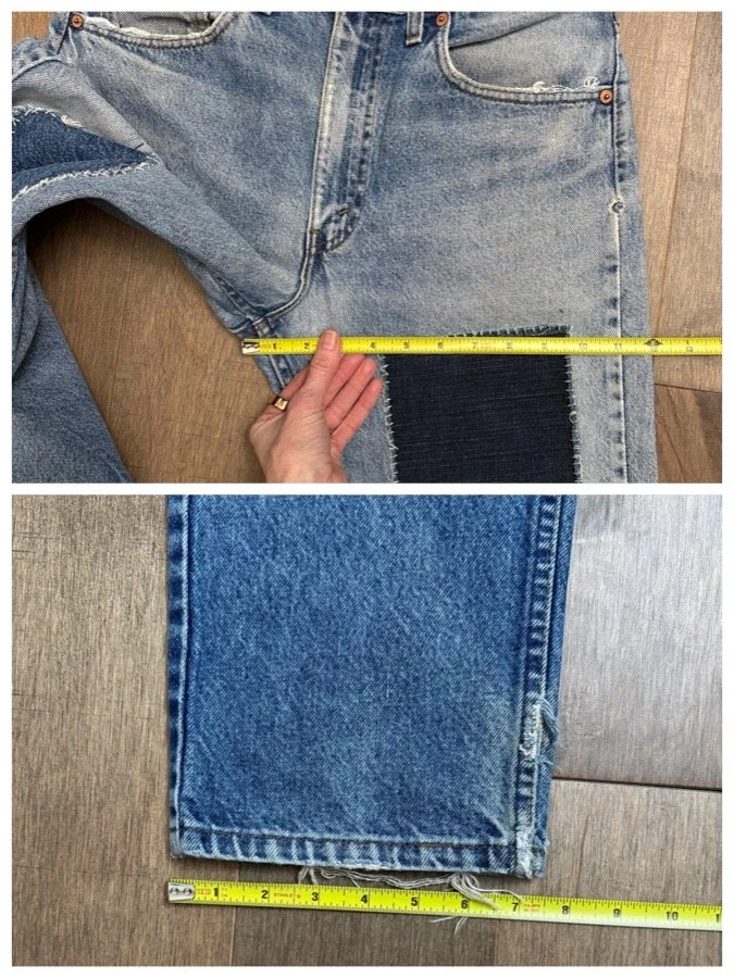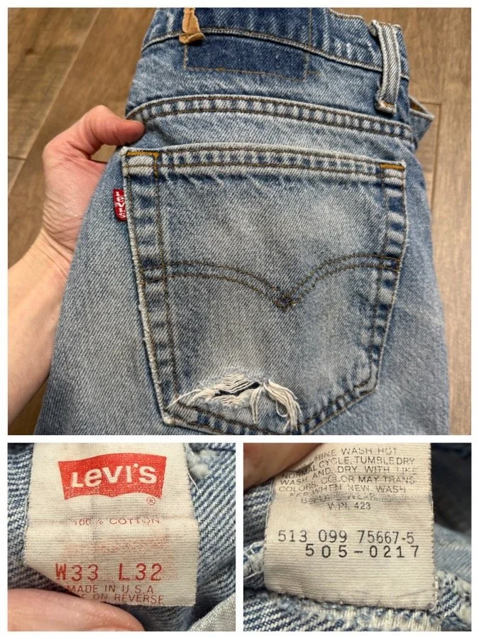 Keep in mind, vintage jeans are not new jeans. Every pair is at least 20 years old, most are older. This means they’ve been worn and likely have signs of wear - i.e. thinning areas, loose threads, signs of previous repair work, discolorations, faint (or not so faint stains), organic distressing, wear at the rivets, wear at the button holes. I do my best to describe these areas/signs of wear&tear, so please - before you buy - understand that you may receive your jeans and there will be signs of aging. Most buy vintage jeans wanting this, but if you want pristine new looking jeans, vintage likely isn’t for you. And that’s A-OK! Also note, the word “vintage” is not synonymous with super worn & faded. Vintage means over 20 years old. An item can be both vintage and still be new or like new condition.
