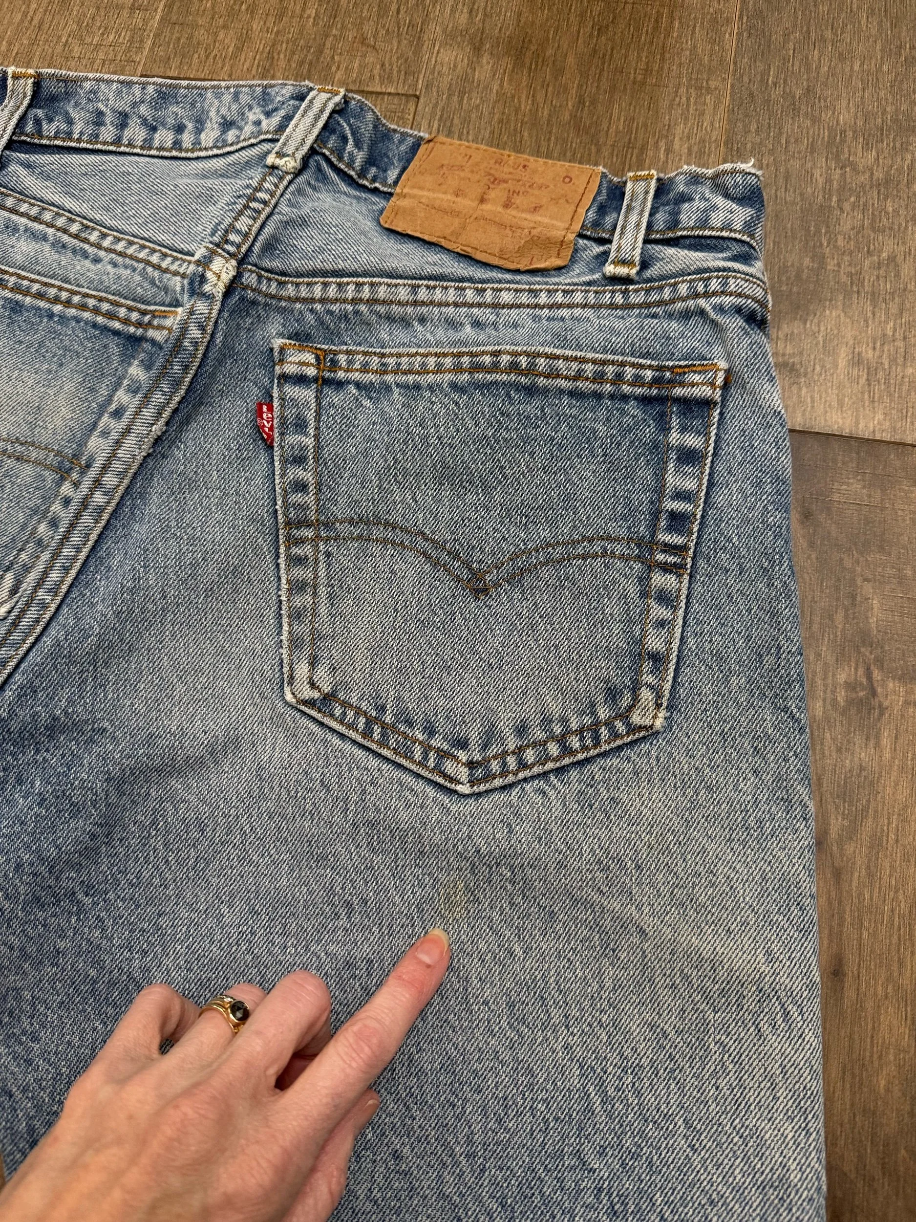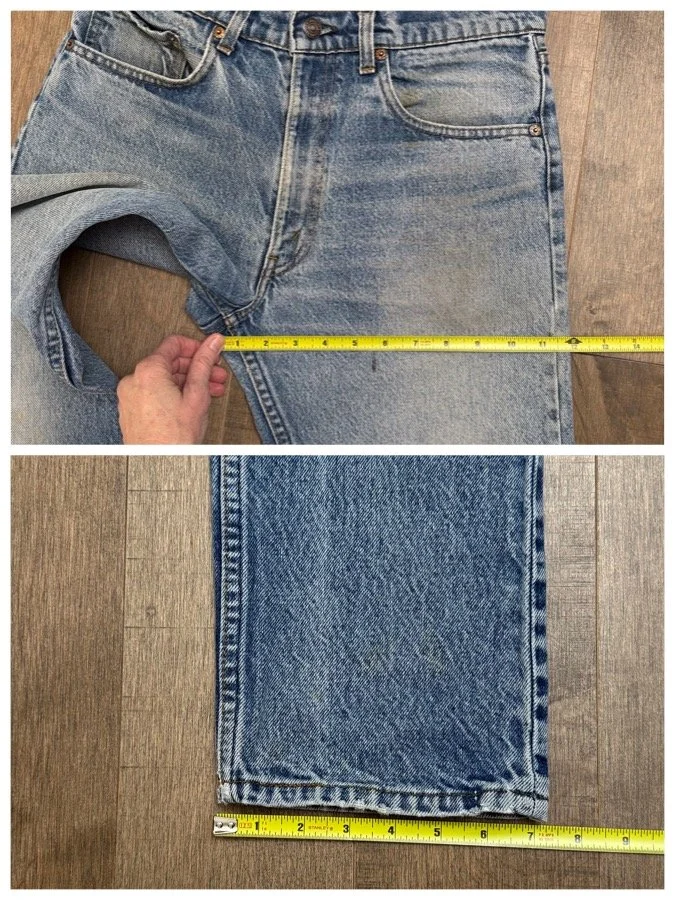Keep in mind, vintage jeans are not new jeans. Every pair is at least 20 years old, most are older. This means they’ve been worn and likely have signs of wear - i.e. thinning areas, loose threads, signs of previous repair work, discolorations, faint (or not so faint stains), organic distressing, wear at the rivets, wear at the button holes. I do my best to describe these areas/signs of wear&tear, so please - before you buy - understand that you may receive your jeans and there will be signs of aging. Most buy vintage jeans wanting this, but if you want pristine new looking jeans, vintage likely isn’t for you. And that’s A-OK! Also note, the word “vintage” is not synonymous with super worn & faded. Vintage means over 20 years old. An item can be both vintage and still be new or like new condition.