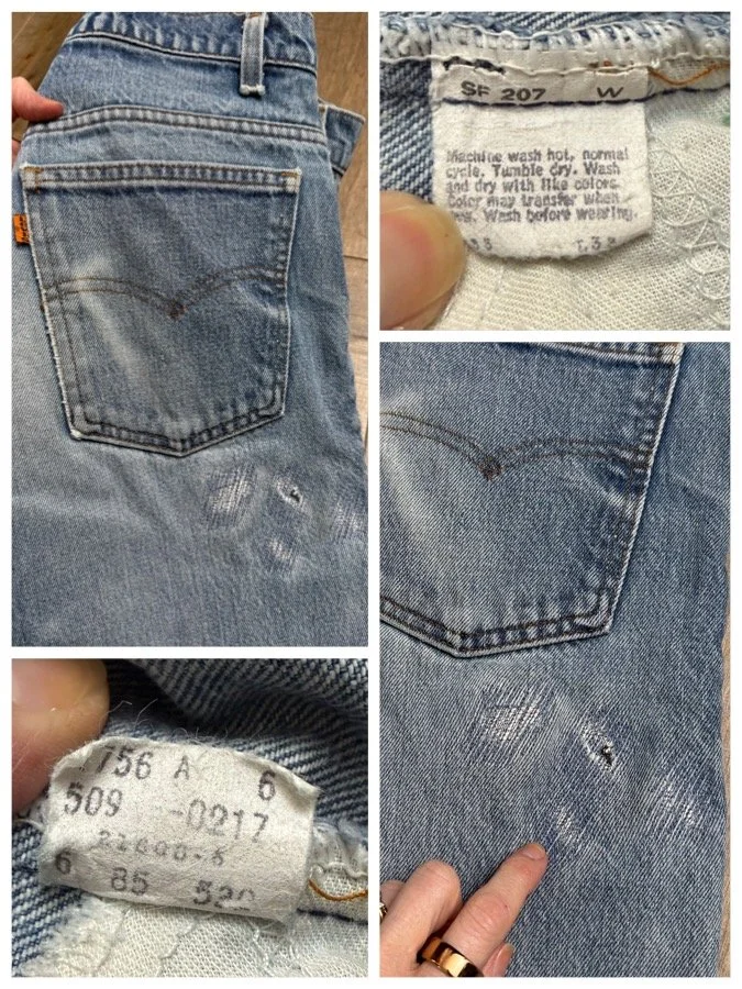Keep in mind, vintage jeans are not new jeans. Every pair is at least 20 years old, most are older. This means they’ve been worn and likely have signs of wear - i.e. thinning areas, loose threads, signs of previous repair work, discolorations, faint (or not so faint stains), organic distressing, wear at the rivets, wear at the button holes. I do my best to describe these areas/signs of wear&tear, so please - before you buy - understand that you may receive your jeans and there will be signs of aging. Most buy vintage jeans wanting this, but if you want pristine new looking jeans, vintage likely isn’t for you. And that’s A-OK! Also note, the word “vintage” is not synonymous with super worn & faded. Vintage means over 20 years old. An item can be both vintage and still be new or like new condition.