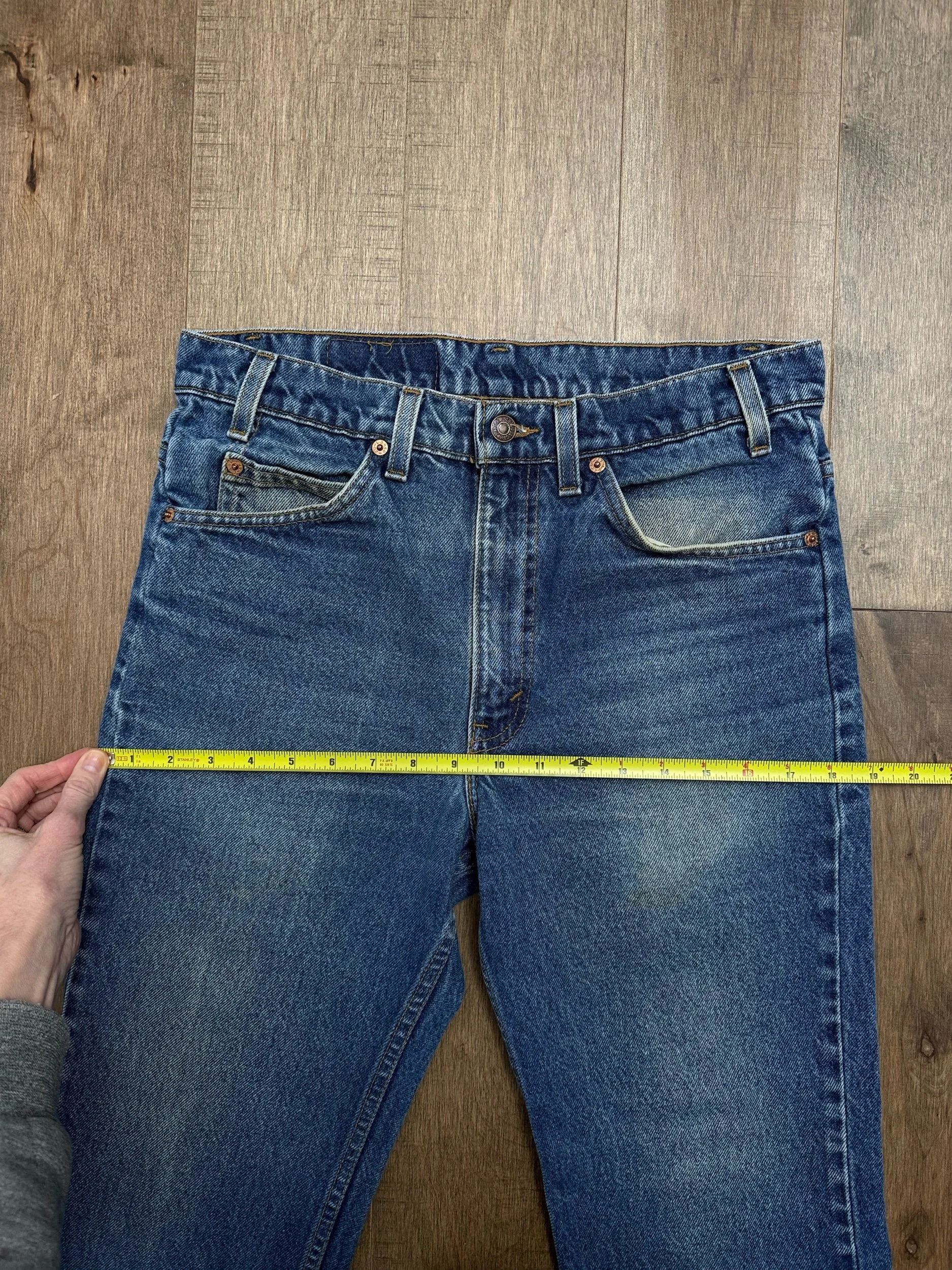 Keep in mind, vintage jeans are not new jeans. Every pair is at least 20 years old, most are older. This means they’ve been worn and likely have signs of wear - i.e. thinning areas, loose threads, signs of previous repair work, discolorations, faint (or not so faint stains), organic distressing, wear at the rivets, wear at the button holes. I do my best to describe these areas/signs of wear&tear, so please - before you buy - understand that you may receive your jeans and there will be signs of aging. Most buy vintage jeans wanting this, but if you want pristine new looking jeans, vintage likely isn’t for you. And that’s A-OK! Also note, the word “vintage” is not synonymous with super worn & faded. Vintage means over 20 years old. An item can be both vintage and still be new or like new condition.