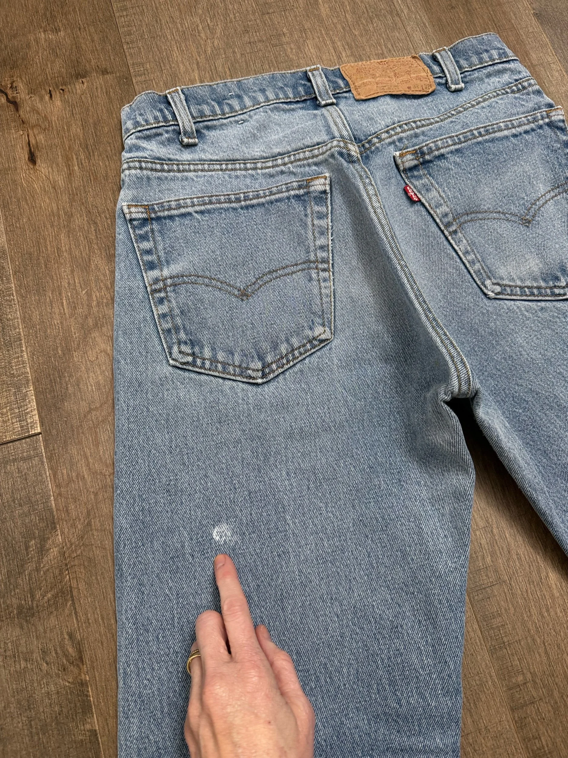 Keep in mind, vintage jeans are not new jeans. Every pair is at least 20 years old, most are older. This means they’ve been worn and likely have signs of wear - i.e. thinning areas, loose threads, signs of previous repair work, discolorations, faint (or not so faint stains), organic distressing, wear at the rivets, wear at the button holes. I do my best to describe these areas/signs of wear&tear, so please - before you buy - understand that you may receive your jeans and there will be signs of aging. Most buy vintage jeans wanting this, but if you want pristine new looking jeans, vintage likely isn’t for you. And that’s A-OK! Also note, the word “vintage” is not synonymous with super worn & faded. Vintage means over 20 years old. An item can be both vintage and still be new or like new condition.