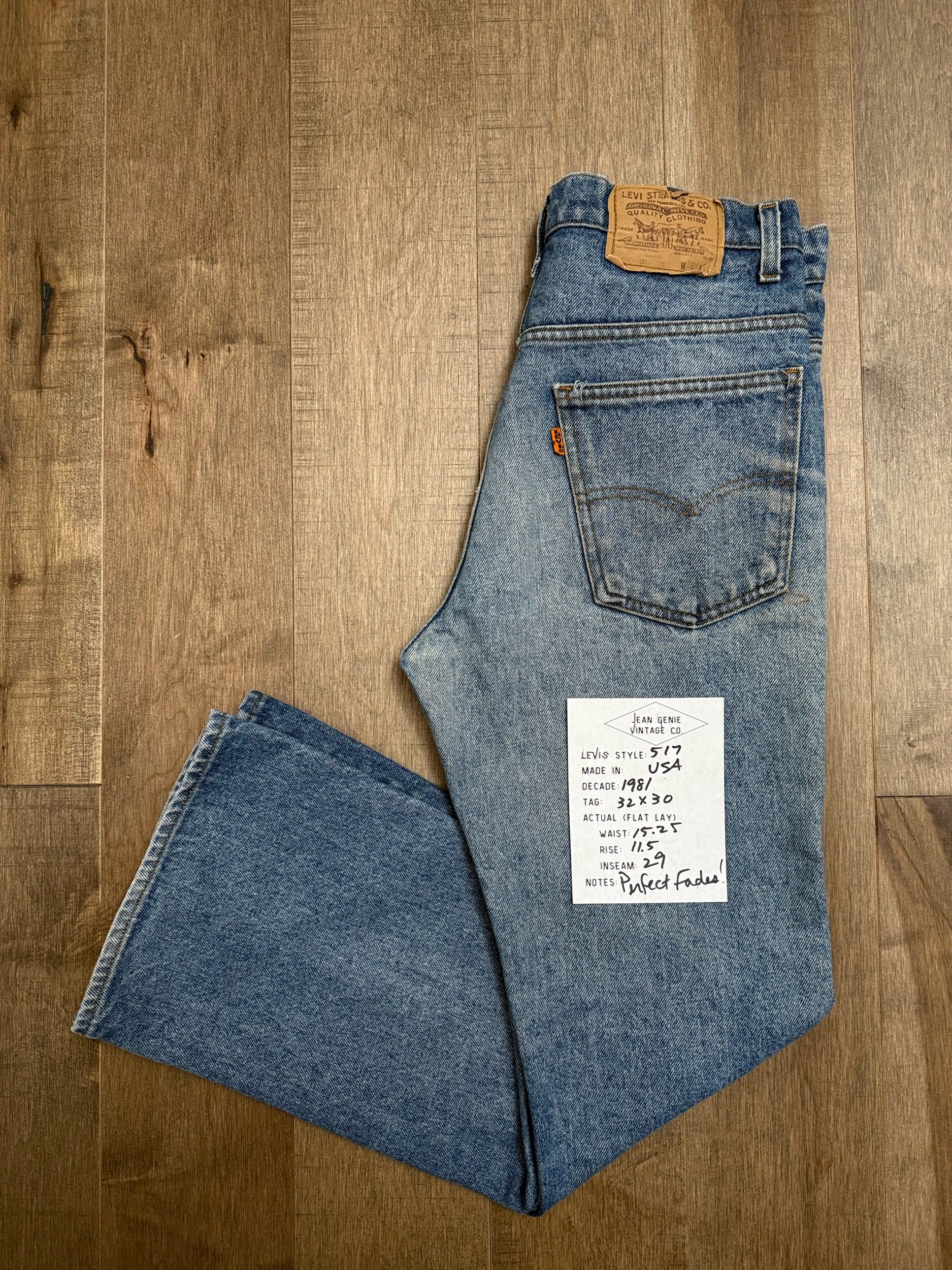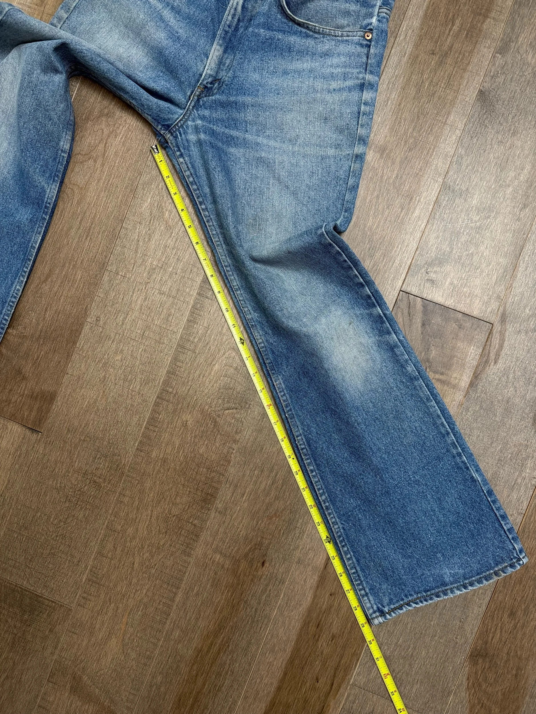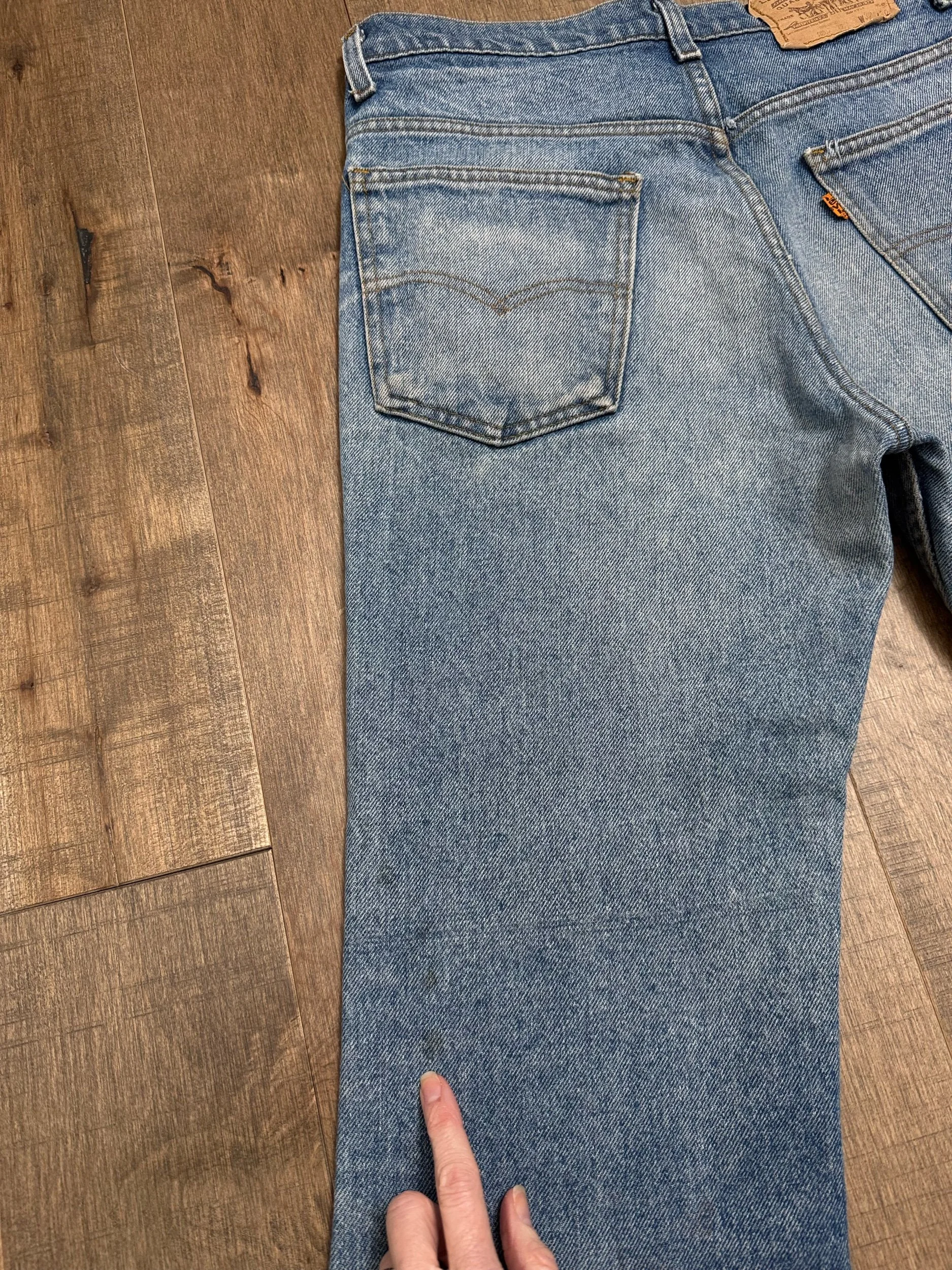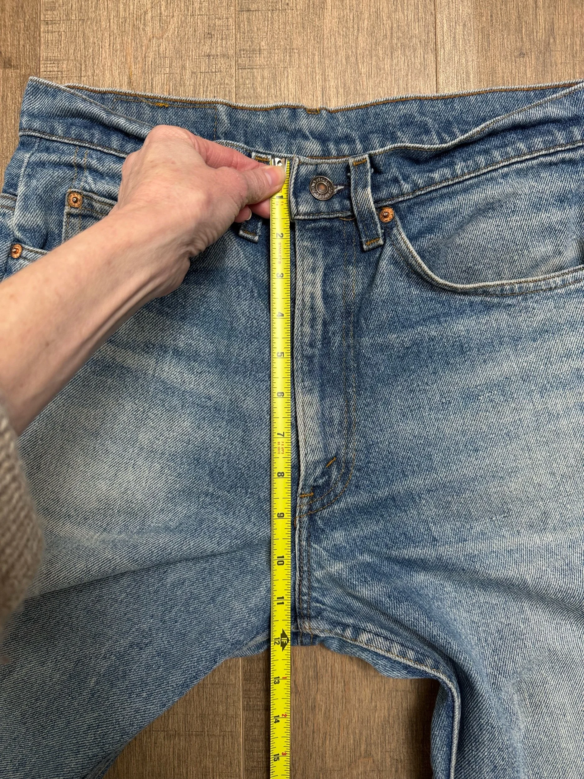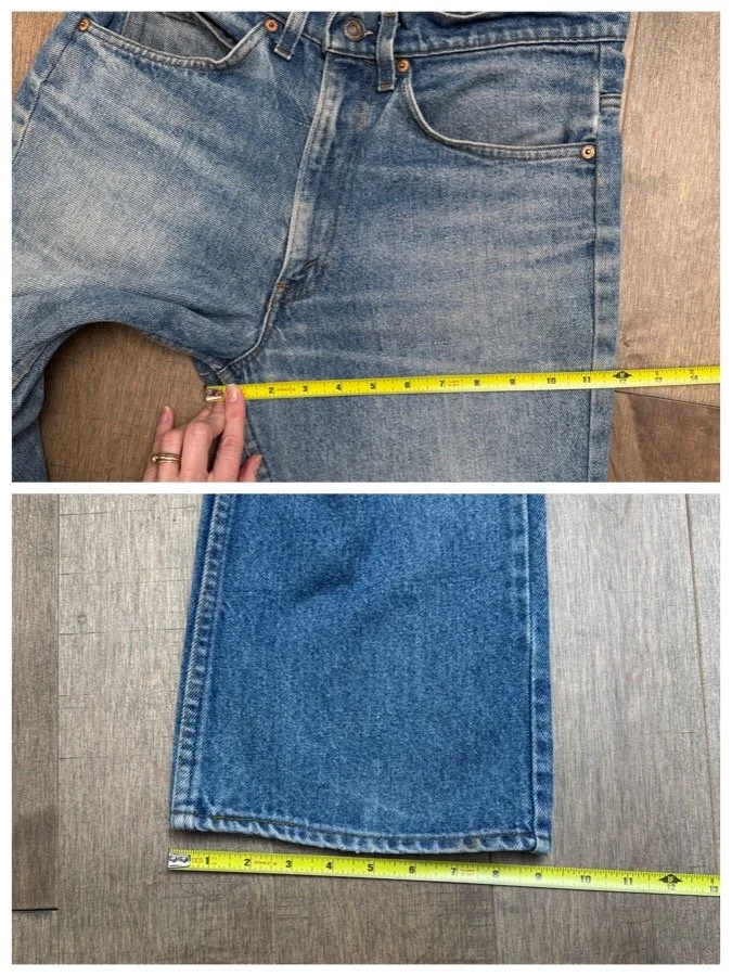 Keep in mind, vintage jeans are not new jeans. Every pair is at least 20 years old, most are older. This means they’ve been worn and likely have signs of wear - i.e. thinning areas, loose threads, signs of previous repair work, discolorations, faint (or not so faint stains), organic distressing, wear at the rivets, wear at the button holes. I do my best to describe these areas/signs of wear&tear, so please - before you buy - understand that you may receive your jeans and there will be signs of aging. Most buy vintage jeans wanting this, but if you want pristine new looking jeans, vintage likely isn’t for you. And that’s A-OK! Also note, the word “vintage” is not synonymous with super worn & faded. Vintage means over 20 years old. An item can be both vintage and still be new or like new condition.