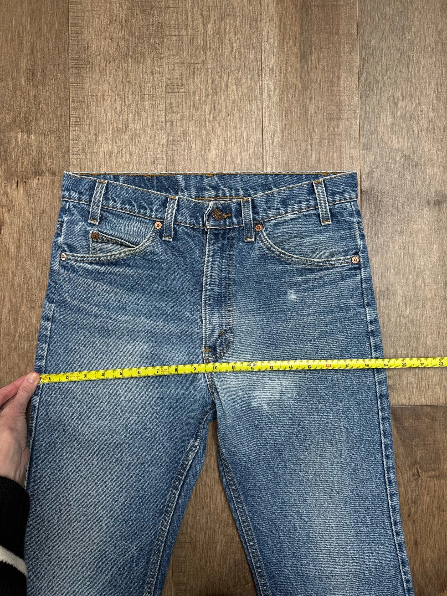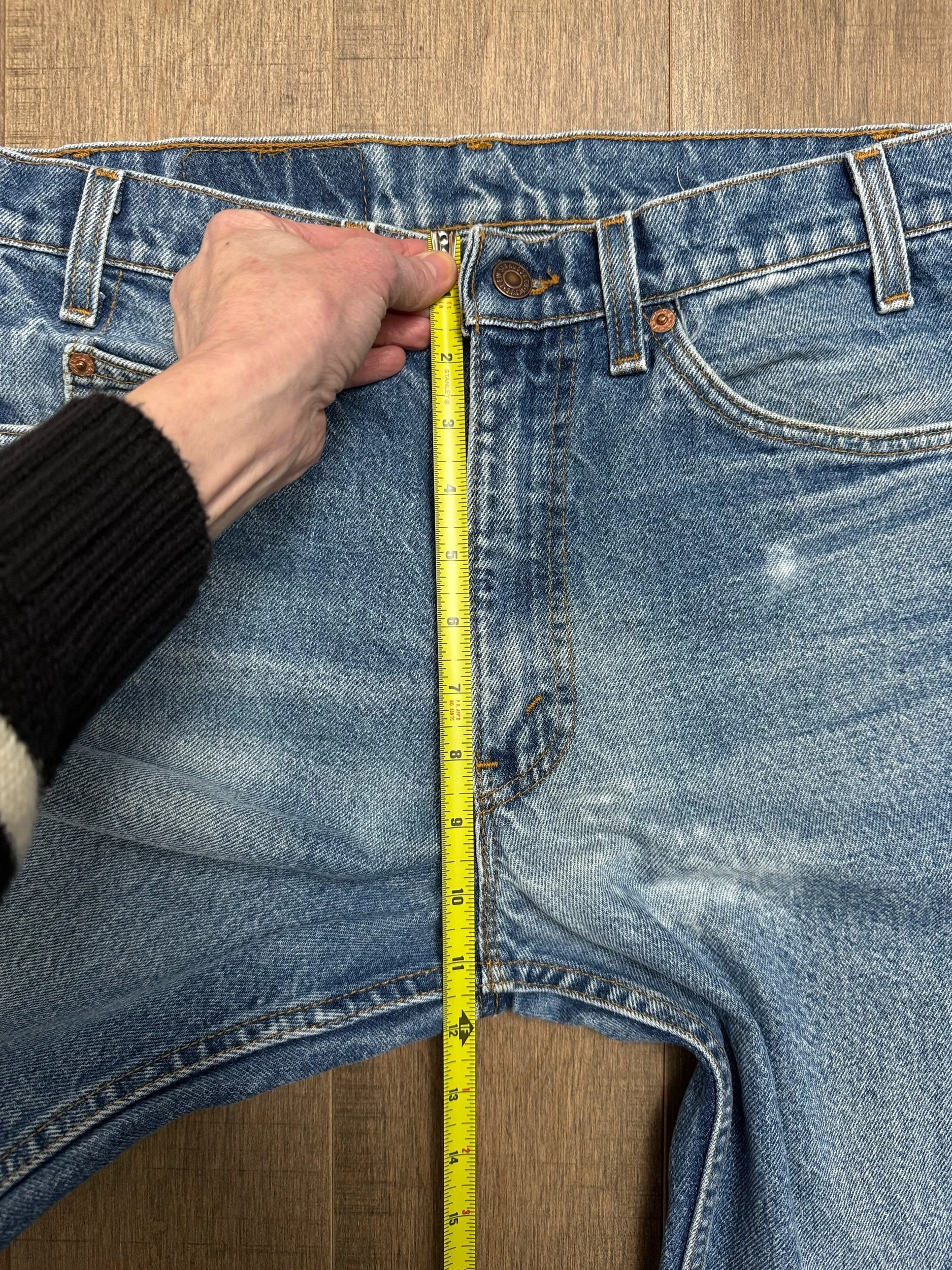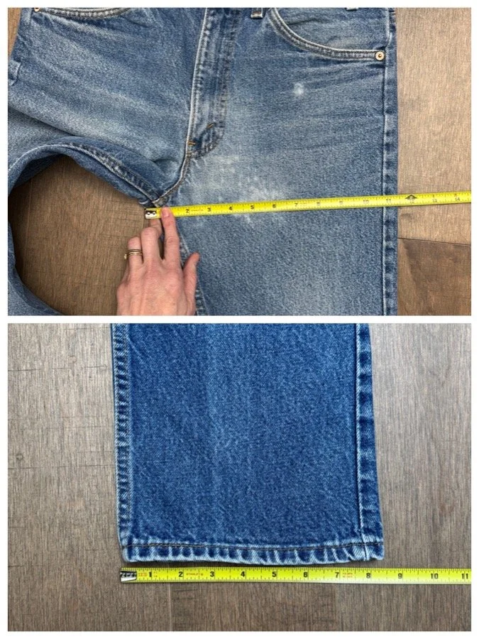 Keep in mind, vintage jeans are not new jeans. Every pair is at least 20 years old, most are older. This means they’ve been worn and likely have signs of wear - i.e. thinning areas, loose threads, signs of previous repair work, discolorations, faint (or not so faint stains), organic distressing, wear at the rivets, wear at the button holes. I do my best to describe these areas/signs of wear&tear, so please - before you buy - understand that you may receive your jeans and there will be signs of aging. Most buy vintage jeans wanting this, but if you want pristine new looking jeans, vintage likely isn’t for you. And that’s A-OK! Also note, the word “vintage” is not synonymous with super worn & faded. Vintage means over 20 years old. An item can be both vintage and still be new or like new condition.