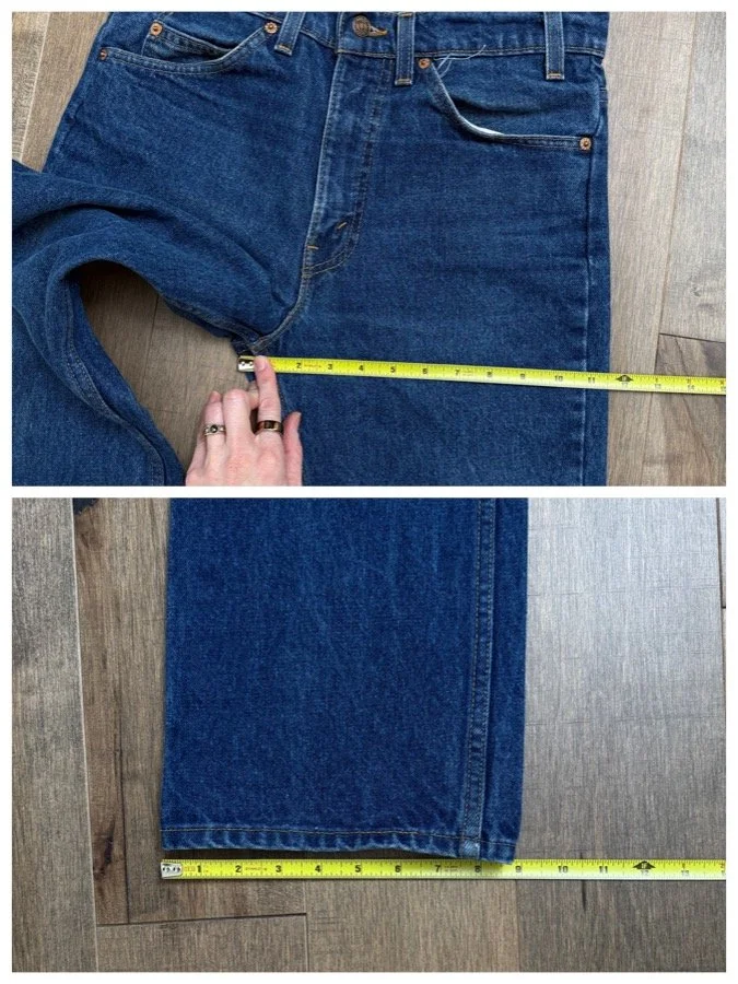Keep in mind, vintage jeans are not new jeans. Every pair is at least 20 years old, most are older. This means they’ve been worn and likely have signs of wear - i.e. thinning areas, loose threads, signs of previous repair work, discolorations, faint (or not so faint stains), organic distressing, wear at the rivets, wear at the button holes. I do my best to describe these areas/signs of wear&tear, so please - before you buy - understand that you may receive your jeans and there will be signs of aging. Most buy vintage jeans wanting this, but if you want pristine new looking jeans, vintage likely isn’t for you. And that’s A-OK! Also note, the word “vintage” is not synonymous with super worn & faded. Vintage means over 20 years old. An item can be both vintage and still be new or like new condition.