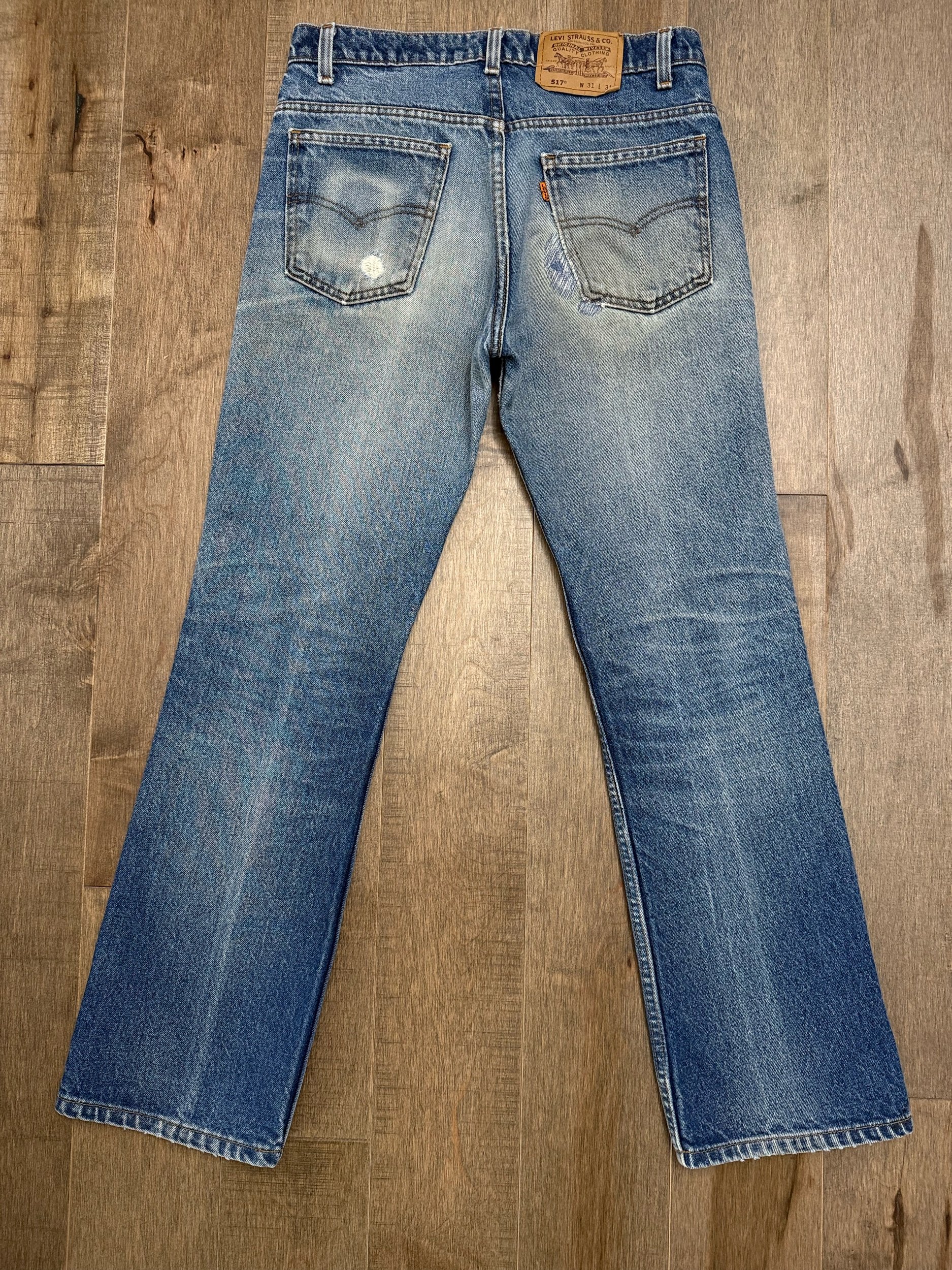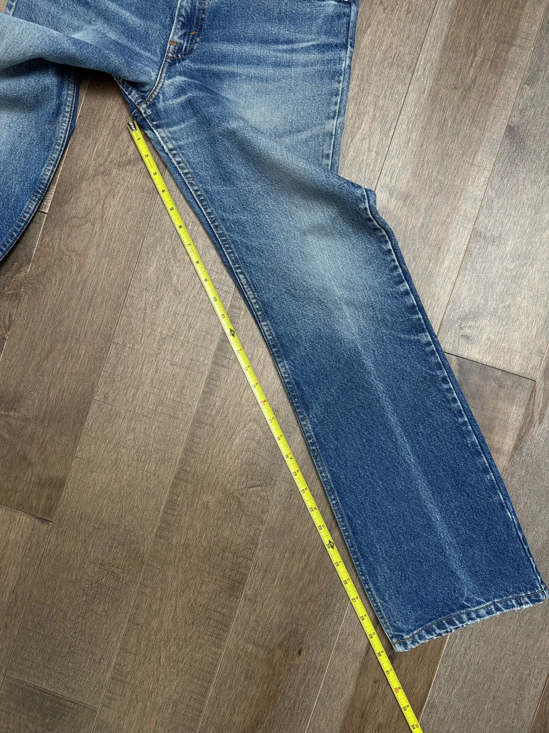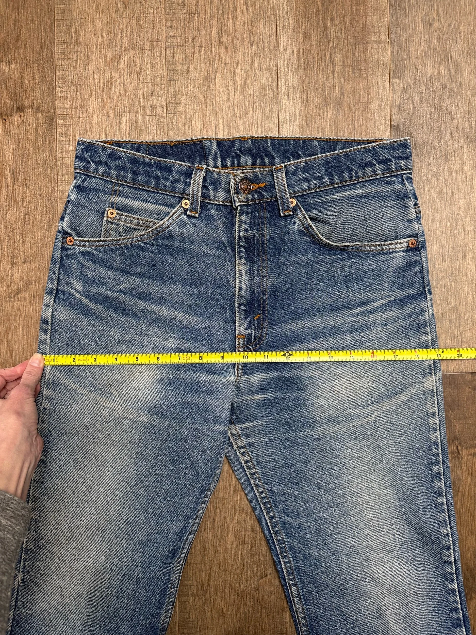 Keep in mind, vintage jeans are not new jeans. Every pair is at least 20 years old, most are older. This means they’ve been worn and likely have signs of wear - i.e. thinning areas, loose threads, signs of previous repair work, discolorations, faint (or not so faint stains), organic distressing, wear at the rivets, wear at the button holes. I do my best to describe these areas/signs of wear&tear, so please - before you buy - understand that you may receive your jeans and there will be signs of aging. Most buy vintage jeans wanting this, but if you want pristine new looking jeans, vintage likely isn’t for you. And that’s A-OK! Also note, the word “vintage” is not synonymous with super worn & faded. Vintage means over 20 years old. An item can be both vintage and still be new or like new condition.