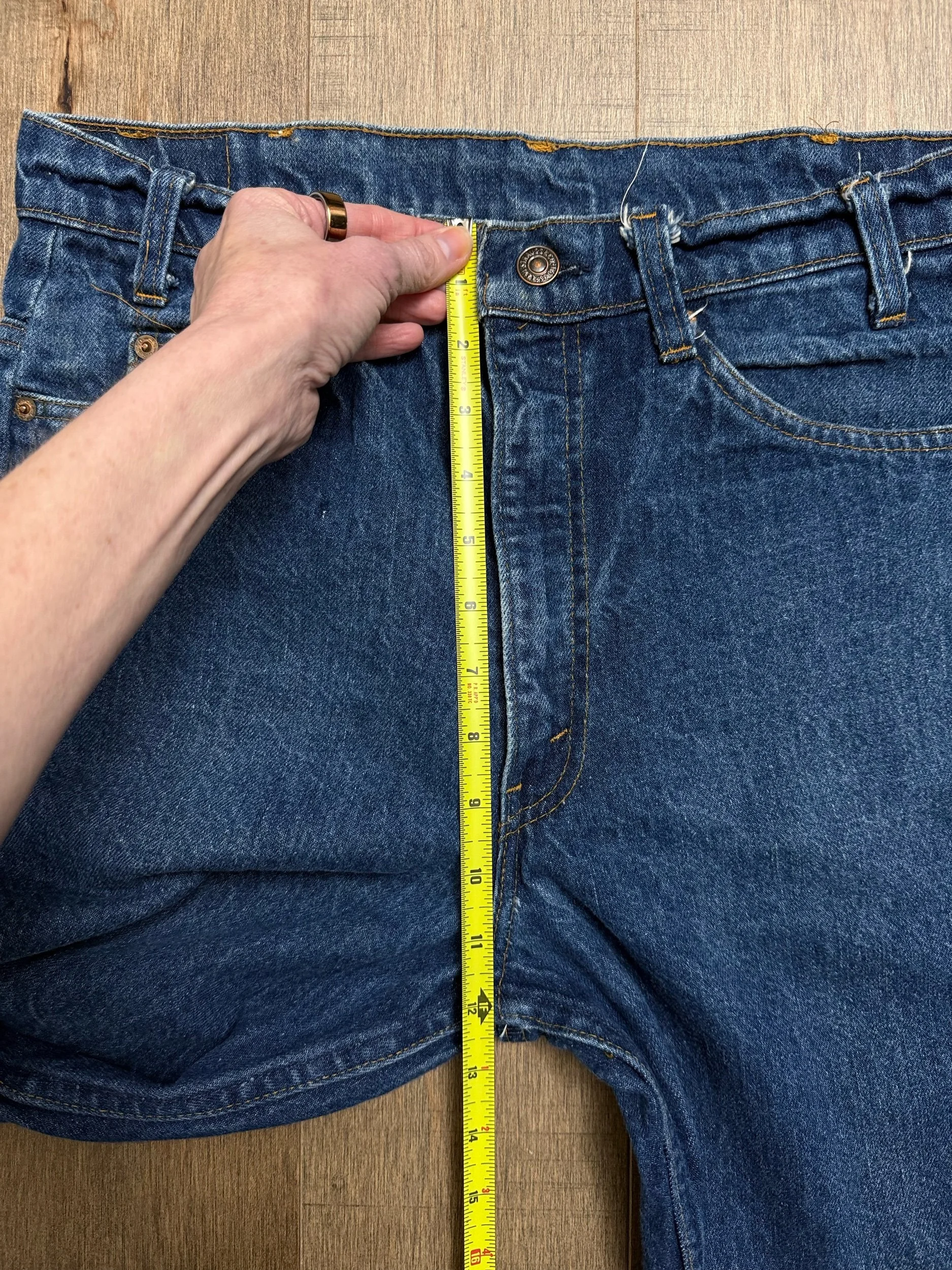 Keep in mind, vintage jeans are not new jeans. Every pair is at least 20 years old, most are older. This means they’ve been worn and likely have signs of wear - i.e. thinning areas, loose threads, signs of previous repair work, discolorations, faint (or not so faint stains), organic distressing, wear at the rivets, wear at the button holes. I do my best to describe these areas/signs of wear&tear, so please - before you buy - understand that you may receive your jeans and there will be signs of aging. Most buy vintage jeans wanting this, but if you want pristine new looking jeans, vintage likely isn’t for you. And that’s A-OK! Also note, the word “vintage” is not synonymous with super worn & faded. Vintage means over 20 years old. An item can be both vintage and still be new or like new condition.