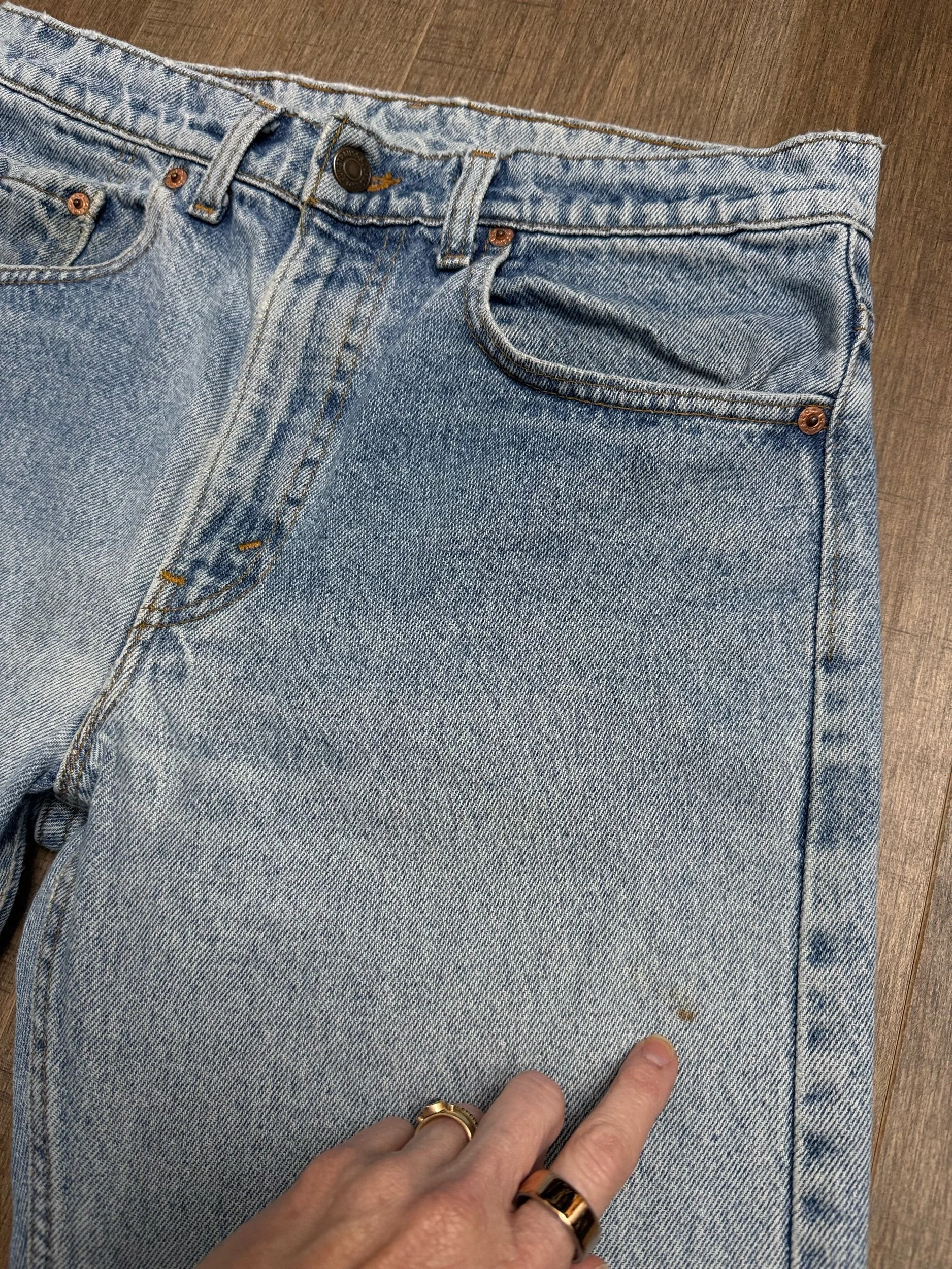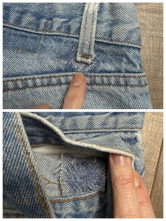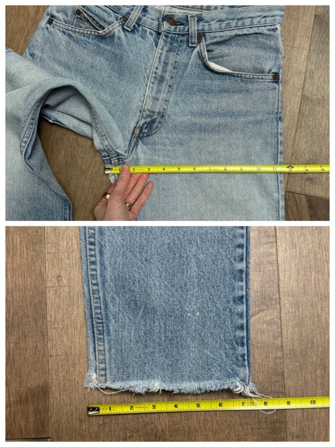 Keep in mind, vintage jeans are not new jeans. Every pair is at least 20 years old, most are older. This means they’ve been worn and likely have signs of wear - i.e. thinning areas, loose threads, signs of previous repair work, discolorations, faint (or not so faint stains), organic distressing, wear at the rivets, wear at the button holes. I do my best to describe these areas/signs of wear&tear, so please - before you buy - understand that you may receive your jeans and there will be signs of aging. Most buy vintage jeans wanting this, but if you want pristine new looking jeans, vintage likely isn’t for you. And that’s A-OK! Also note, the word “vintage” is not synonymous with super worn & faded. Vintage means over 20 years old. An item can be both vintage and still be new or like new condition.