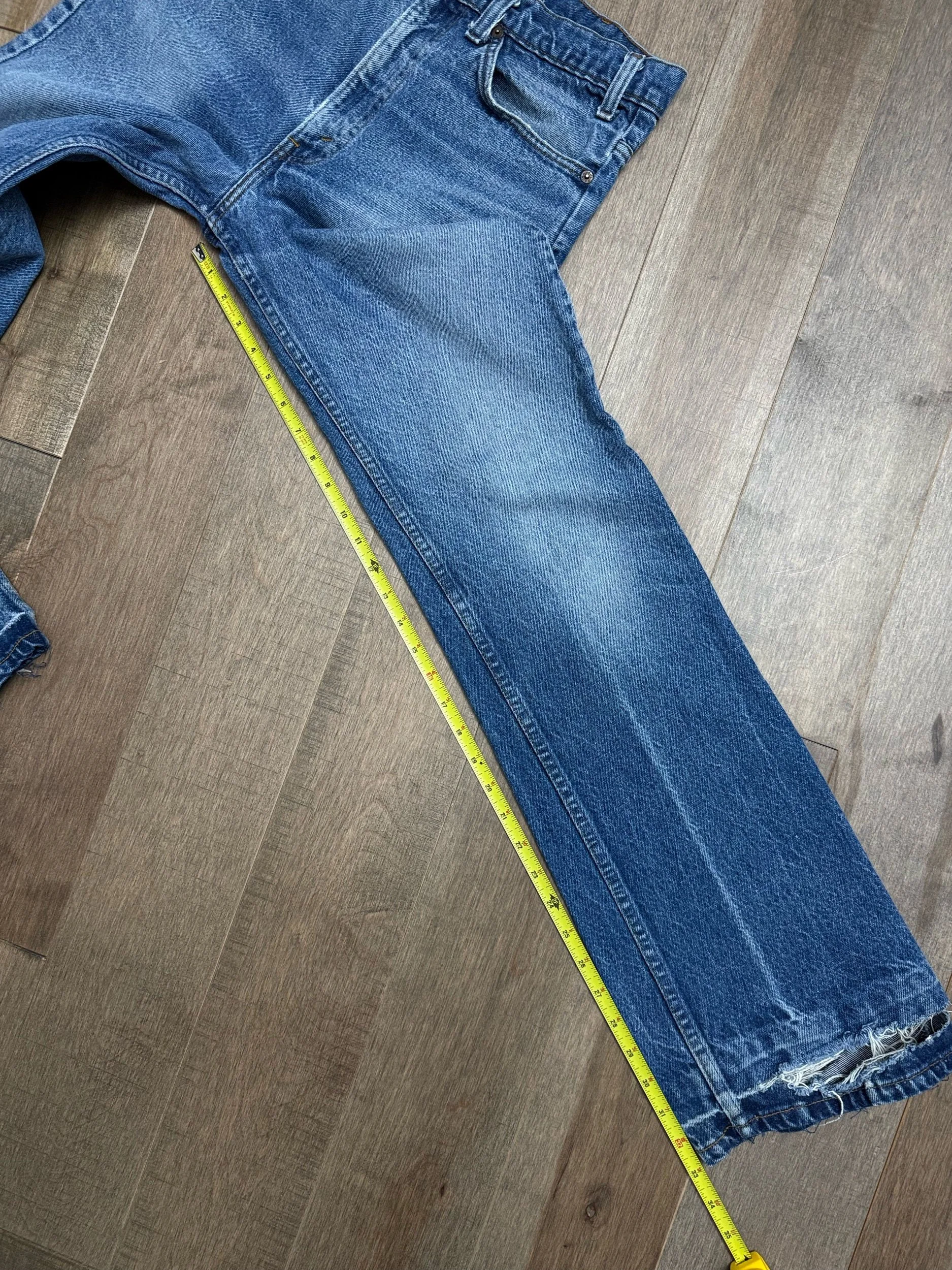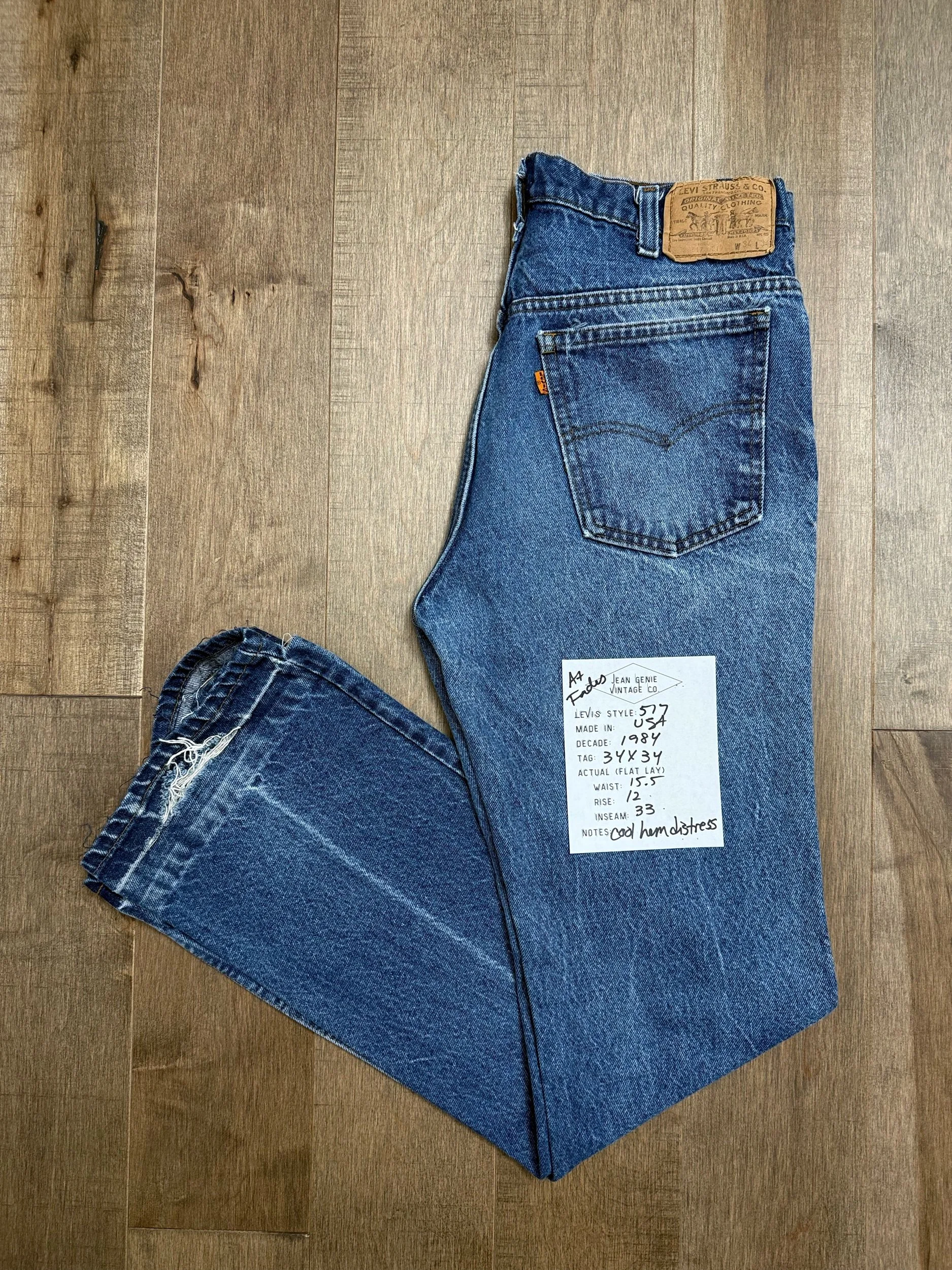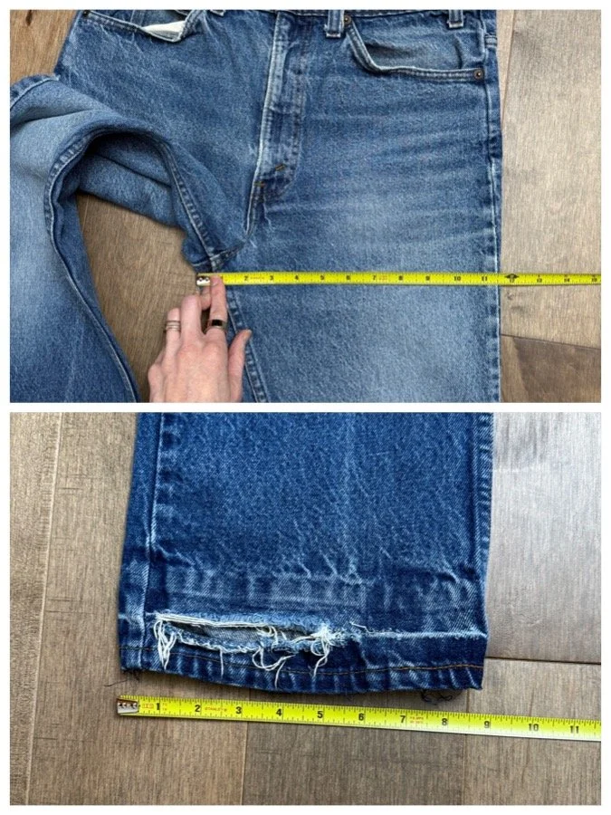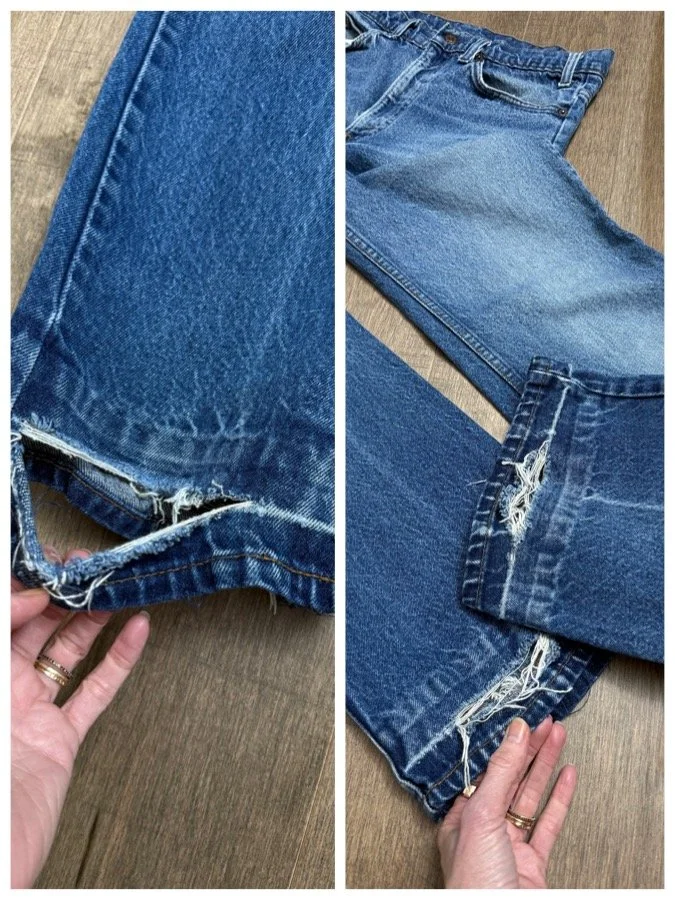 Keep in mind, vintage jeans are not new jeans. Every pair is at least 20 years old, most are older. This means they’ve been worn and likely have signs of wear - i.e. thinning areas, loose threads, signs of previous repair work, discolorations, faint (or not so faint stains), organic distressing, wear at the rivets, wear at the button holes. I do my best to describe these areas/signs of wear&tear, so please - before you buy - understand that you may receive your jeans and there will be signs of aging. Most buy vintage jeans wanting this, but if you want pristine new looking jeans, vintage likely isn’t for you. And that’s A-OK! Also note, the word “vintage” is not synonymous with super worn & faded. Vintage means over 20 years old. An item can be both vintage and still be new or like new condition.