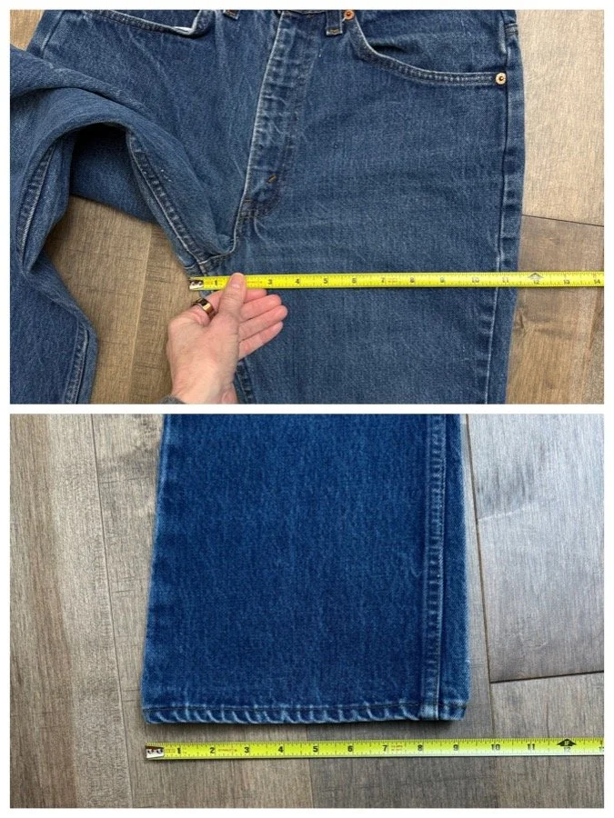 Keep in mind, vintage jeans are not new jeans. Every pair is at least 20 years old, most are older. This means they’ve been worn and likely have signs of wear - i.e. thinning areas, loose threads, signs of previous repair work, discolorations, faint (or not so faint stains), organic distressing, wear at the rivets, wear at the button holes. I do my best to describe these areas/signs of wear&tear, so please - before you buy - understand that you may receive your jeans and there will be signs of aging. Most buy vintage jeans wanting this, but if you want pristine new looking jeans, vintage likely isn’t for you. And that’s A-OK! Also note, the word “vintage” is not synonymous with super worn & faded. Vintage means over 20 years old. An item can be both vintage and still be new or like new condition.