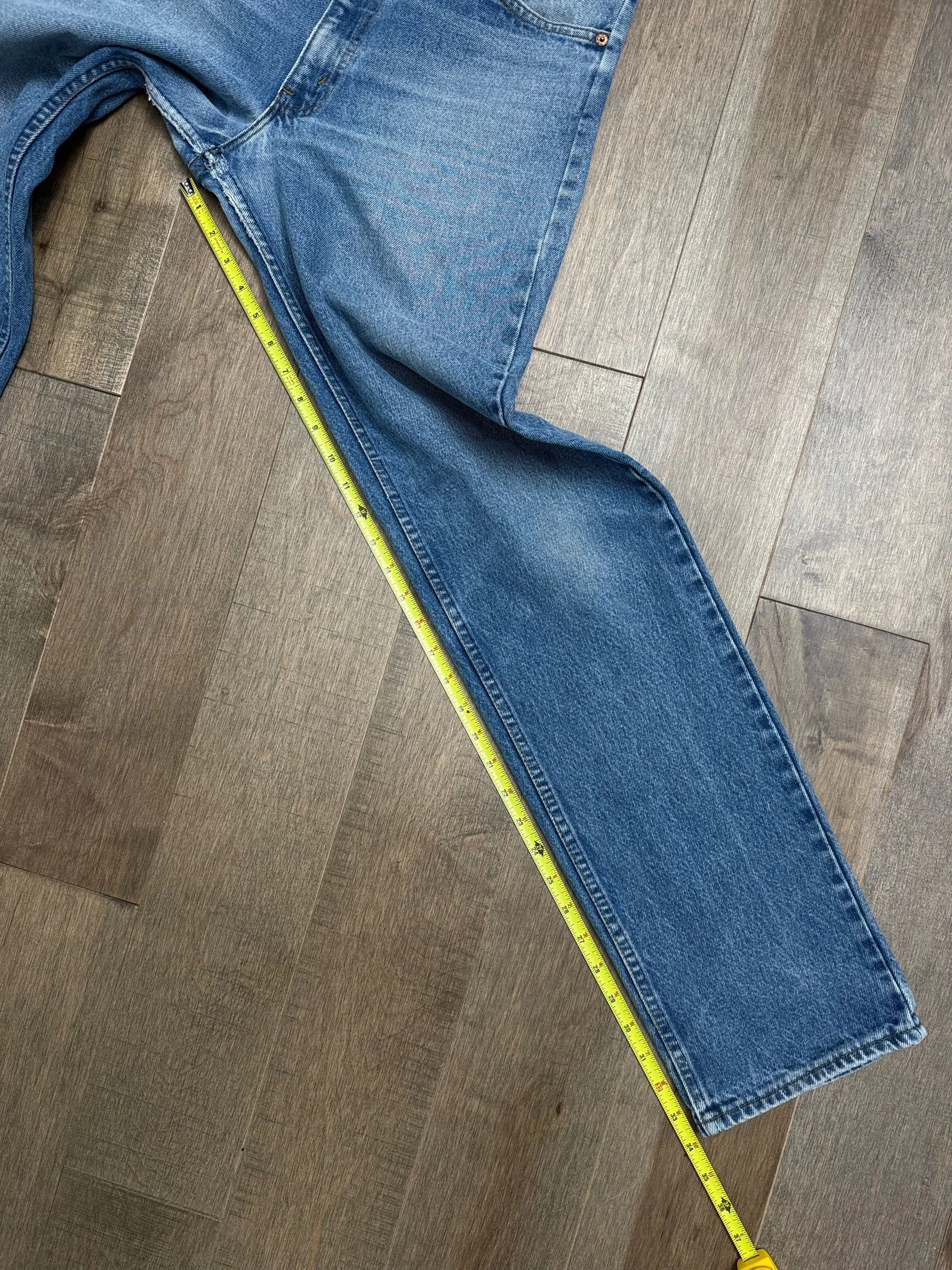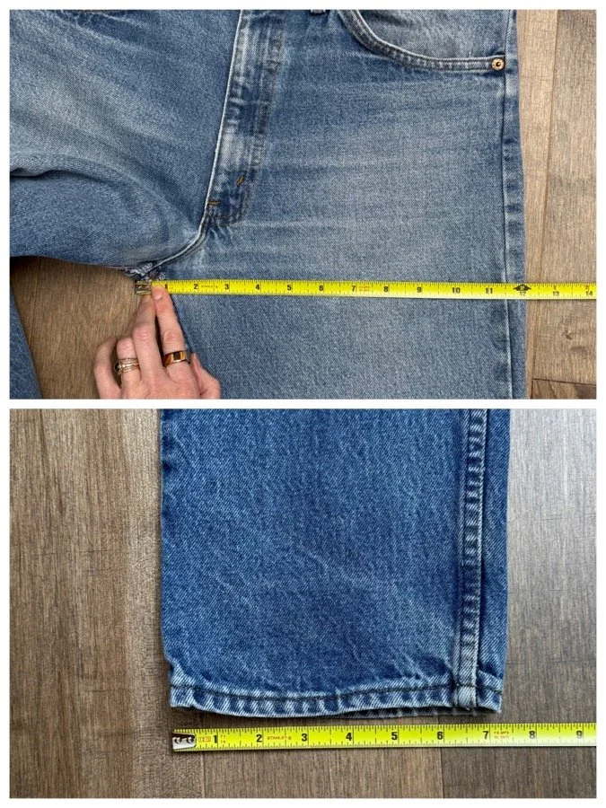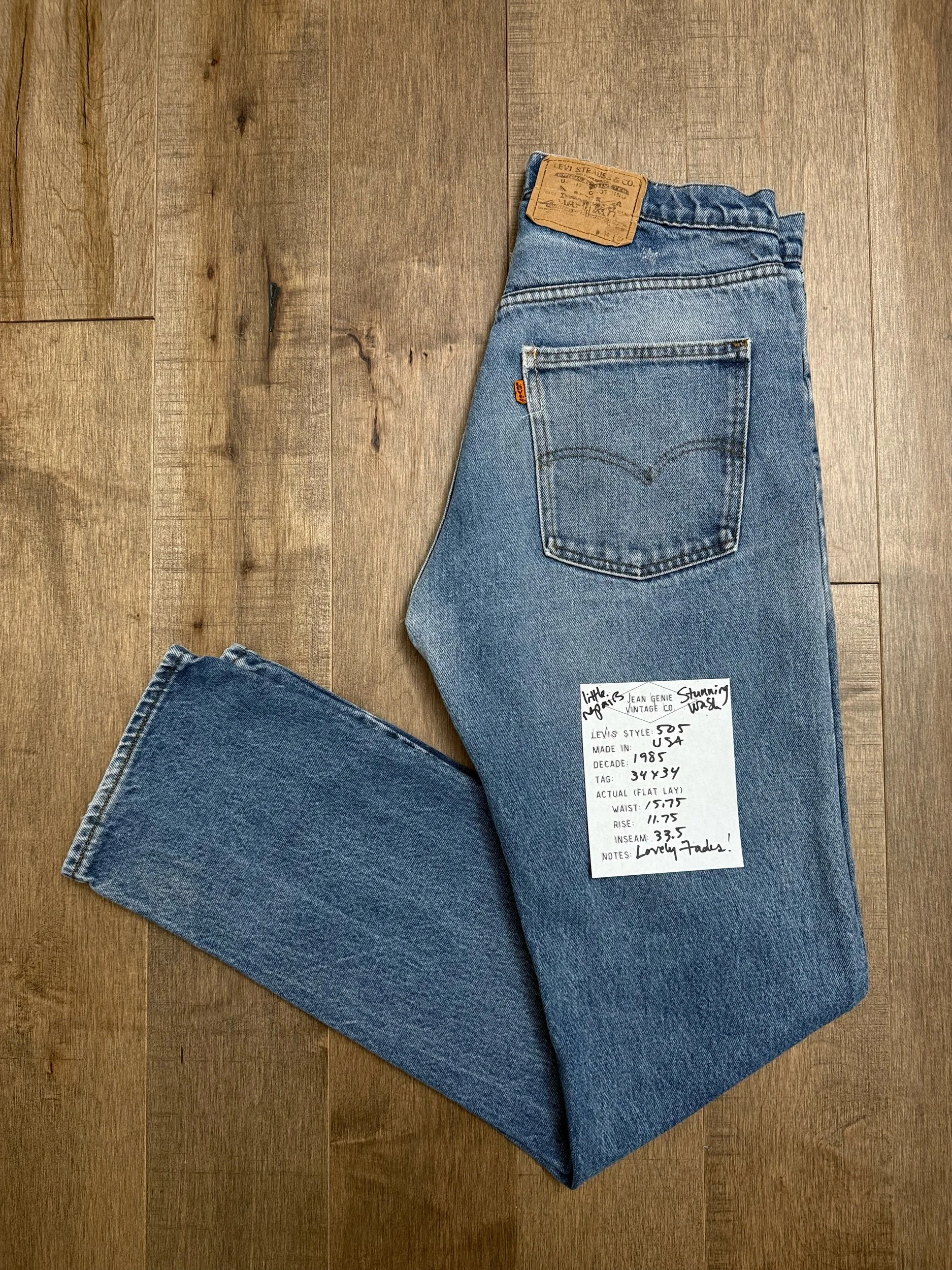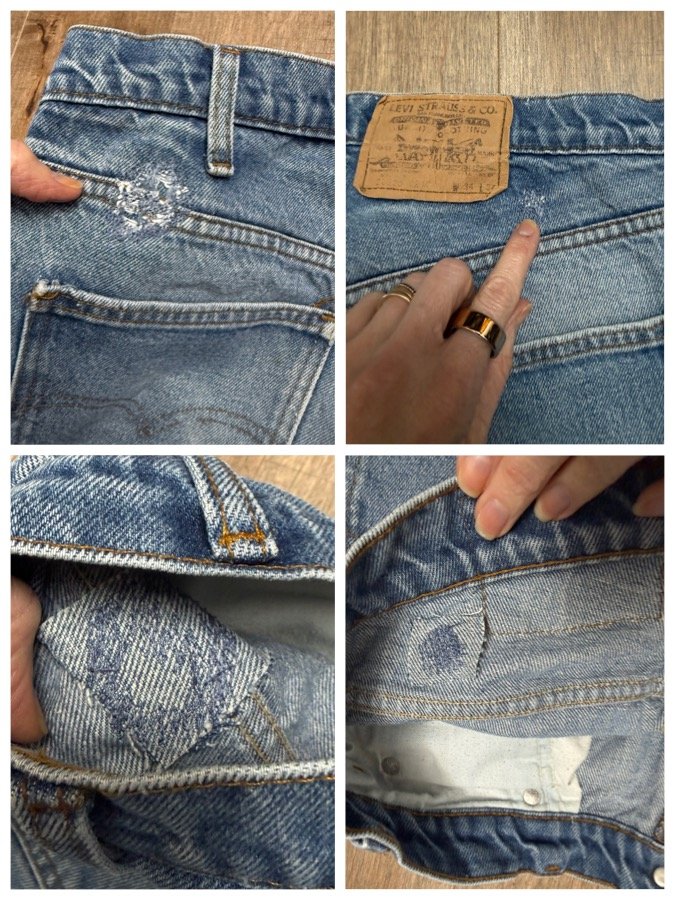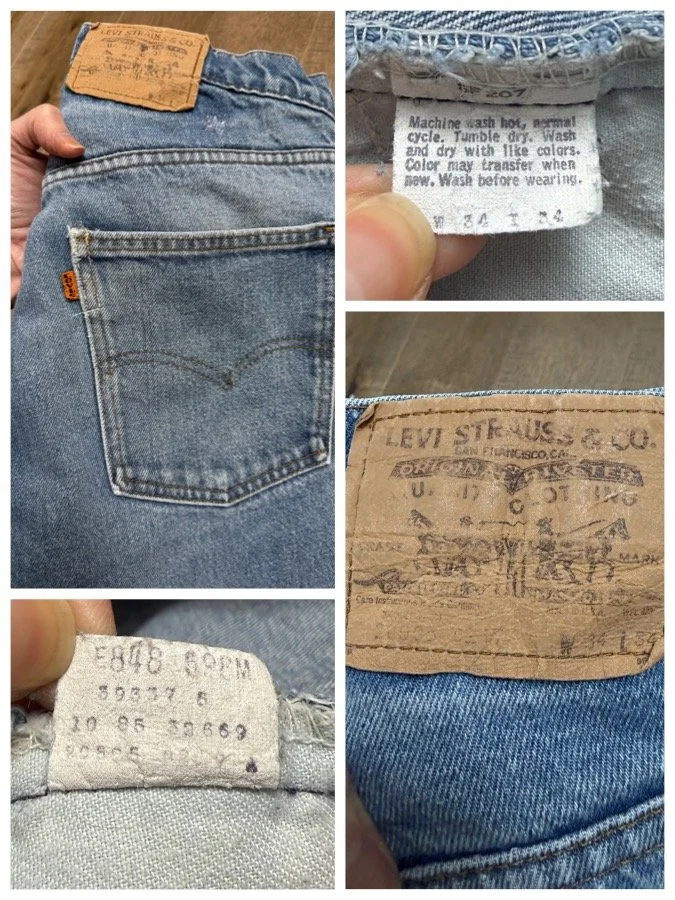 Keep in mind, vintage jeans are not new jeans. Every pair is at least 20 years old, most are older. This means they’ve been worn and likely have signs of wear - i.e. thinning areas, loose threads, signs of previous repair work, discolorations, faint (or not so faint stains), organic distressing, wear at the rivets, wear at the button holes. I do my best to describe these areas/signs of wear&tear, so please - before you buy - understand that you may receive your jeans and there will be signs of aging. Most buy vintage jeans wanting this, but if you want pristine new looking jeans, vintage likely isn’t for you. And that’s A-OK! Also note, the word “vintage” is not synonymous with super worn & faded. Vintage means over 20 years old. An item can be both vintage and still be new or like new condition.
