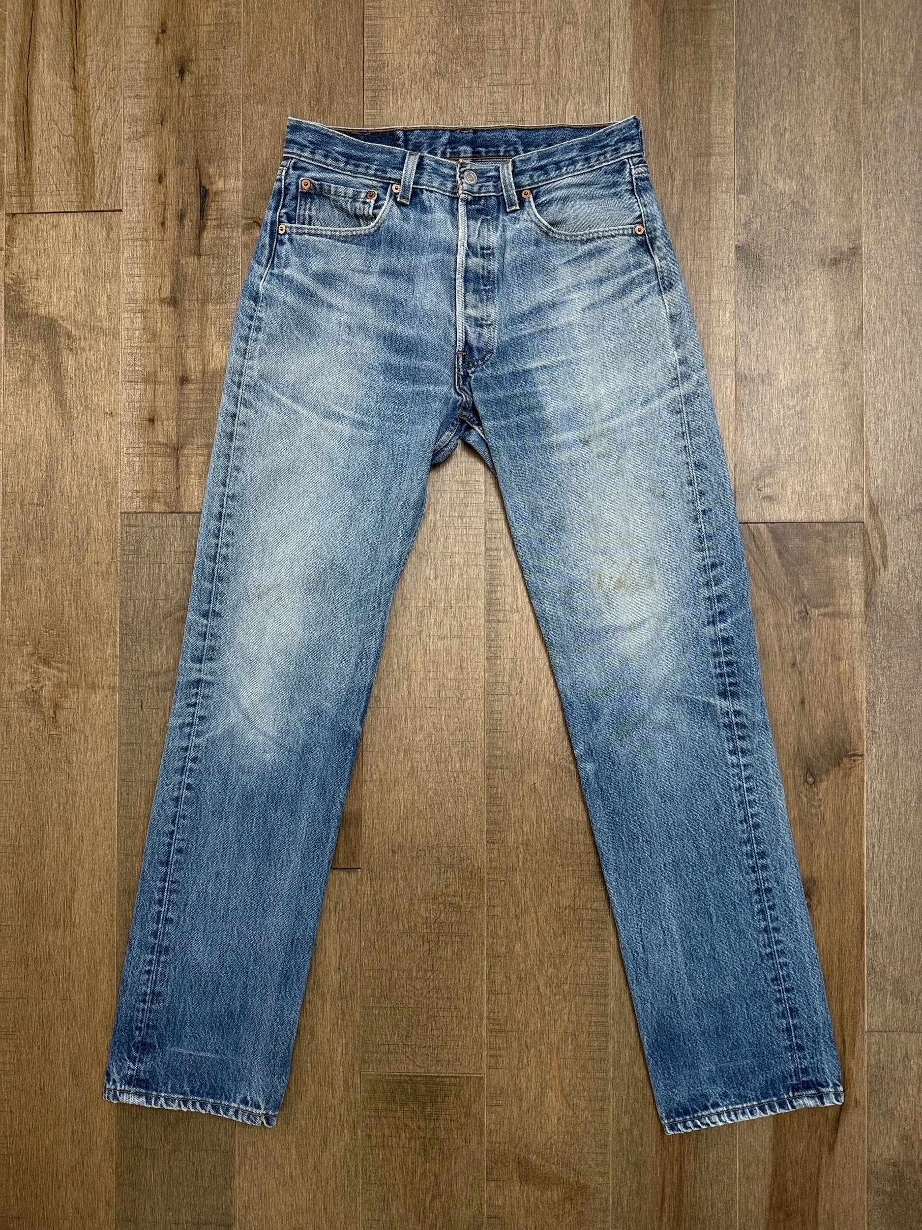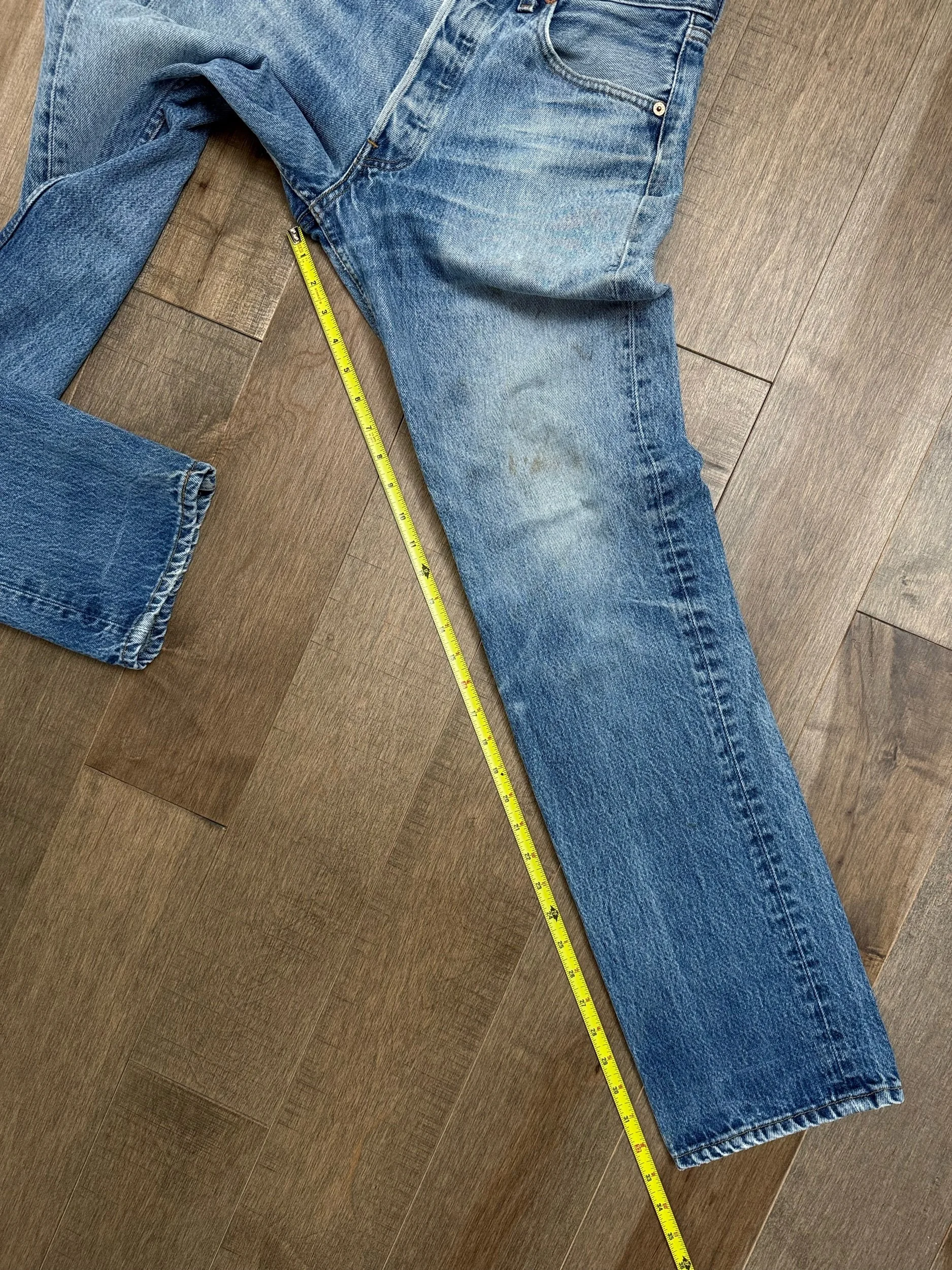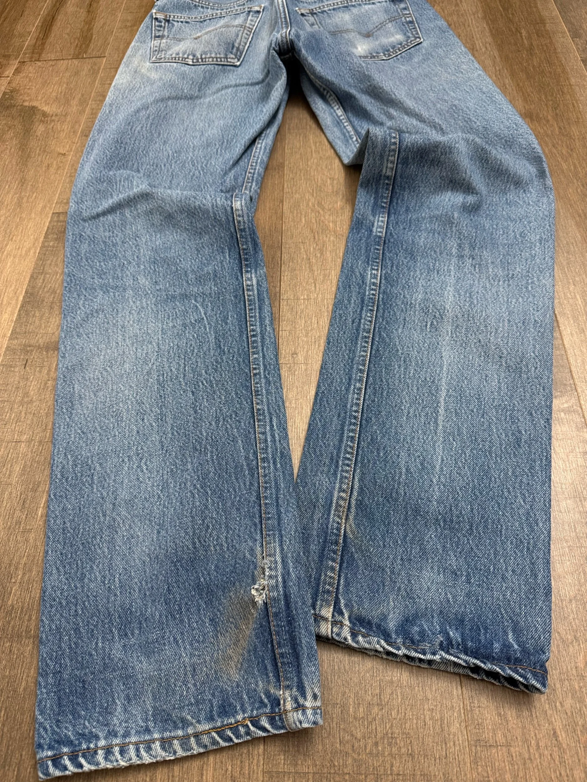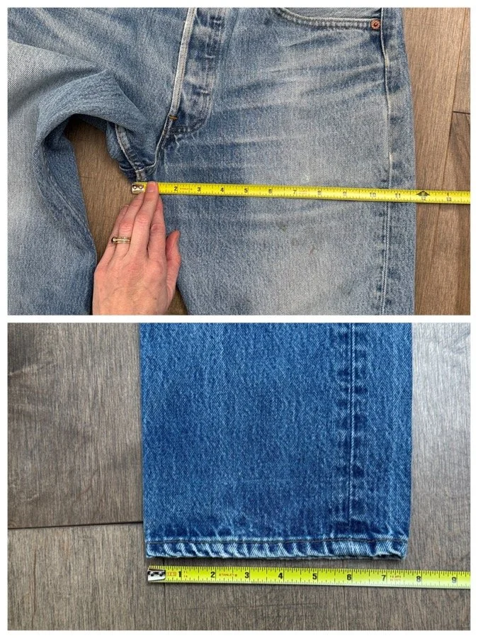 Sold as is. Keep in mind, vintage jeans are not new jeans. Every pair is at least 20 years old, most are older. This means they’ve been worn and likely have signs of wear - i.e. thinning areas, loose threads, signs of previous repair work, discolorations, faint (or not so faint stains), organic distressing, wear at the rivets, wear at the button holes. I do my best to describe these areas/signs of wear&tear, so please - before you buy - understand that you may receive your jeans and there will be signs of aging. Most buy vintage jeans wanting this, but if you want pristine new looking jeans, vintage likely isn’t for you. And that’s A-OK! Also note, the word “vintage” is not synonymous with super worn & faded. Vintage means over 20 years old. An item can be both vintage and still be new or like new condition.