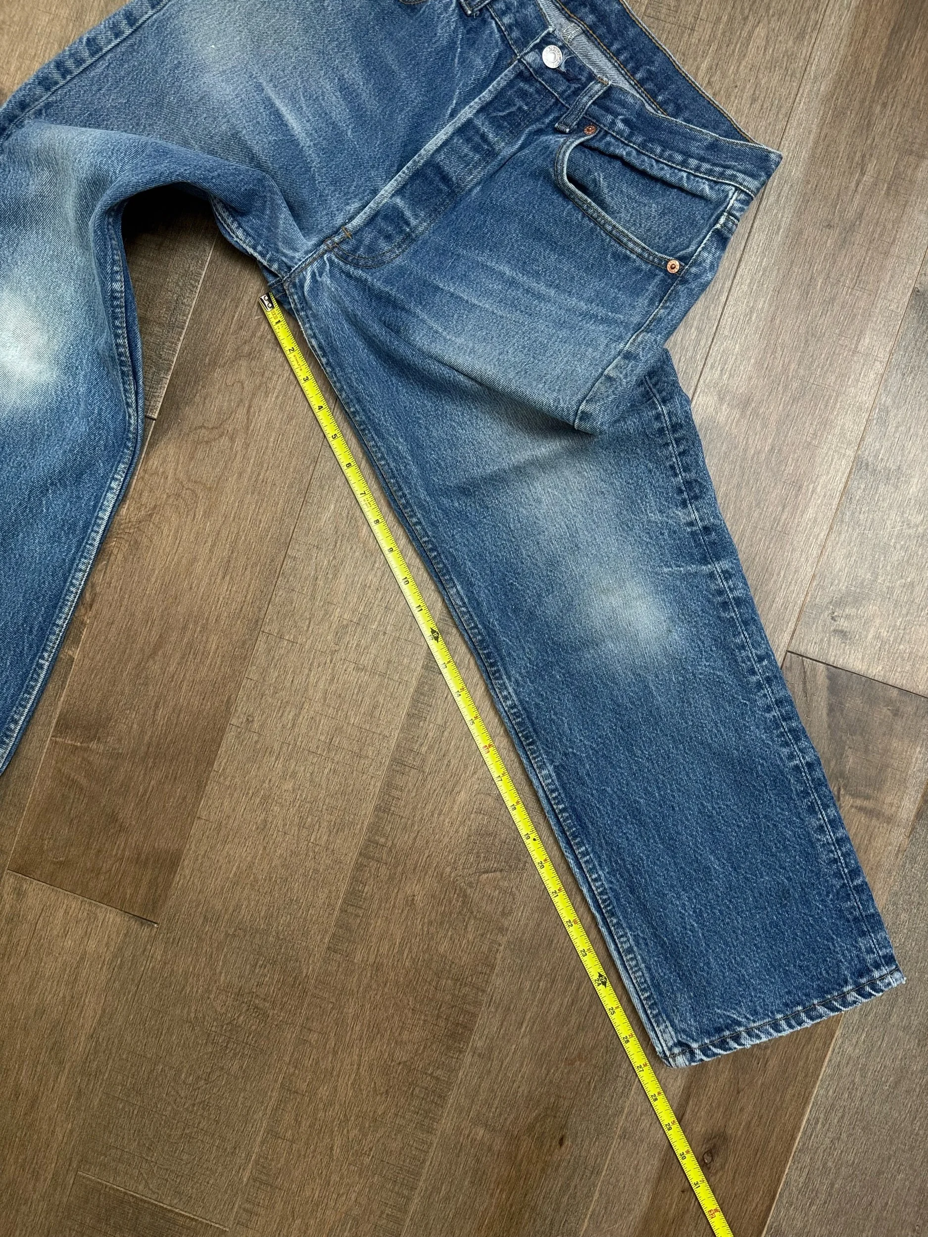 Sold as is. Keep in mind, vintage jeans are not new jeans. Every pair is at least 20 years old, most are older. This means they’ve been worn and likely have signs of wear - i.e. thinning areas, loose threads, signs of previous repair work, discolorations, faint (or not so faint stains), organic distressing, wear at the rivets, wear at the button holes. I do my best to describe these areas/signs of wear&tear, so please - before you buy - understand that you may receive your jeans and there will be signs of aging. Most buy vintage jeans wanting this, but if you want pristine new looking jeans, vintage likely isn’t for you. And that’s A-OK! Also note, the word “vintage” is not synonymous with super worn & faded. Vintage means over 20 years old. An item can be both vintage and still be new or like new condition.
