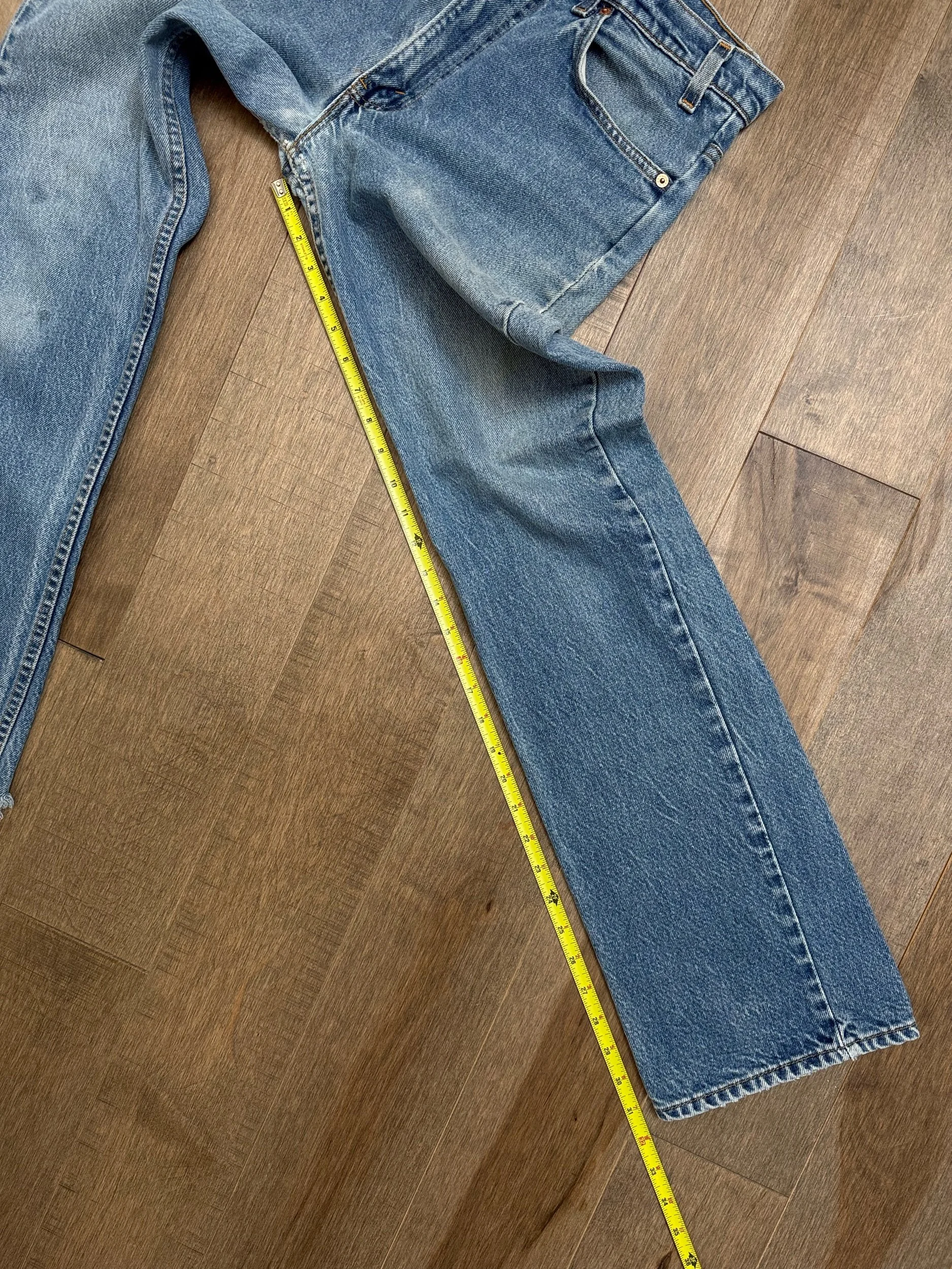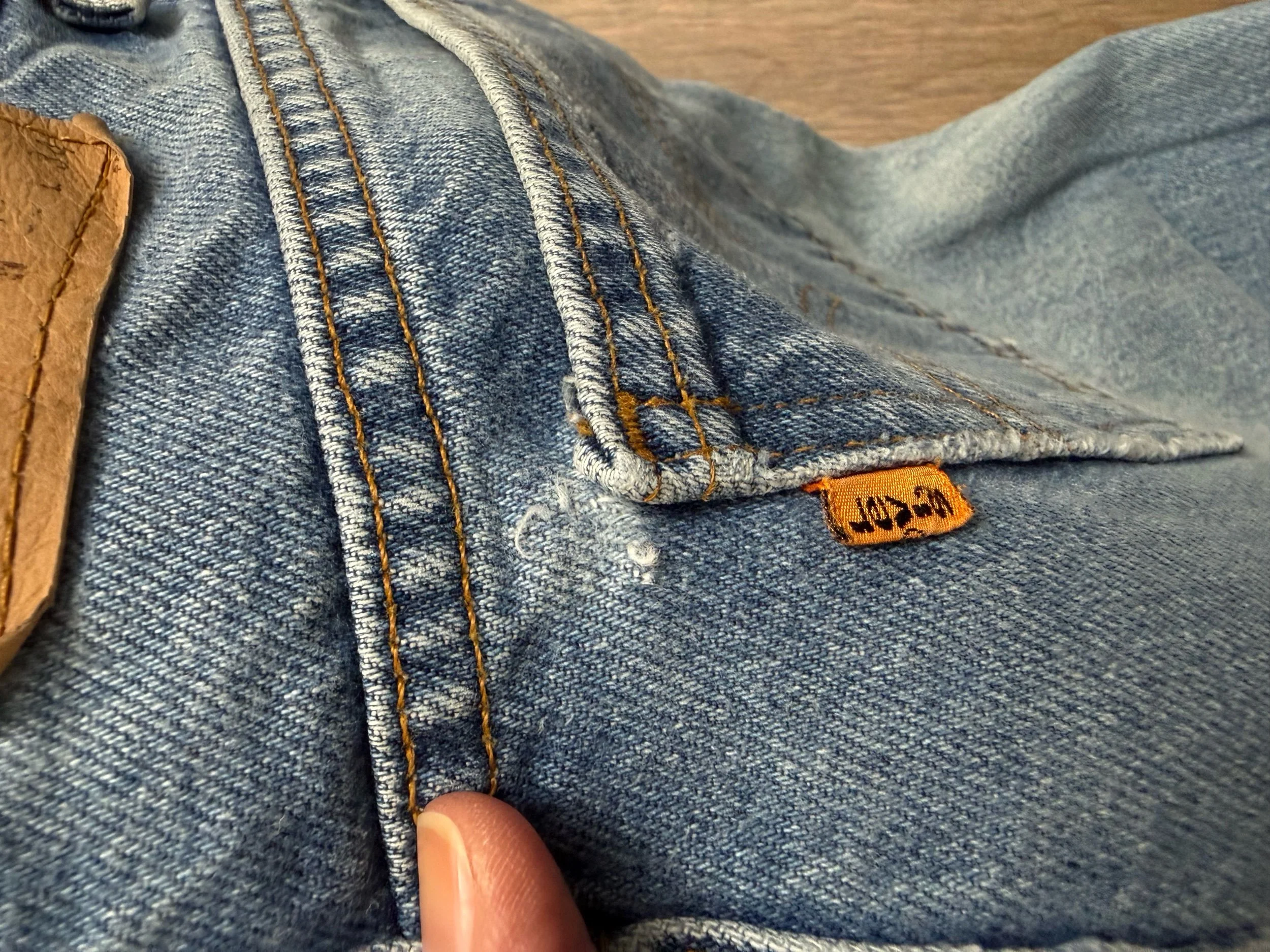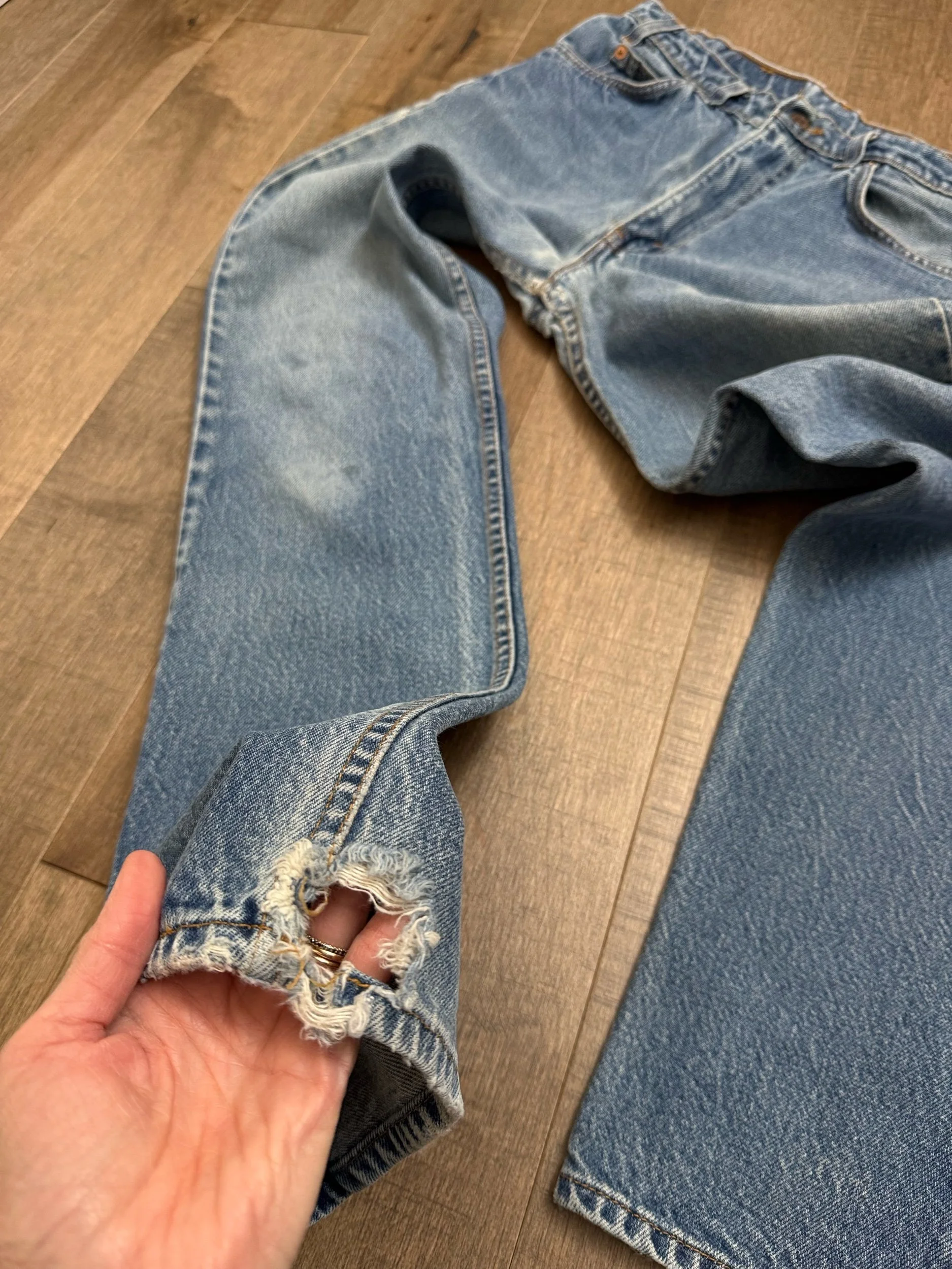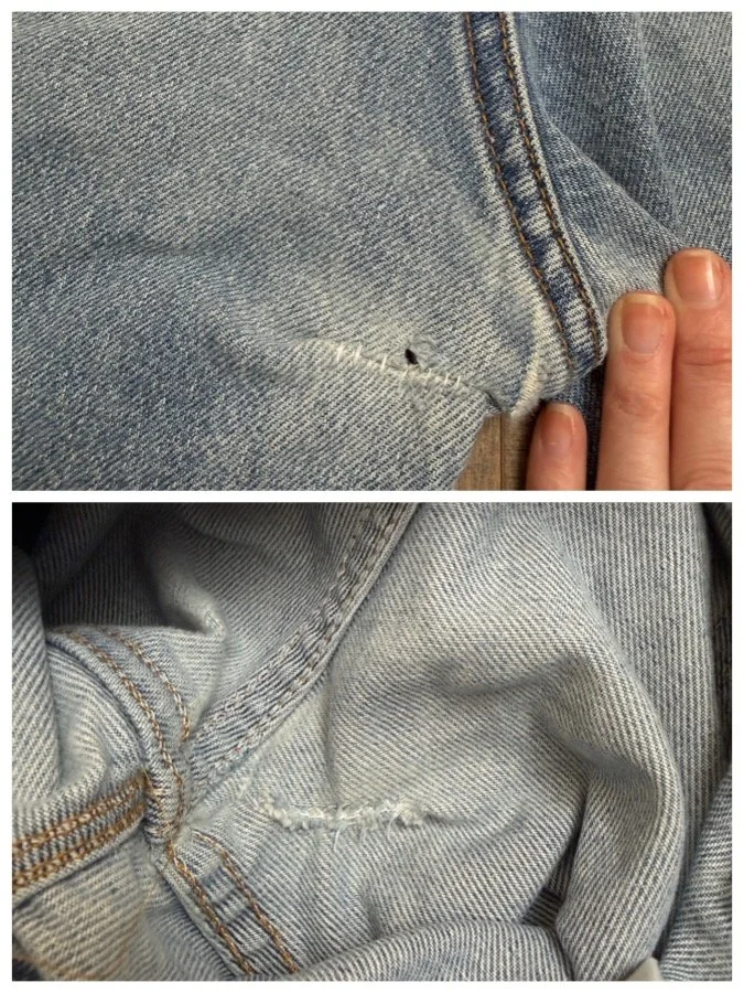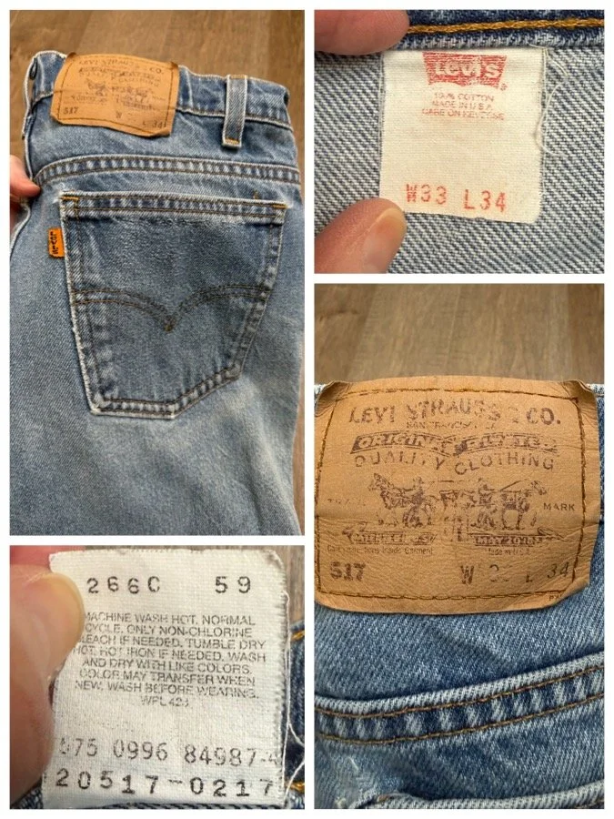 Keep in mind, vintage jeans are not new jeans. Every pair is at least 20 years old, most are older. This means they’ve been worn and likely have signs of wear - i.e. thinning areas, loose threads, signs of previous repair work, discolorations, faint (or not so faint stains), organic distressing, wear at the rivets, wear at the button holes. I do my best to describe these areas/signs of wear&tear, so please - before you buy - understand that you may receive your jeans and there will be signs of aging. Most buy vintage jeans wanting this, but if you want pristine new looking jeans, vintage likely isn’t for you. And that’s A-OK! Also note, the word “vintage” is not synonymous with super worn & faded. Vintage means over 20 years old. An item can be both vintage and still be new or like new condition.