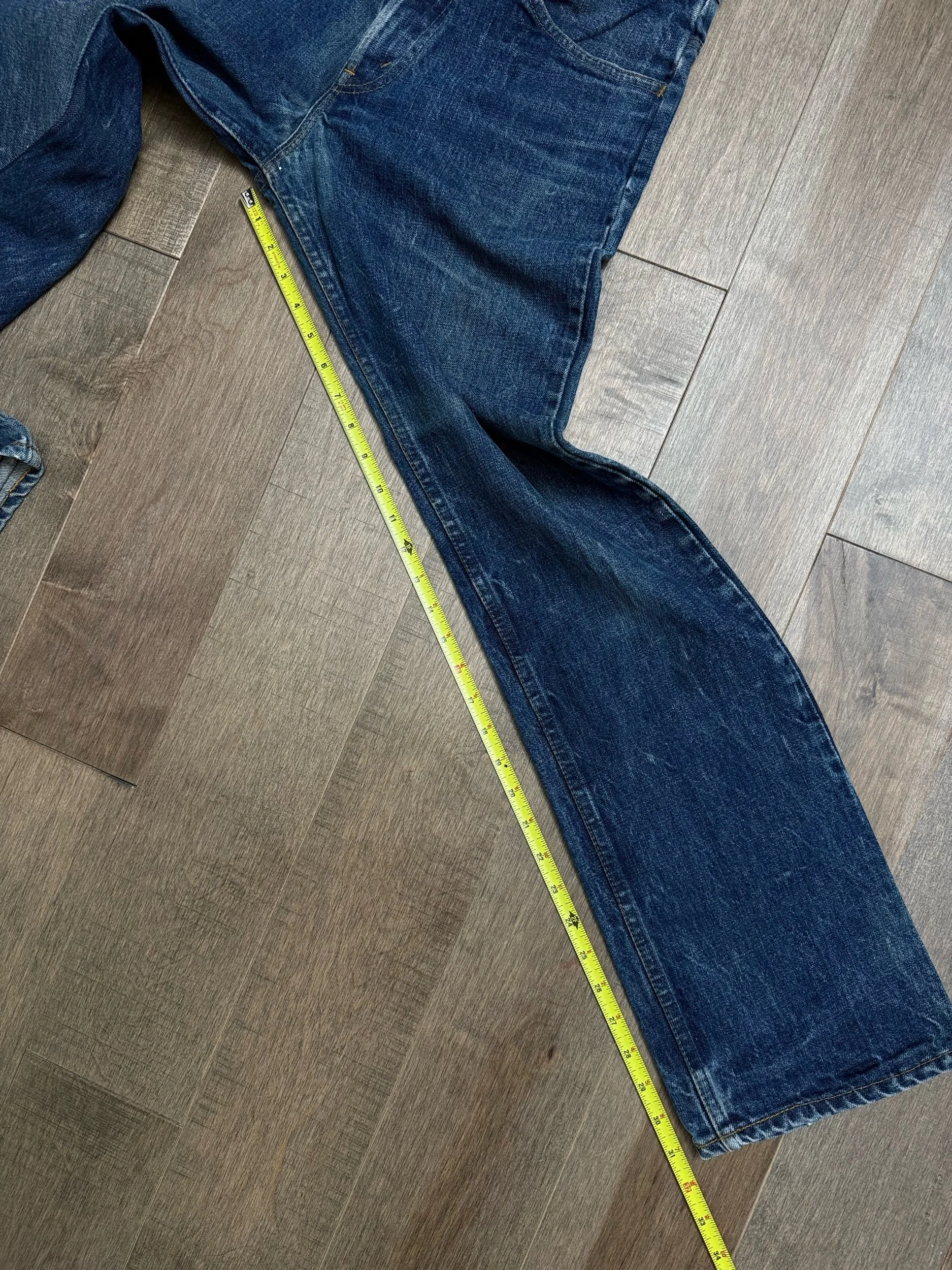WASH: gorgeous dark indigo blue wash with insane organic sun fades. Soft!