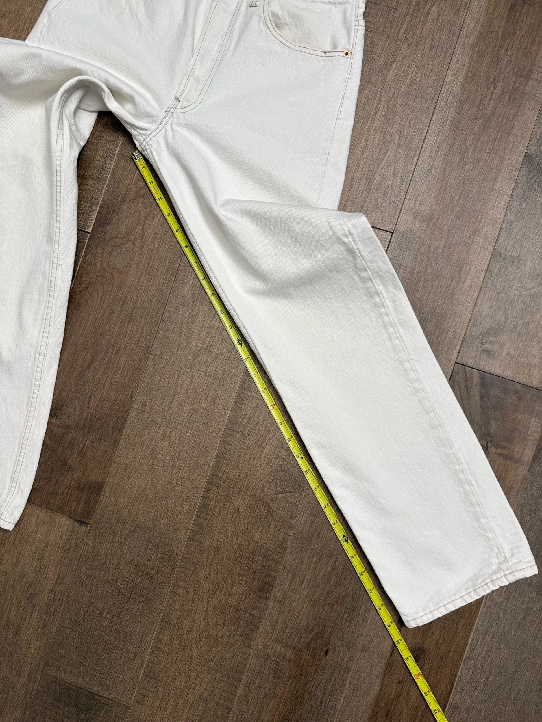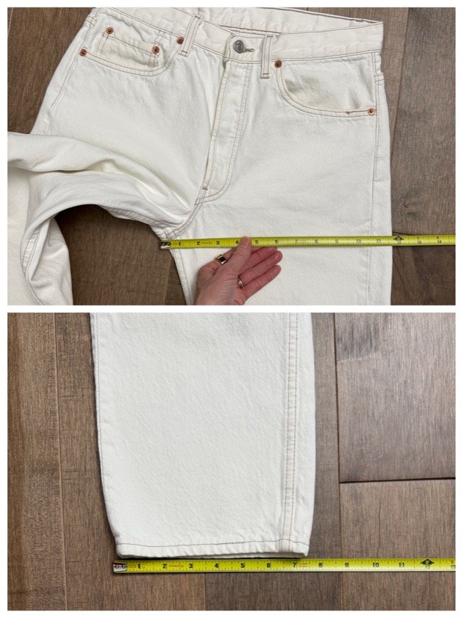 Sold as is. Keep in mind, vintage jeans are not new jeans. Every pair is at least 20 years old, most are older. This means they’ve been worn and likely have signs of wear - i.e. thinning areas, loose threads, signs of previous repair work, discolorations, faint (or not so faint stains), organic distressing, wear at the rivets, wear at the button holes. I do my best to describe these areas/signs of wear&tear, so please - before you buy - understand that you may receive your jeans and there will be signs of aging. Most buy vintage jeans wanting this, but if you want pristine new looking jeans, vintage likely isn’t for you. And that’s A-OK! Also note, the word “vintage” is not synonymous with super worn & faded. Vintage means over 20 years old. An item can be both vintage and still be new or like new condition.