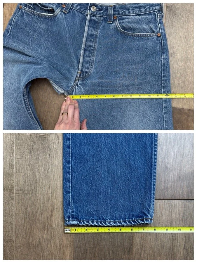 Sold as is. Keep in mind, vintage jeans are not new jeans. Every pair is at least 20 years old, most are older. This means they’ve been worn and likely have signs of wear - i.e. thinning areas, loose threads, signs of previous repair work, discolorations, faint (or not so faint stains), organic distressing, wear at the rivets, wear at the button holes. I do my best to describe these areas/signs of wear&tear, so please - before you buy - understand that you may receive your jeans and there will be signs of aging. Most buy vintage jeans wanting this, but if you want pristine new looking jeans, vintage likely isn’t for you. And that’s A-OK! Also note, the word “vintage” is not synonymous with super worn & faded. Vintage means over 20 years old. An item can be both vintage and still be new or like new condition.