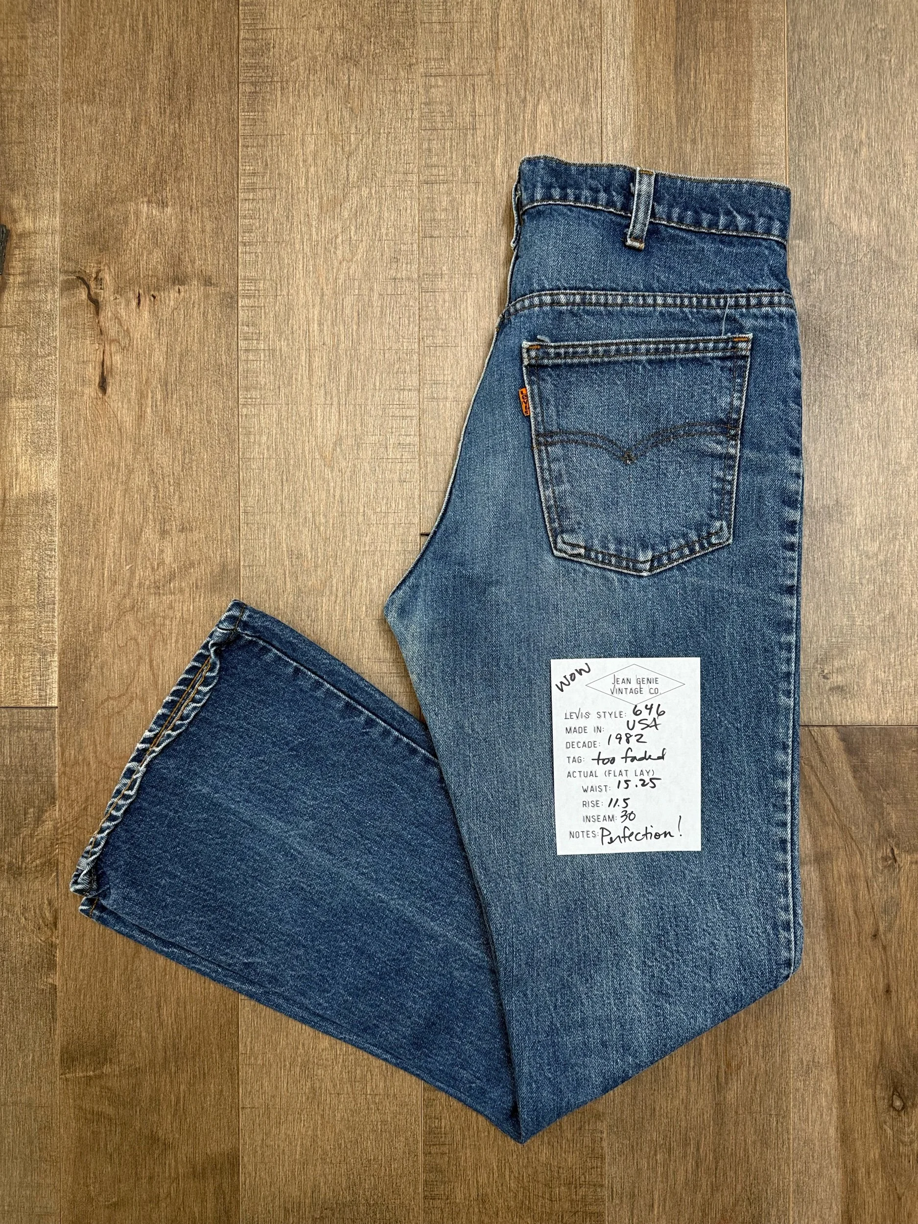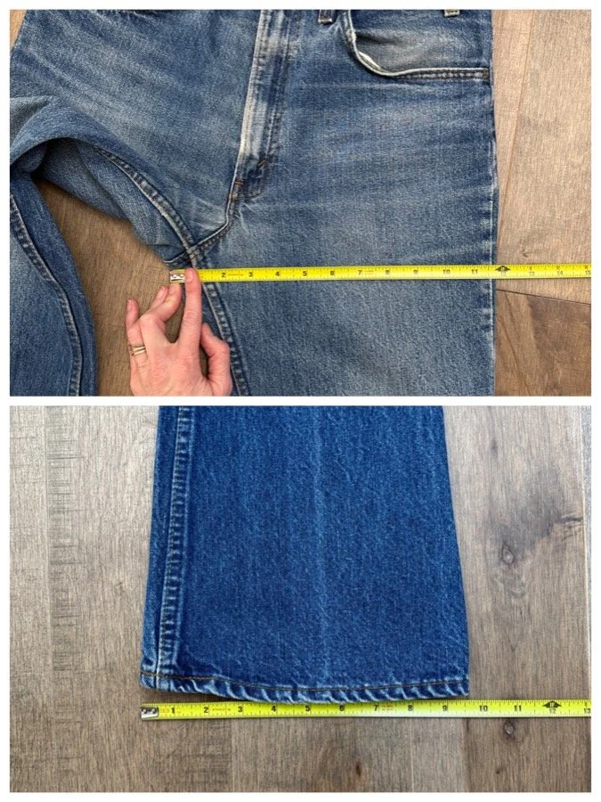 Keep in mind, vintage jeans are not new jeans. Every pair is at least 20 years old, most are older. This means they’ve been worn and likely have signs of wear - i.e. thinning areas, loose threads, signs of previous repair work, discolorations, faint (or not so faint stains), organic distressing, wear at the rivets, wear at the button holes. I do my best to describe these areas/signs of wear&tear, so please - before you buy - understand that you may receive your jeans and there will be signs of aging. Most buy vintage jeans wanting this, but if you want pristine new looking jeans, vintage likely isn’t for you. And that’s A-OK! Also note, the word “vintage” is not synonymous with super worn & faded. Vintage means over 20 years old. An item can be both vintage and still be new or like new condition.