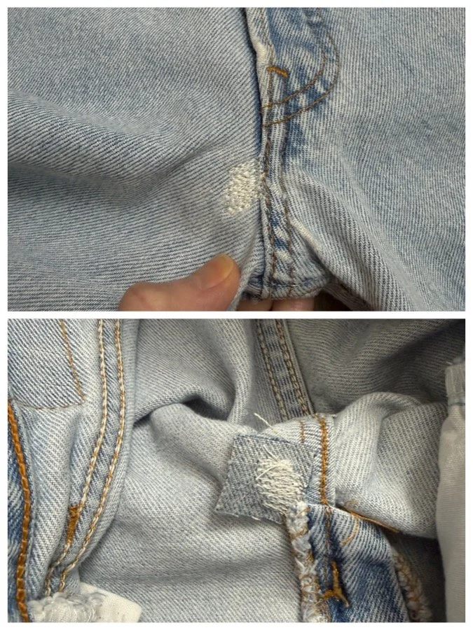 Sold as is. Keep in mind, vintage jeans are not new jeans. Every pair is at least 20 years old, most are older. This means they’ve been worn and likely have signs of wear - i.e. thinning areas, loose threads, signs of previous repair work, discolorations, faint (or not so faint stains), organic distressing, wear at the rivets, wear at the button holes. I do my best to describe these areas/signs of wear&tear, so please - before you buy - understand that you may receive your jeans and there will be signs of aging. Most buy vintage jeans wanting this, but if you want pristine new looking jeans, vintage likely isn’t for you. And that’s A-OK! Also note, the word “vintage” is not synonymous with super worn & faded. Vintage means over 20 years old. An item can be both vintage and still be new or like new condition.