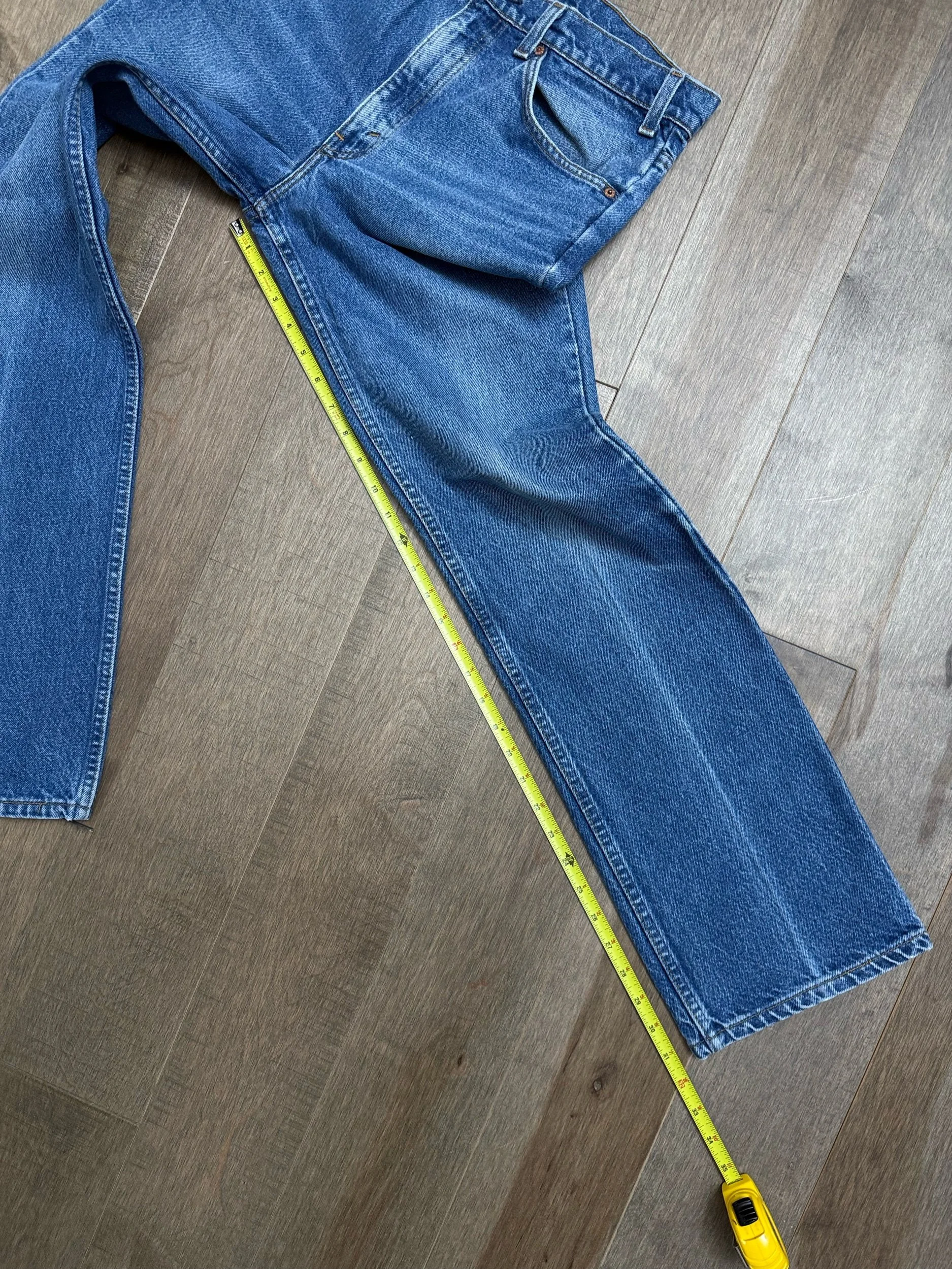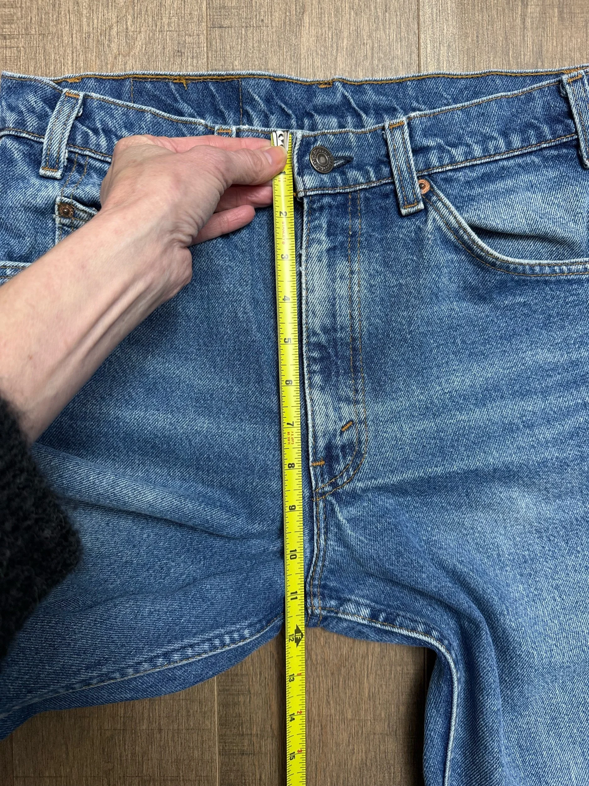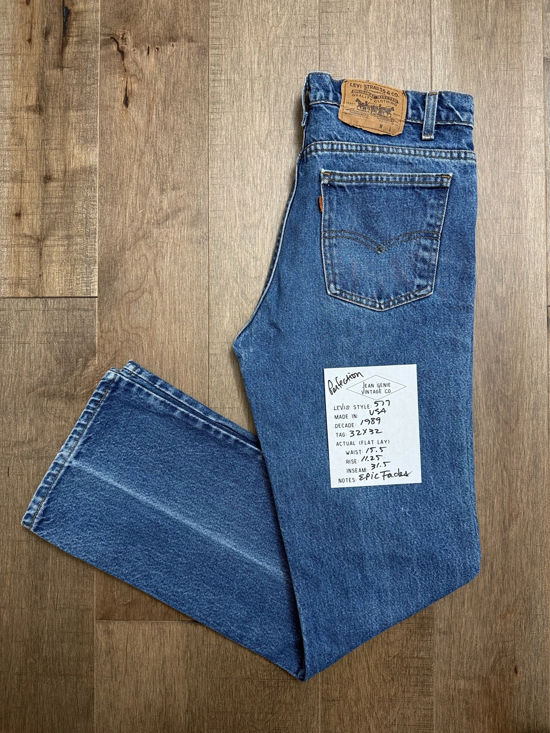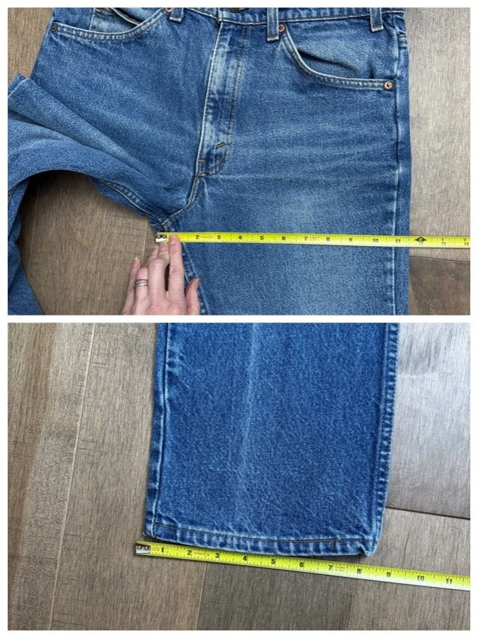 Keep in mind, vintage jeans are not new jeans. Every pair is at least 20 years old, most are older. This means they’ve been worn and likely have signs of wear - i.e. thinning areas, loose threads, signs of previous repair work, discolorations, faint (or not so faint stains), organic distressing, wear at the rivets, wear at the button holes. I do my best to describe these areas/signs of wear&tear, so please - before you buy - understand that you may receive your jeans and there will be signs of aging. Most buy vintage jeans wanting this, but if you want pristine new looking jeans, vintage likely isn’t for you. And that’s A-OK! Also note, the word “vintage” is not synonymous with super worn & faded. Vintage means over 20 years old. An item can be both vintage and still be new or like new condition.