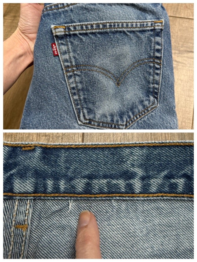 Keep in mind, vintage jeans are not new jeans. Every pair is at least 20 years old, most are older. This means they’ve been worn and likely have signs of wear - i.e. thinning areas, loose threads, signs of previous repair work, discolorations, faint (or not so faint stains), organic distressing, wear at the rivets, wear at the button holes. I do my best to describe these areas/signs of wear&tear, so please - before you buy - understand that you may receive your jeans and there will be signs of aging. Most buy vintage jeans wanting this, but if you want pristine new looking jeans, vintage likely isn’t for you. And that’s A-OK! Also note, the word “vintage” is not synonymous with super worn & faded. Vintage means over 20 years old. An item can be both vintage and still be new or like new condition.