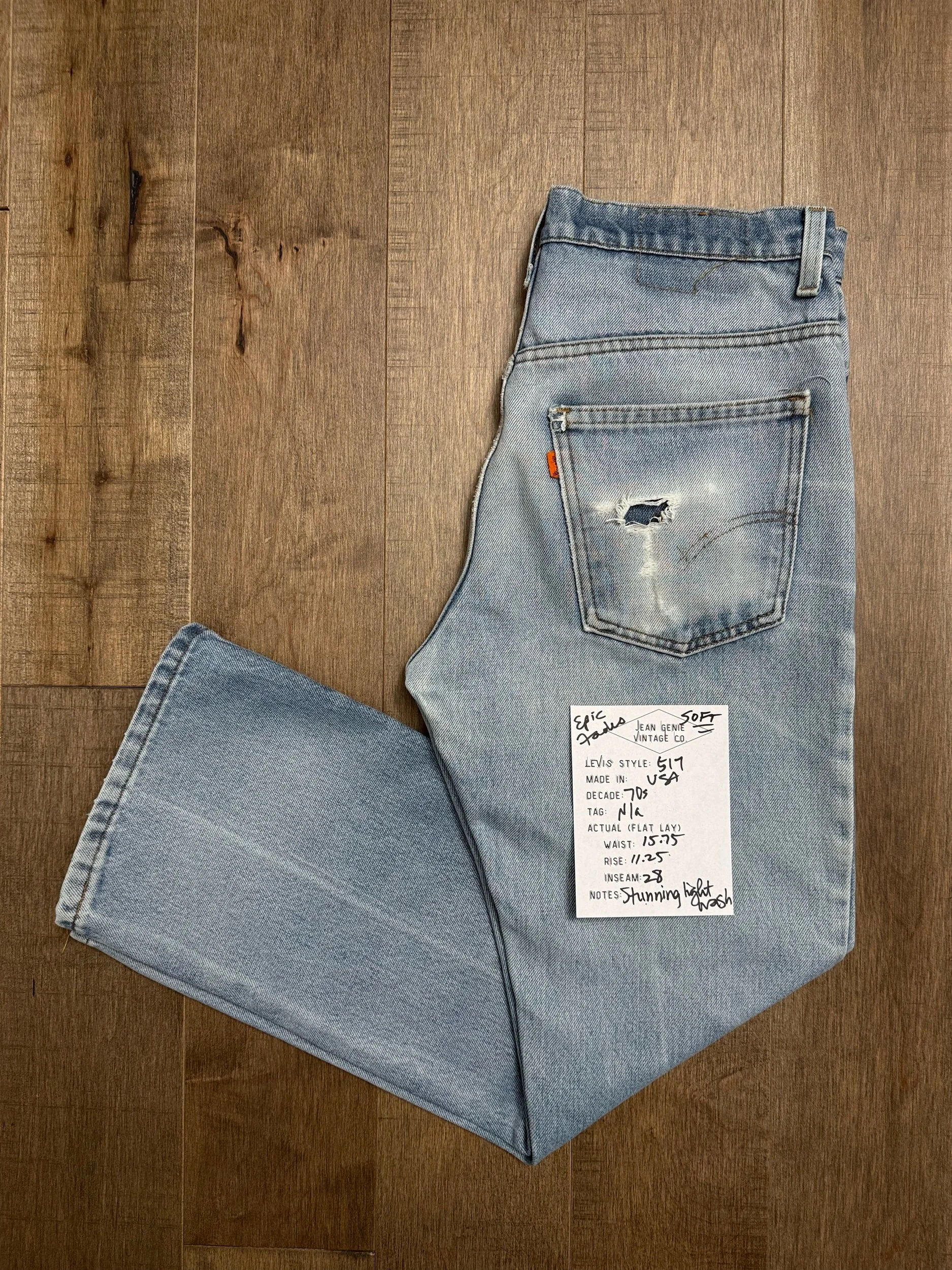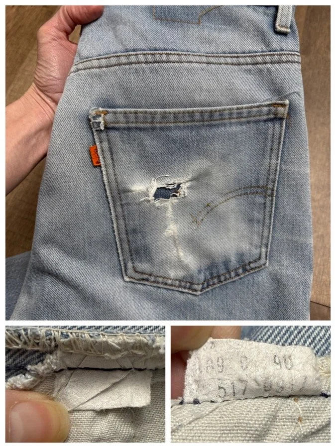 Keep in mind, vintage jeans are not new jeans. Every pair is at least 20 years old, most are older. This means they’ve been worn and likely have signs of wear - i.e. thinning areas, loose threads, signs of previous repair work, discolorations, faint (or not so faint stains), organic distressing, wear at the rivets, wear at the button holes. I do my best to describe these areas/signs of wear&tear, so please - before you buy - understand that you may receive your jeans and there will be signs of aging. Most buy vintage jeans wanting this, but if you want pristine new looking jeans, vintage likely isn’t for you. And that’s A-OK! Also note, the word “vintage” is not synonymous with super worn & faded. Vintage means over 20 years old. An item can be both vintage and still be new or like new condition.