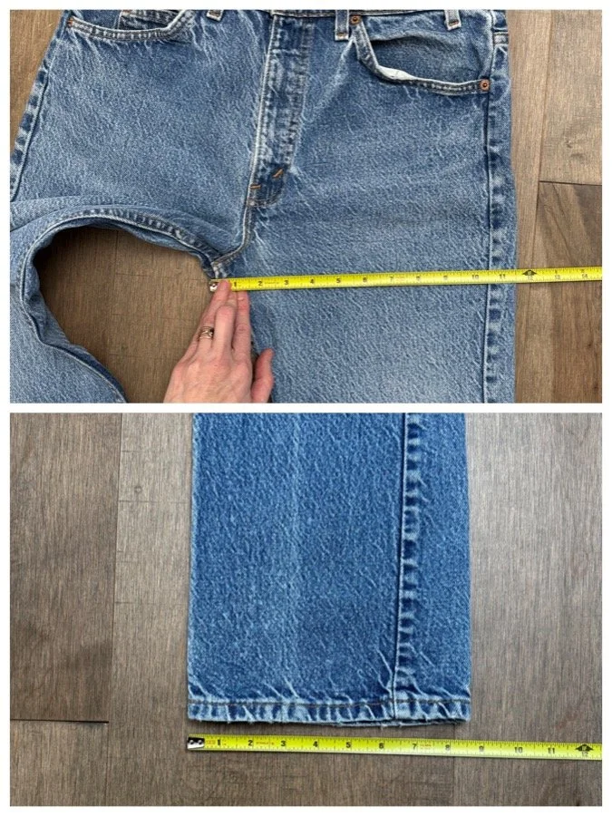 Keep in mind, vintage jeans are not new jeans. Every pair is at least 20 years old, most are older. This means they’ve been worn and likely have signs of wear - i.e. thinning areas, loose threads, signs of previous repair work, discolorations, faint (or not so faint stains), organic distressing, wear at the rivets, wear at the button holes. I do my best to describe these areas/signs of wear&tear, so please - before you buy - understand that you may receive your jeans and there will be signs of aging. Most buy vintage jeans wanting this, but if you want pristine new looking jeans, vintage likely isn’t for you. And that’s A-OK! Also note, the word “vintage” is not synonymous with super worn & faded. Vintage means over 20 years old. An item can be both vintage and still be new or like new condition.