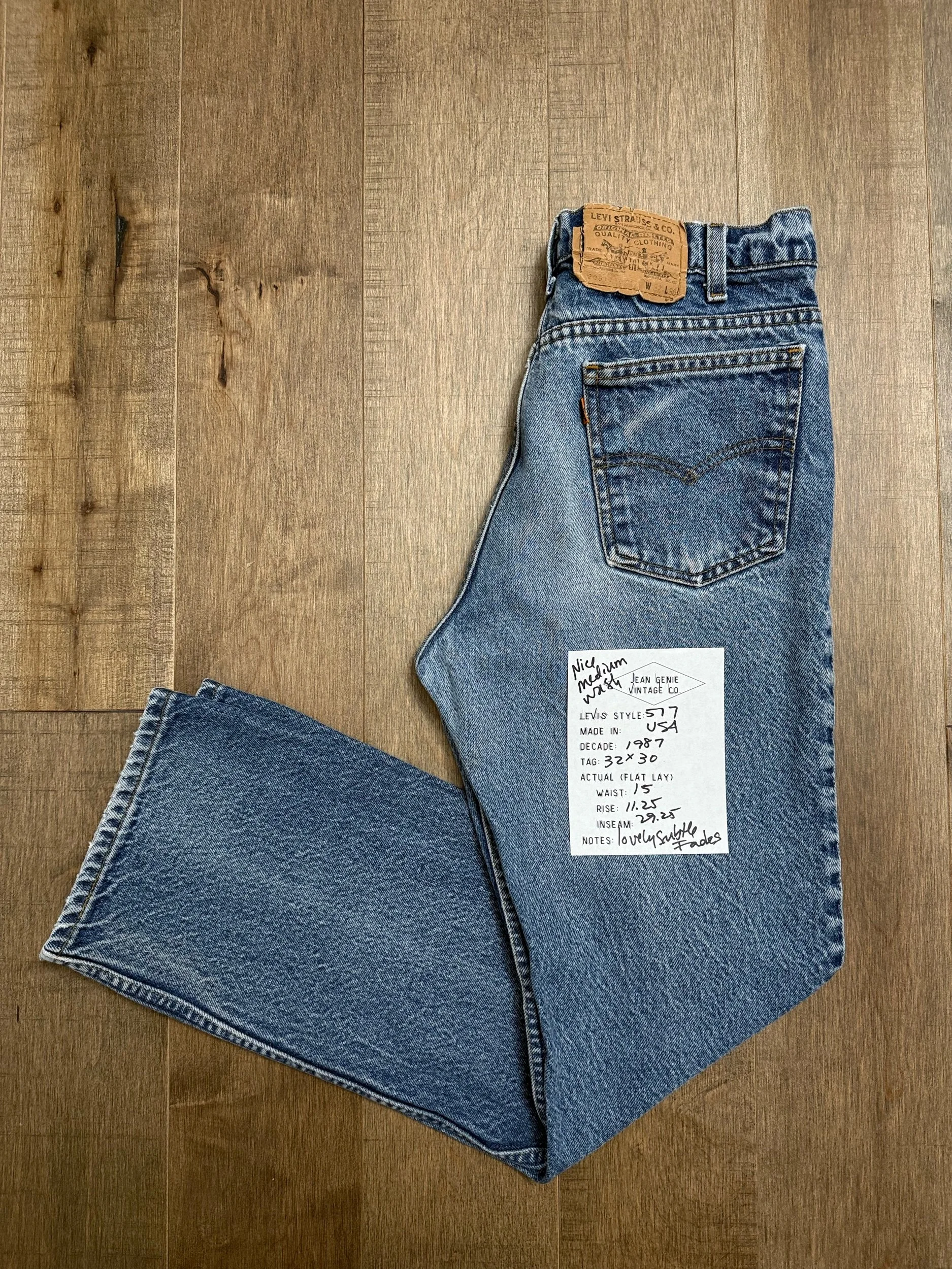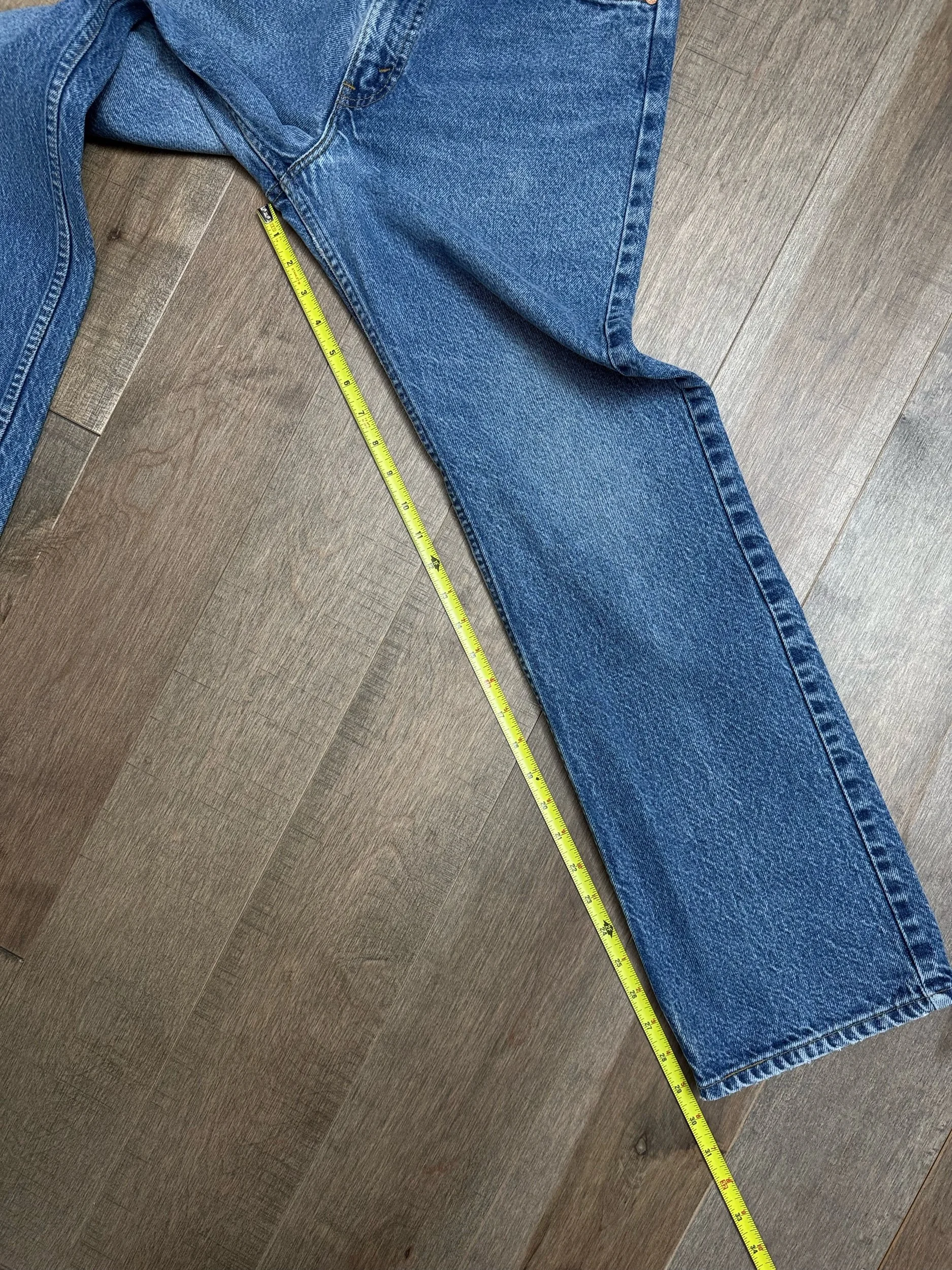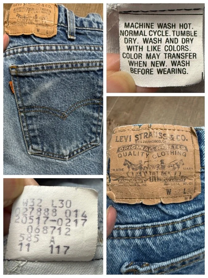 Keep in mind, vintage jeans are not new jeans. Every pair is at least 20 years old, most are older. This means they’ve been worn and likely have signs of wear - i.e. thinning areas, loose threads, signs of previous repair work, discolorations, faint (or not so faint stains), organic distressing, wear at the rivets, wear at the button holes. I do my best to describe these areas/signs of wear&tear, so please - before you buy - understand that you may receive your jeans and there will be signs of aging. Most buy vintage jeans wanting this, but if you want pristine new looking jeans, vintage likely isn’t for you. And that’s A-OK! Also note, the word “vintage” is not synonymous with super worn & faded. Vintage means over 20 years old. An item can be both vintage and still be new or like new condition.