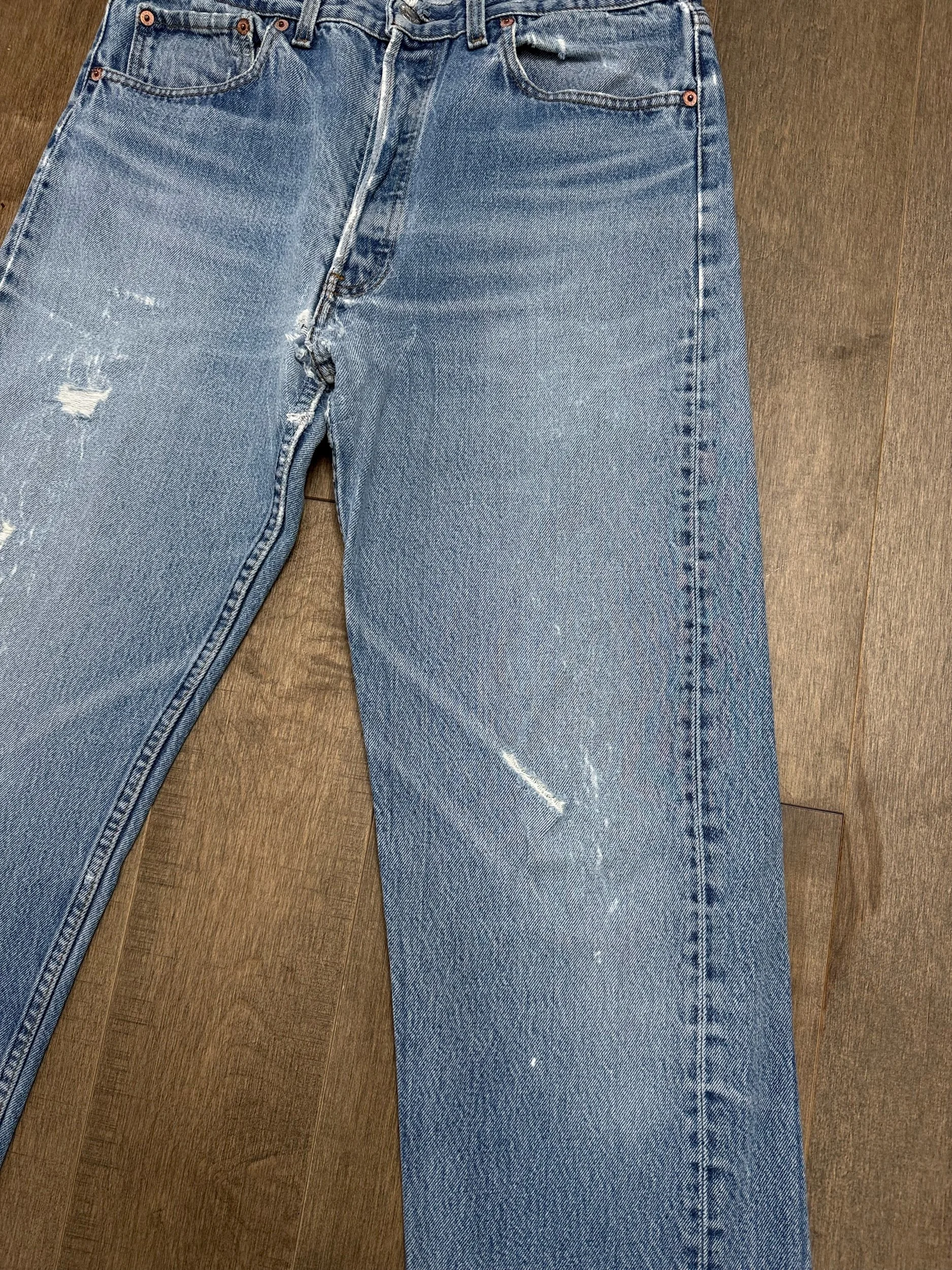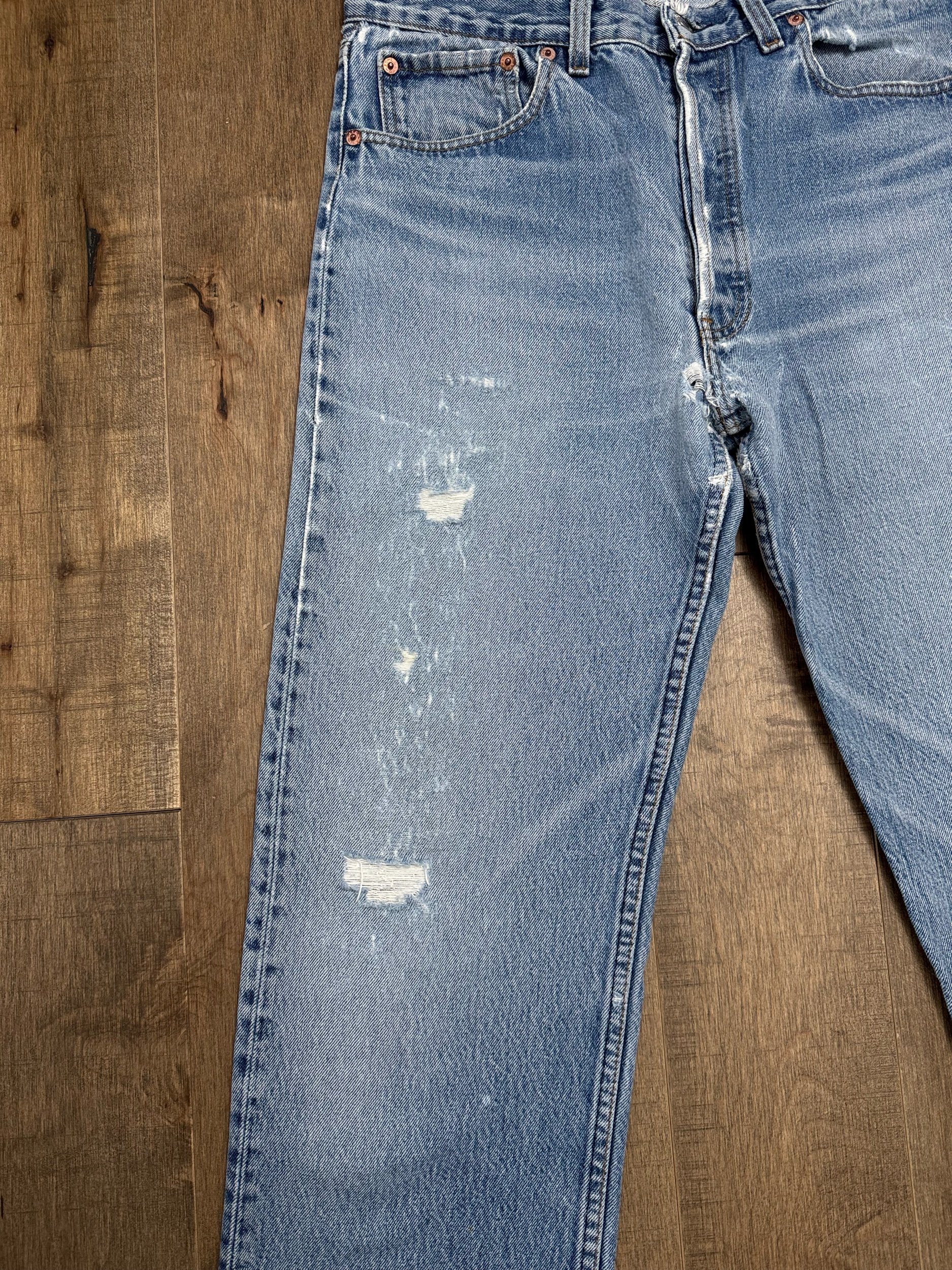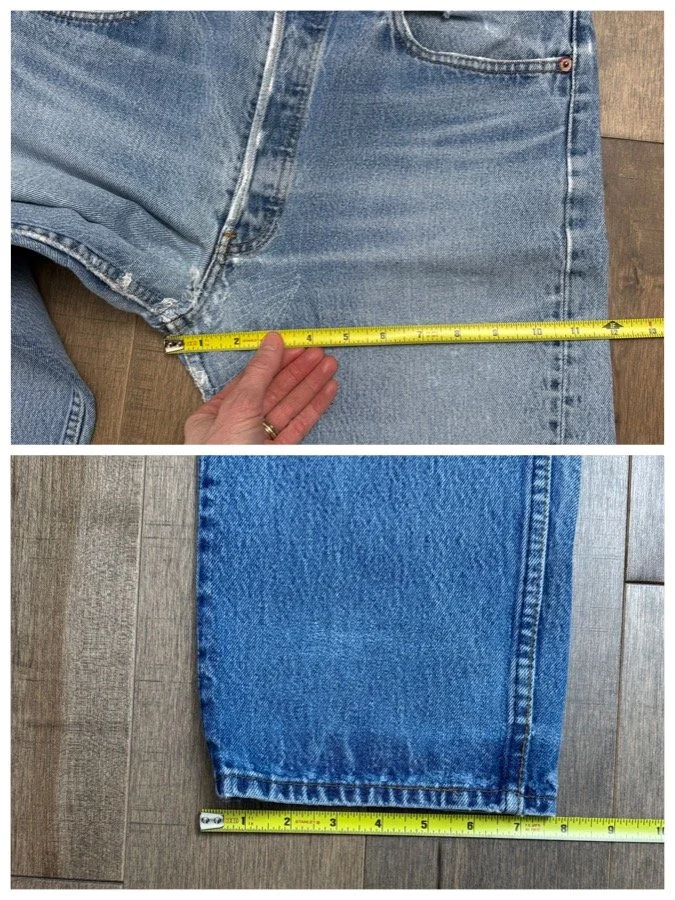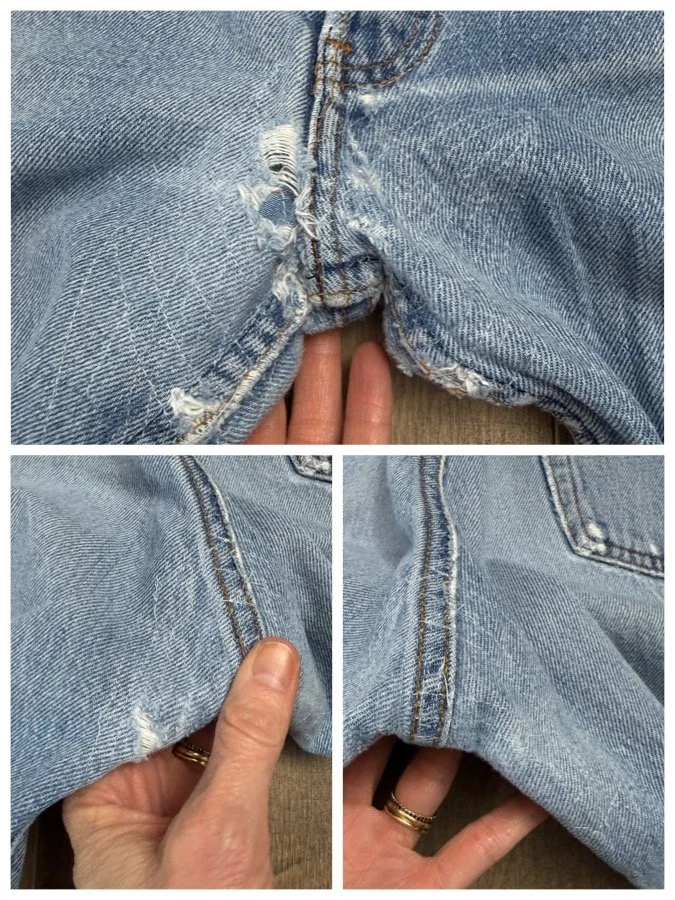 Sold as is. Keep in mind, vintage jeans are not new jeans. Every pair is at least 20 years old, most are older. This means they’ve been worn and likely have signs of wear - i.e. thinning areas, loose threads, signs of previous repair work, discolorations, faint (or not so faint stains), organic distressing, wear at the rivets, wear at the button holes. I do my best to describe these areas/signs of wear&tear, so please - before you buy - understand that you may receive your jeans and there will be signs of aging. Most buy vintage jeans wanting this, but if you want pristine new looking jeans, vintage likely isn’t for you. And that’s A-OK! Also note, the word “vintage” is not synonymous with super worn & faded. Vintage means over 20 years old. An item can be both vintage and still be new or like new condition.