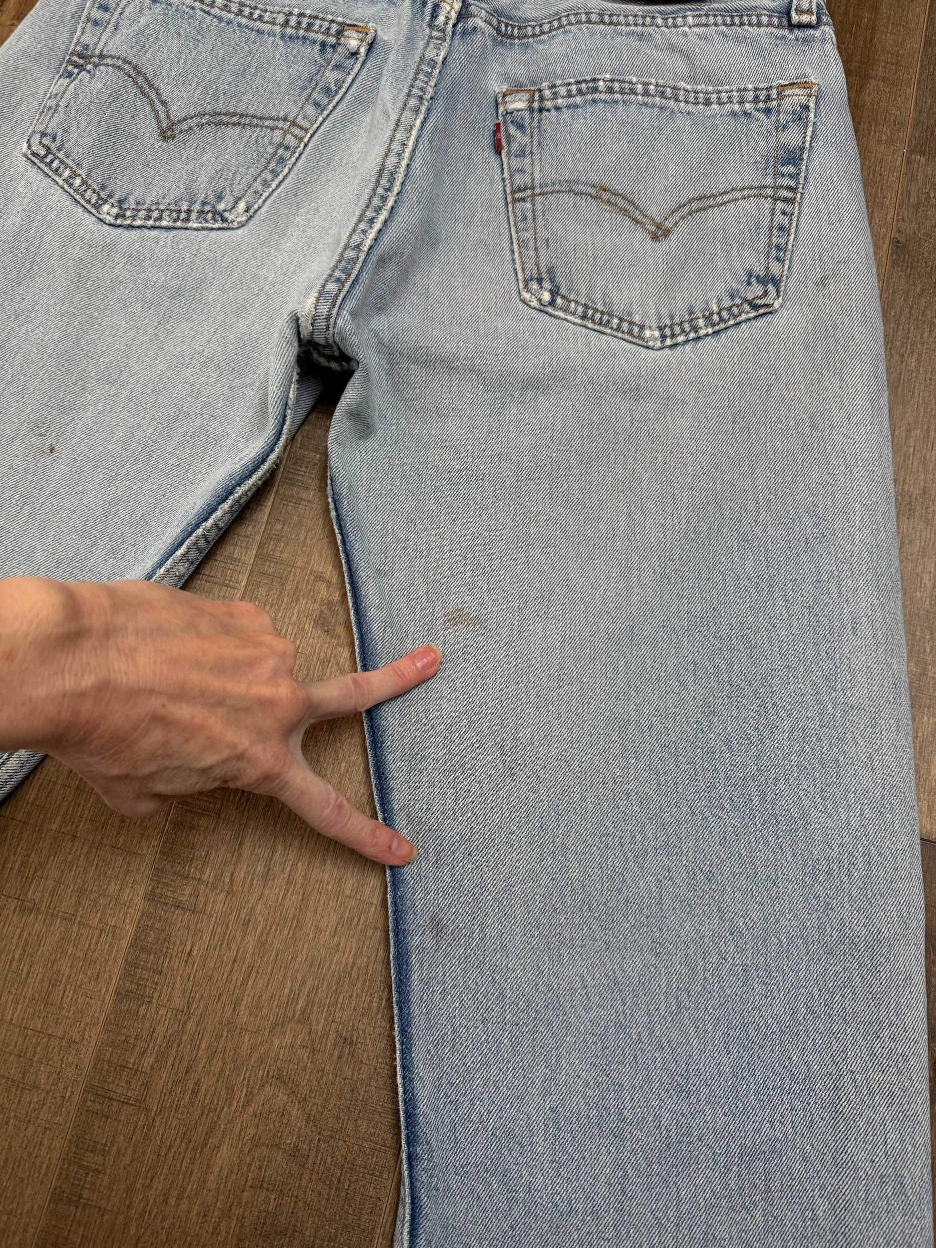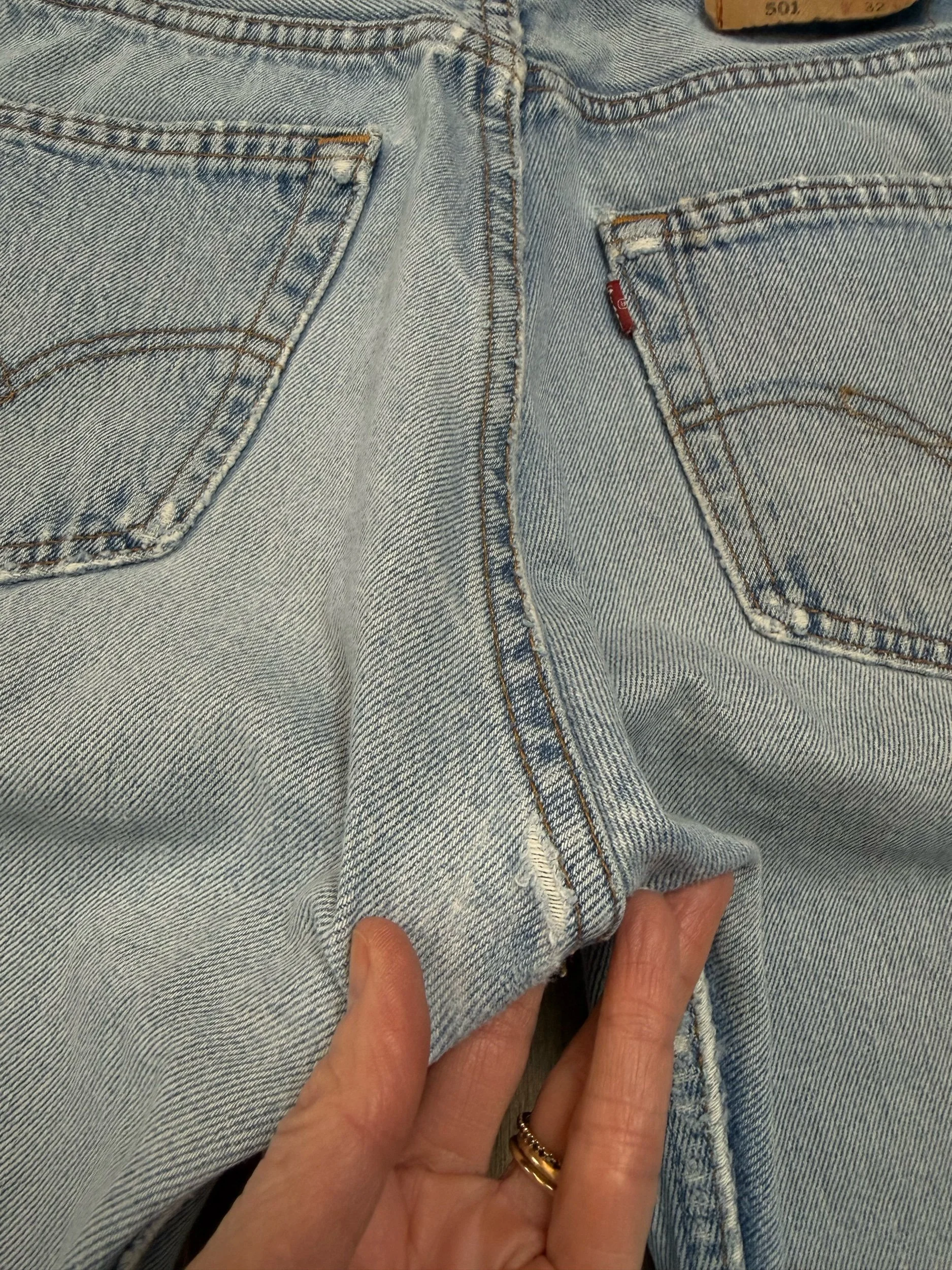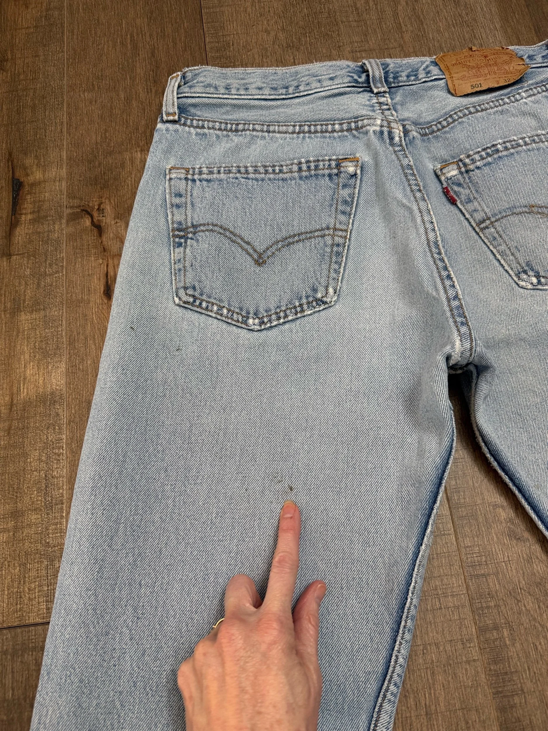 Sold as is. Keep in mind, vintage jeans are not new jeans. Every pair is at least 20 years old, most are older. This means they’ve been worn and likely have signs of wear - i.e. thinning areas, loose threads, signs of previous repair work, discolorations, faint (or not so faint stains), organic distressing, wear at the rivets, wear at the button holes. I do my best to describe these areas/signs of wear&tear, so please - before you buy - understand that you may receive your jeans and there will be signs of aging. Most buy vintage jeans wanting this, but if you want pristine new looking jeans, vintage likely isn’t for you. And that’s A-OK! Also note, the word “vintage” is not synonymous with super worn & faded. Vintage means over 20 years old. An item can be both vintage and still be new or like new condition.