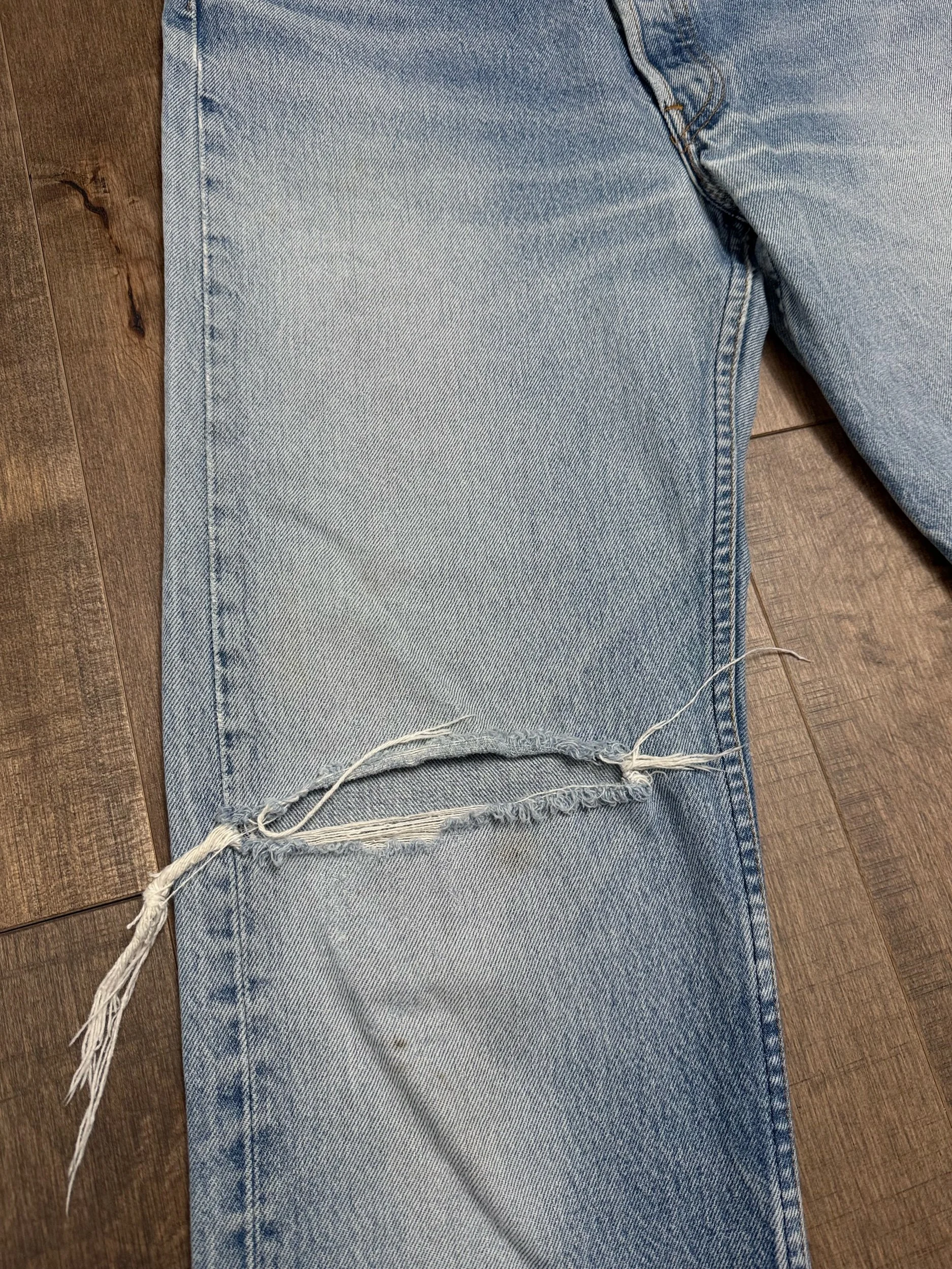 Sold as is. Keep in mind, vintage jeans are not new jeans. Every pair is at least 20 years old, most are older. This means they’ve been worn and likely have signs of wear - i.e. thinning areas, loose threads, signs of previous repair work, discolorations, faint (or not so faint stains), organic distressing, wear at the rivets, wear at the button holes. I do my best to describe these areas/signs of wear&tear, so please - before you buy - understand that you may receive your jeans and there will be signs of aging. Most buy vintage jeans wanting this, but if you want pristine new looking jeans, vintage likely isn’t for you. And that’s A-OK! Also note, the word “vintage” is not synonymous with super worn & faded. Vintage means over 20 years old. An item can be both vintage and still be new or like new condition.