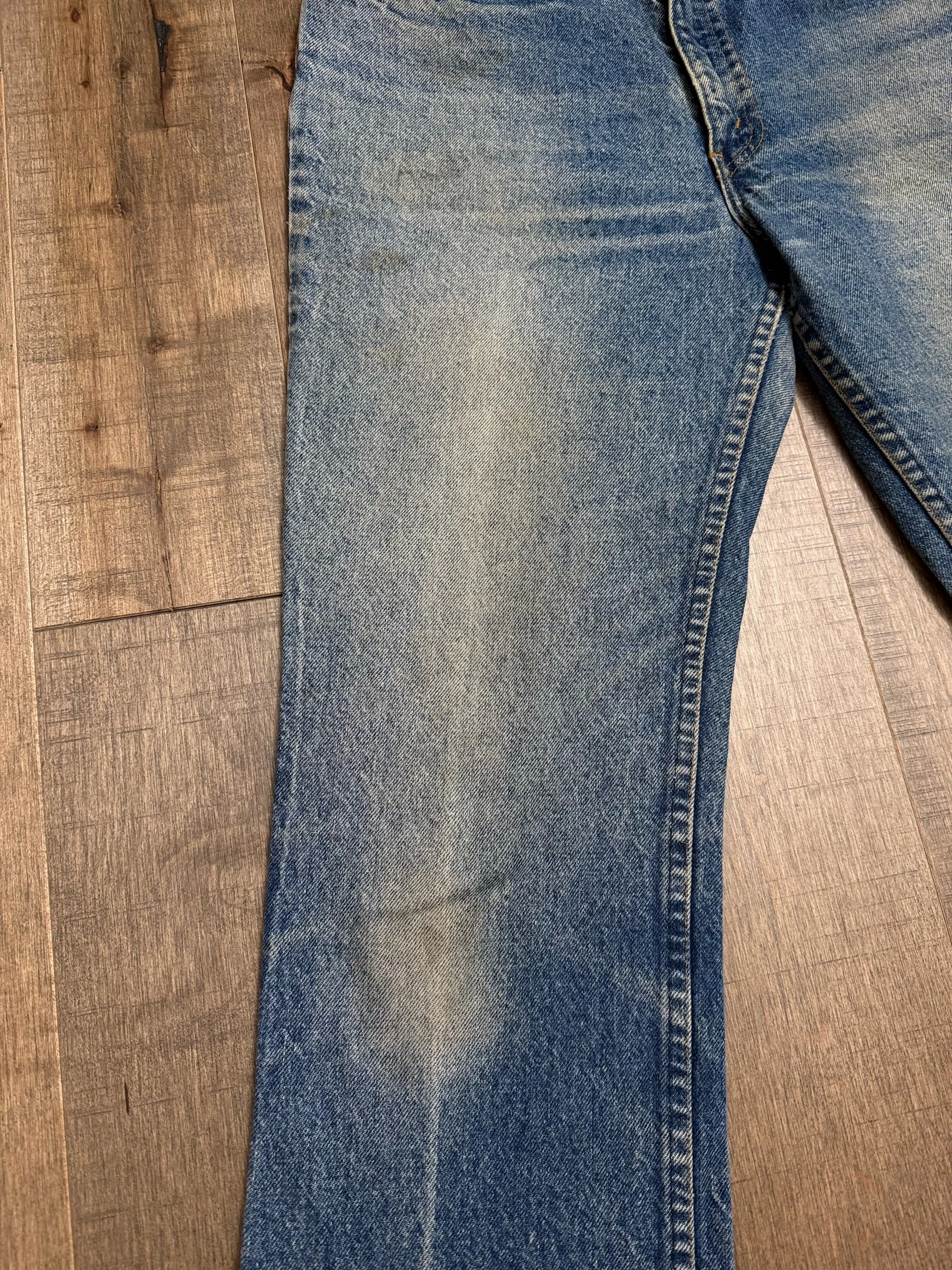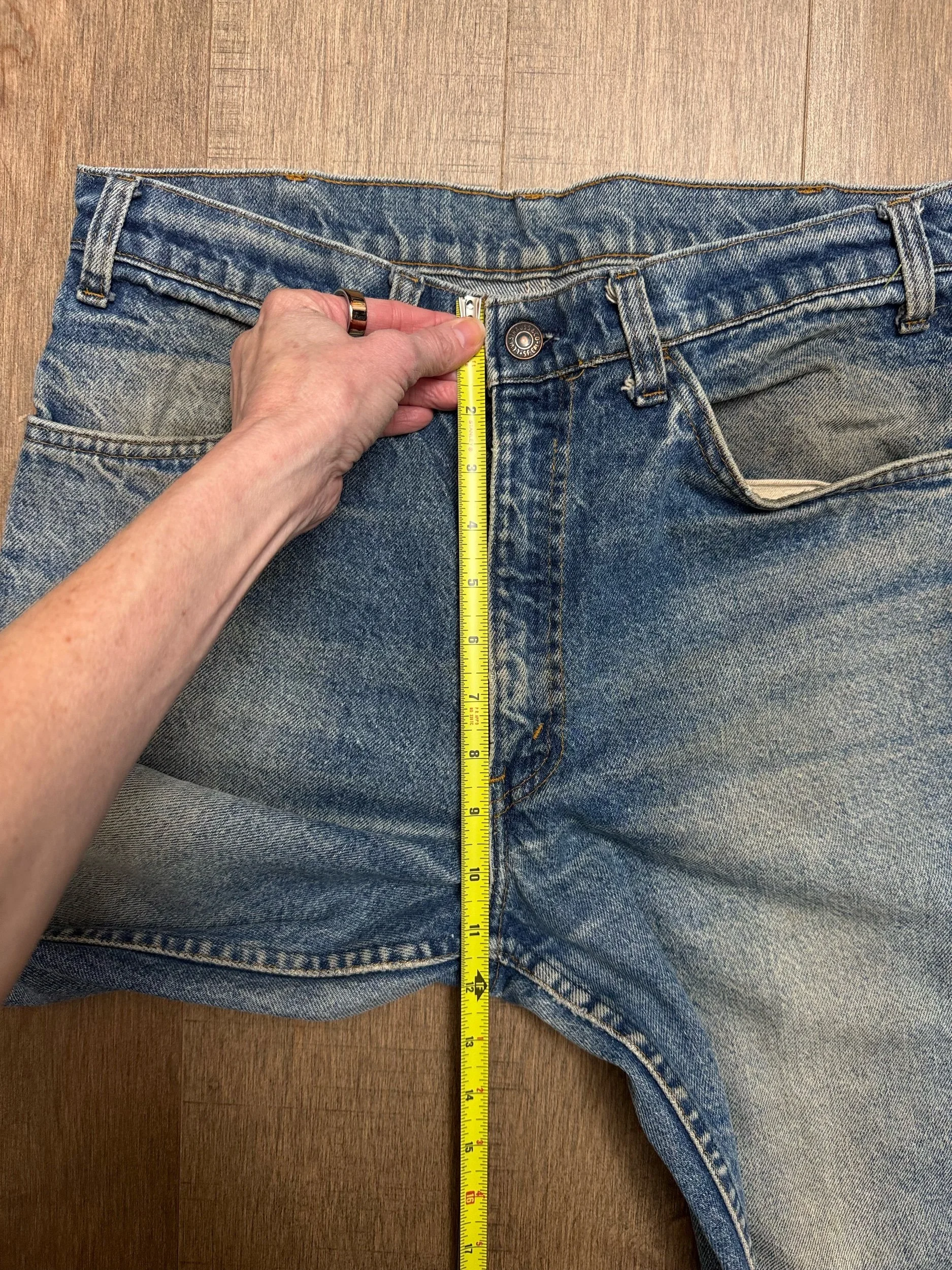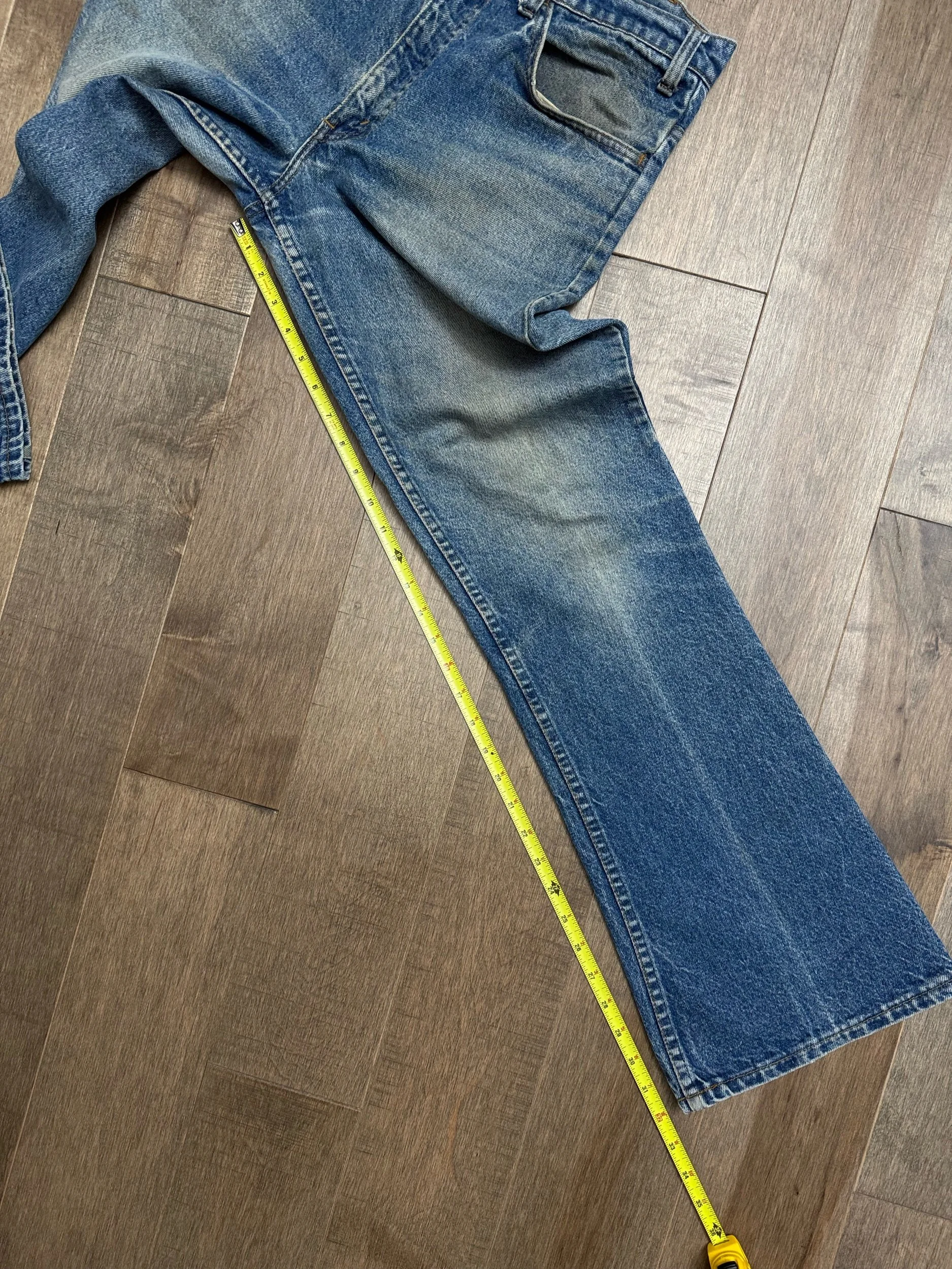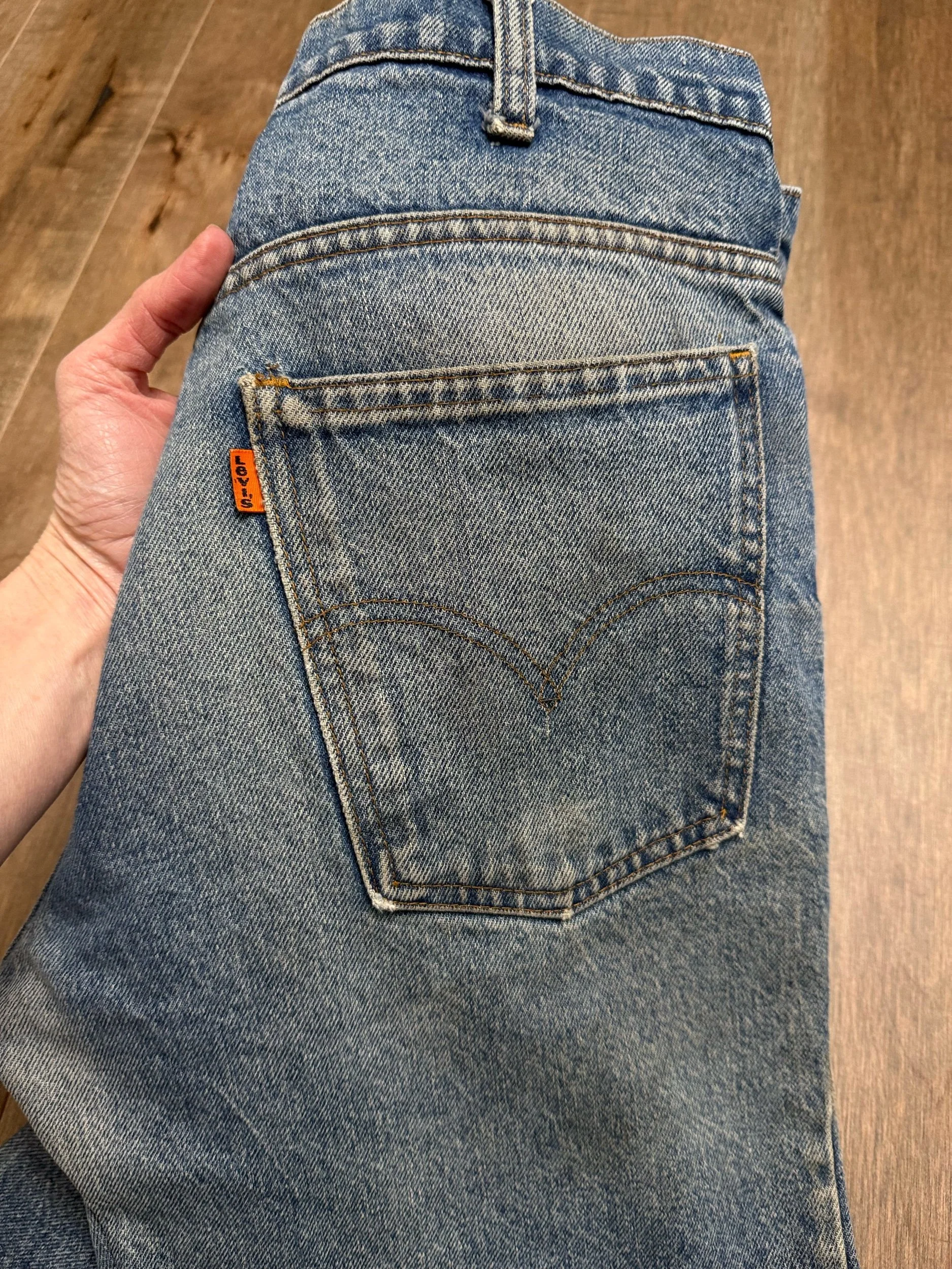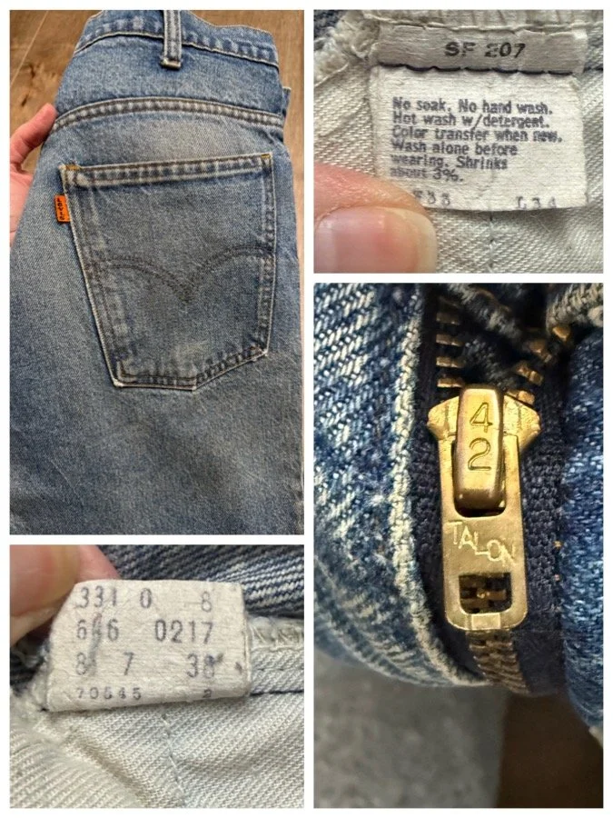 Keep in mind, vintage jeans are not new jeans. Every pair is at least 20 years old, most are older. This means they’ve been worn and likely have signs of wear - i.e. thinning areas, loose threads, signs of previous repair work, discolorations, faint (or not so faint stains), organic distressing, wear at the rivets, wear at the button holes. I do my best to describe these areas/signs of wear&tear, so please - before you buy - understand that you may receive your jeans and there will be signs of aging. Most buy vintage jeans wanting this, but if you want pristine new looking jeans, vintage likely isn’t for you. And that’s A-OK! Also note, the word “vintage” is not synonymous with super worn & faded. Vintage means over 20 years old. An item can be both vintage and still be new or like new condition.